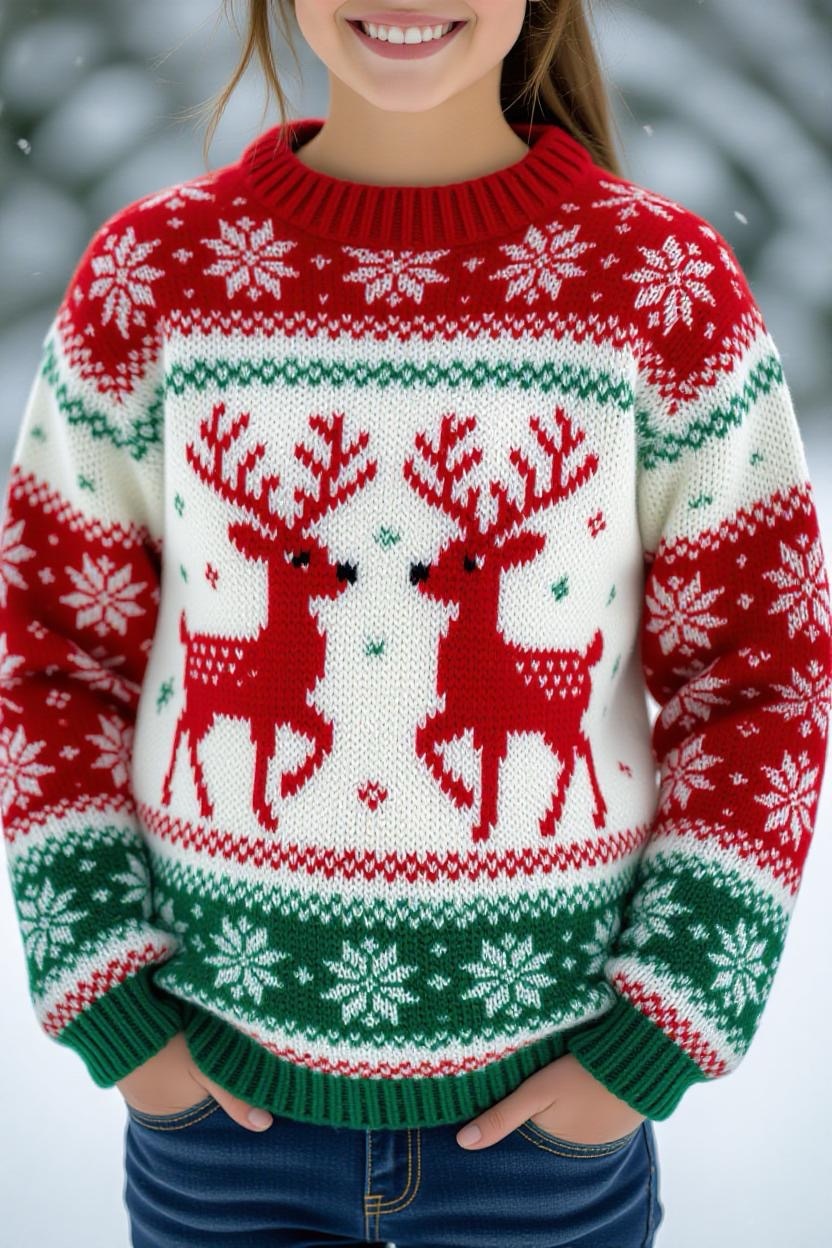 Think reindeer, snowflakes, or holiday-inspired colors. This pattern is perfect for creating cheerful sweaters for family gatherings or holiday photos.