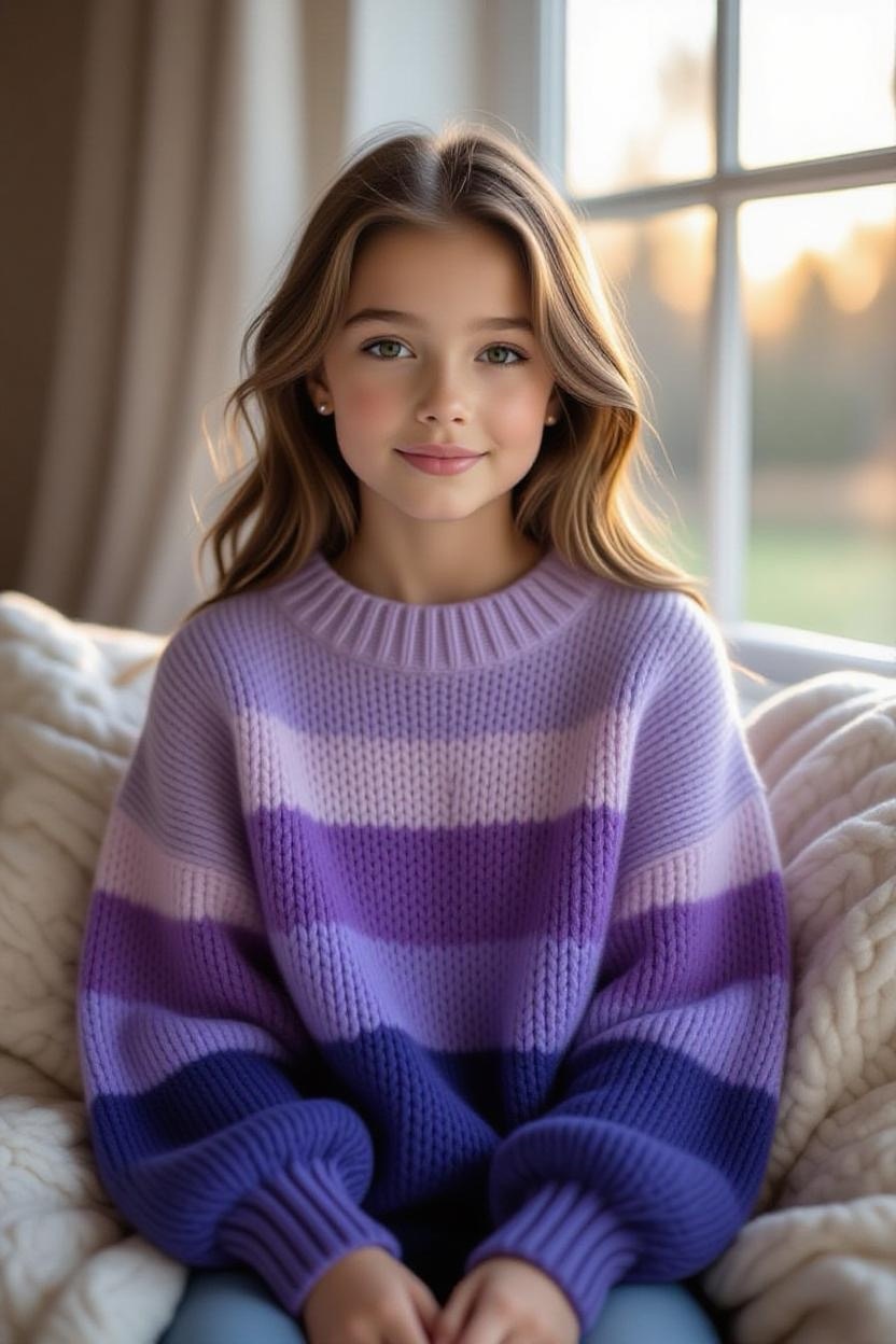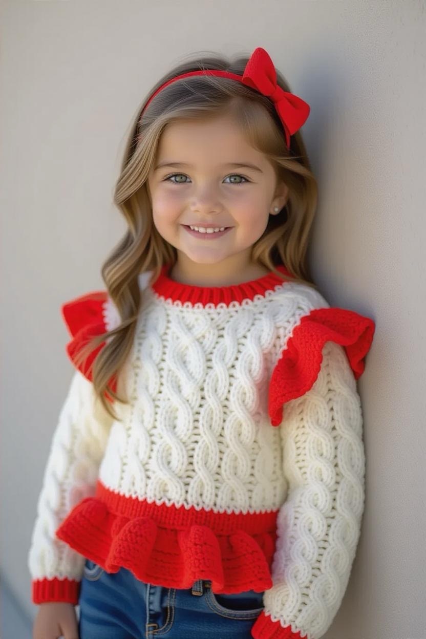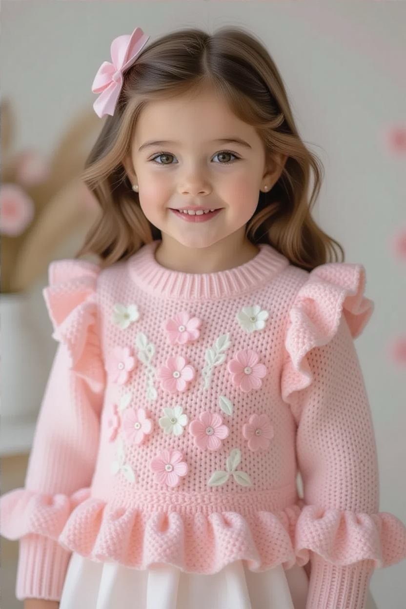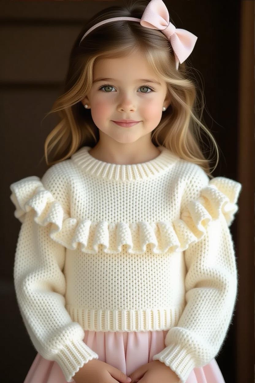 Add a girly touch with ruffles at the hem, sleeves, or neckline. This detail makes the sweater extra charming and perfect for special occasions.