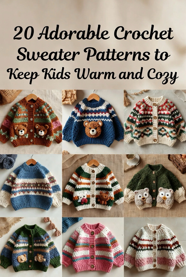 Crocheting sweaters for kids is one of the most rewarding projects, blending functionality with handmade love. These 20 crochet sweater patterns range from simple pullovers to detailed textured designs, ensuring there’s something to suit every skill level and occasion. Whether you want a playful animal-themed piece, a classic cardigan, or a trendy color-block design, these sweaters are guaranteed to keep little ones warm while adding charm to their wardrobe. Pick your favorite pattern, grab your yarn, and start crafting a piece that will be cherished for years to come.