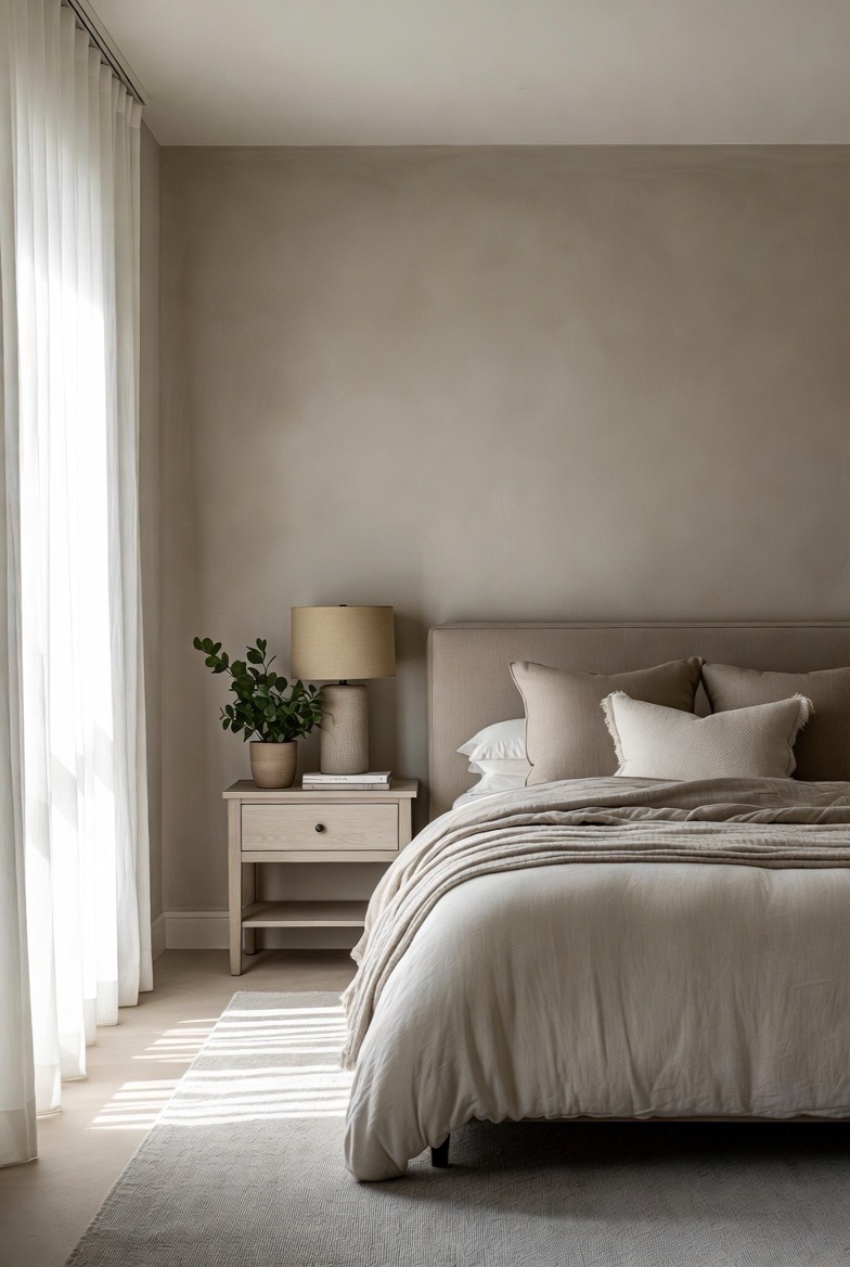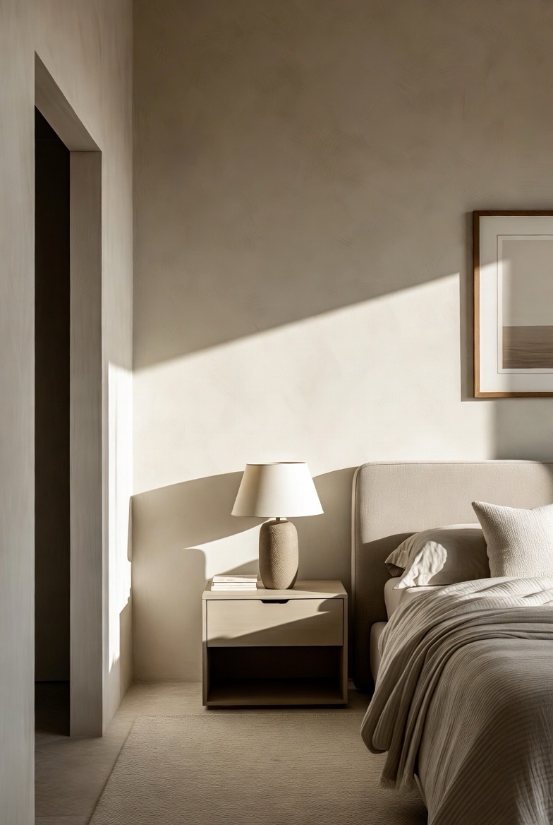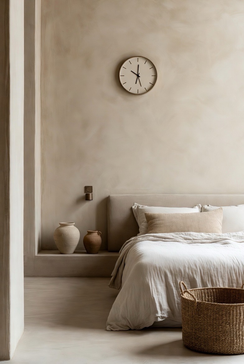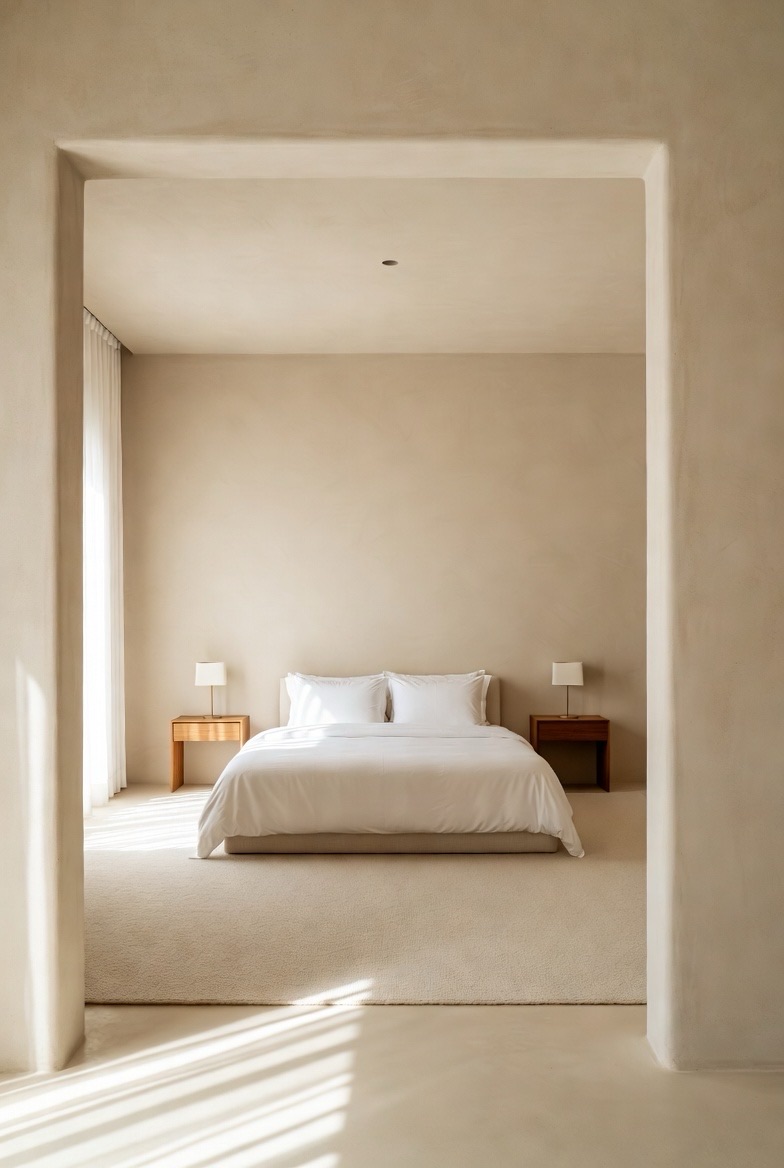 A minimalist bedroom often starts with a soothing neutral palette. Shades like cream, beige, taupe, and soft gray help create a calm visual flow without overpowering the room. These hues naturally brighten the space while offering a subtle backdrop for furniture and decor. Neutral colors also make it easy to layer textures and experiment with light without cluttering the aesthetic. When paired with natural materials, the palette evokes serenity and balance.