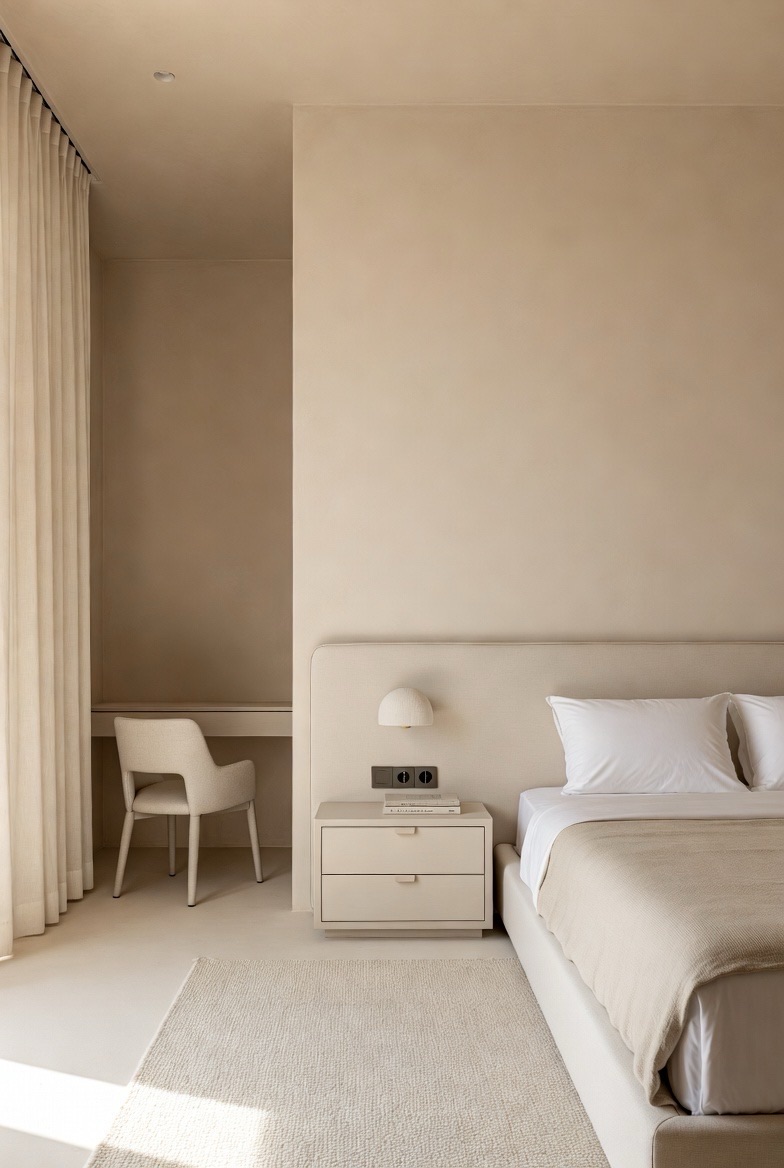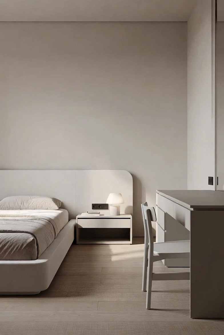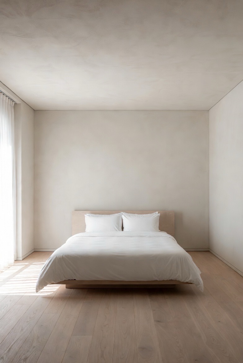 A minimalist bedroom benefits from open space, allowing the eye to rest. Avoid filling every corner with furniture. Leave breathing room around the bed and keep pathways unobstructed. The open layout enhances the airy feel while encouraging a calm state of mind.