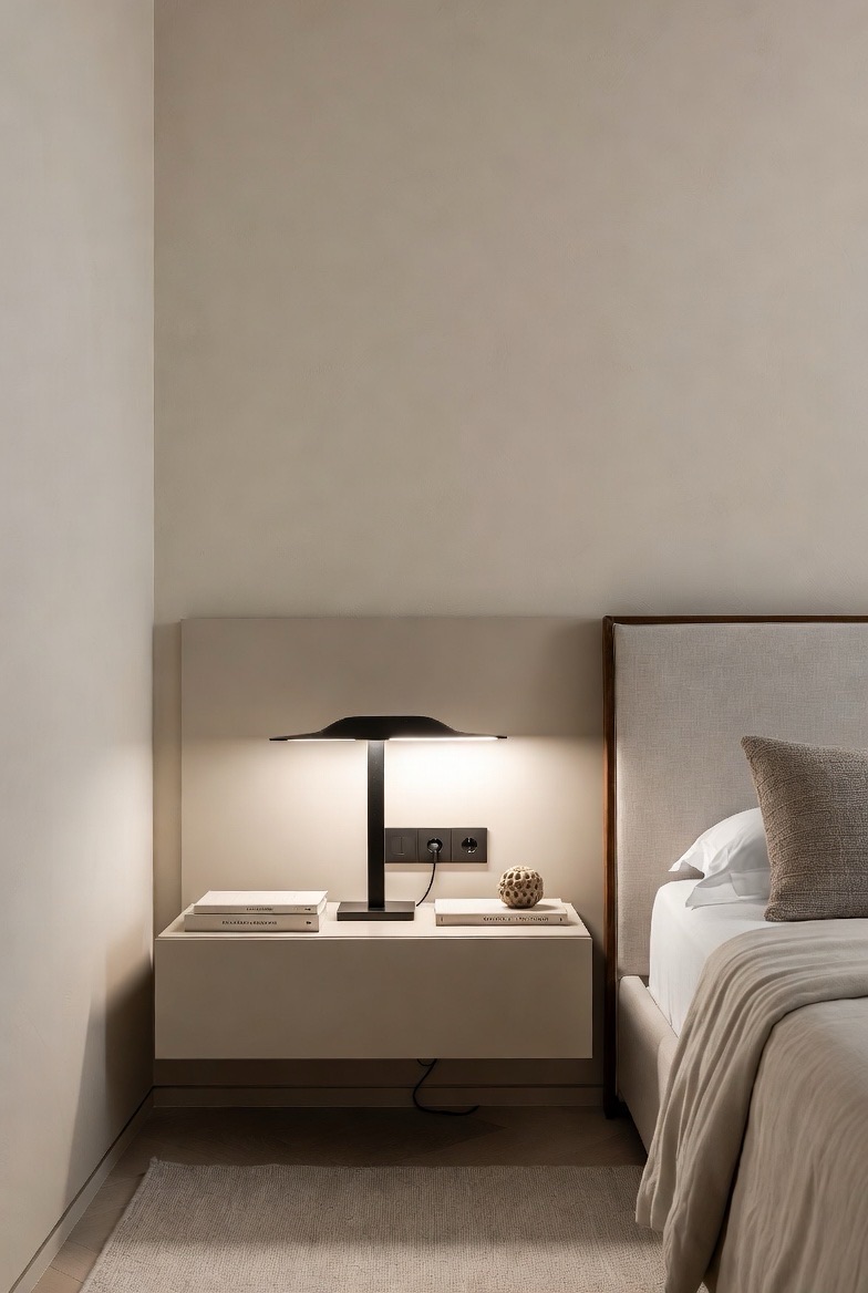 Minimalist nightstands should showcase only the essentials: a lamp, a book, or a small decorative item. Removing excess objects instantly makes the room feel more organized and intentional. Choosing sleek, compact nightstands keeps the look cohesive and practical. You can also opt for floating nightstands to save floor space and create a more expansive feel. The simplicity enhances relaxation and order.