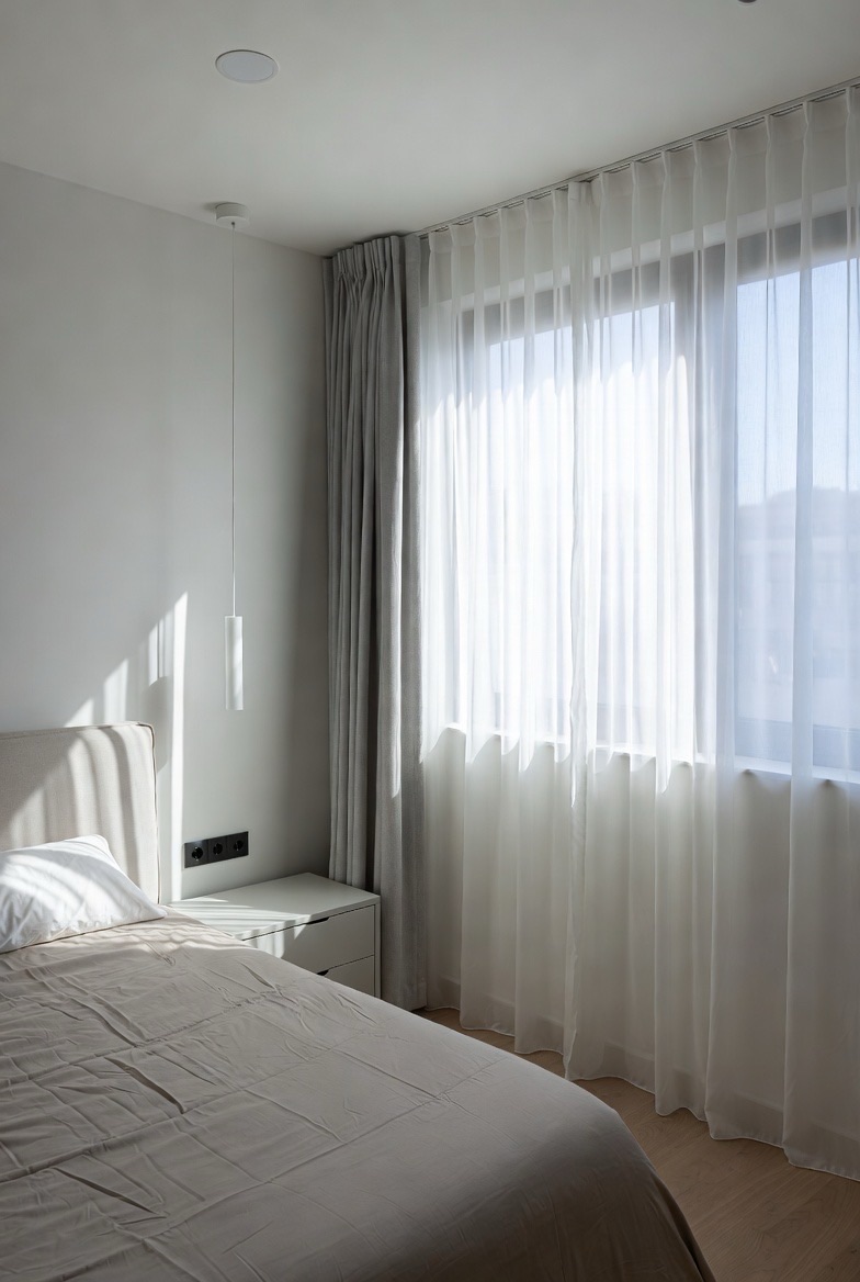 Minimalist bedrooms thrive on abundant natural light. Sheer curtains or simple blinds allow sunlight to fill the space softly throughout the day. Light enhances the clean lines and openness of minimalist decor, making the room feel larger and more calm. If privacy is needed, choose light-filtering fabrics that still maintain a bright atmosphere. Natural light instantly elevates the minimalist aesthetic.