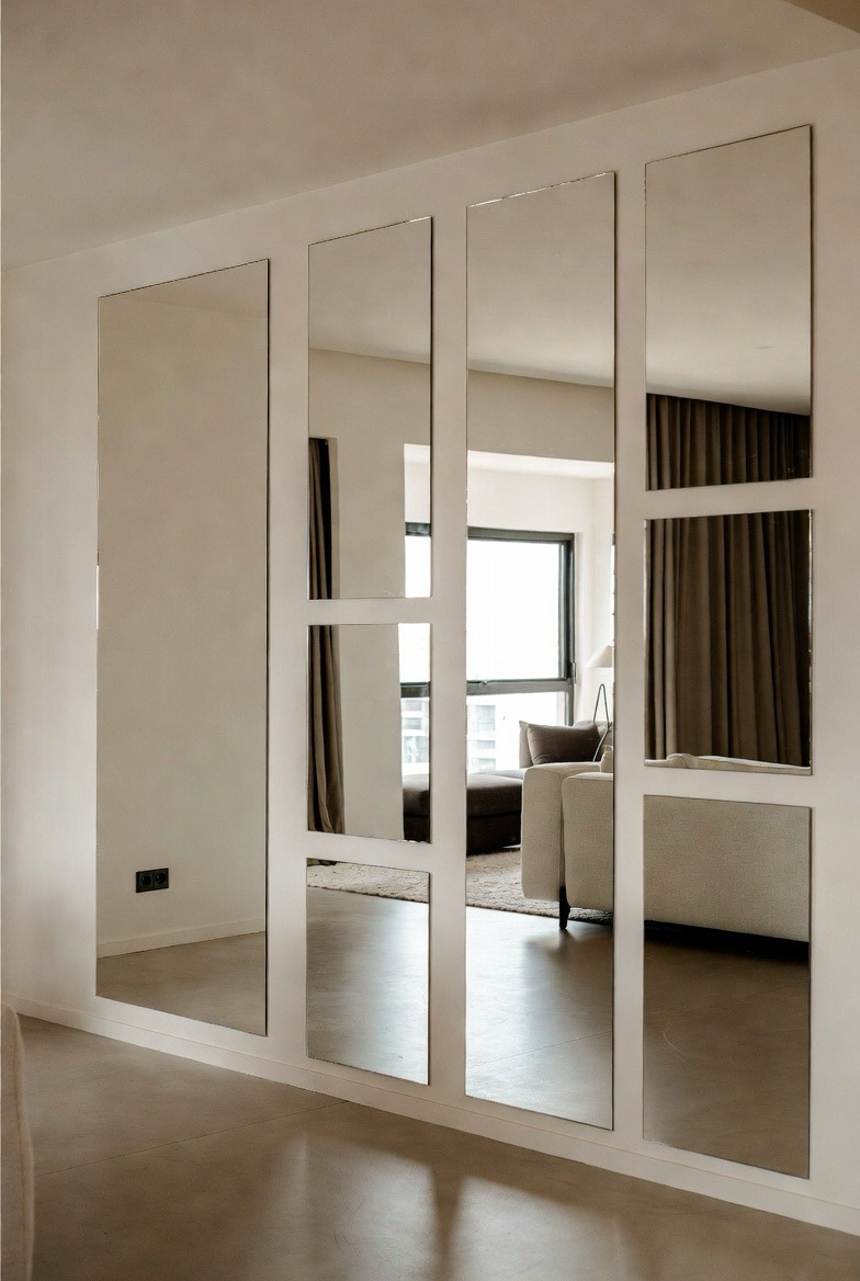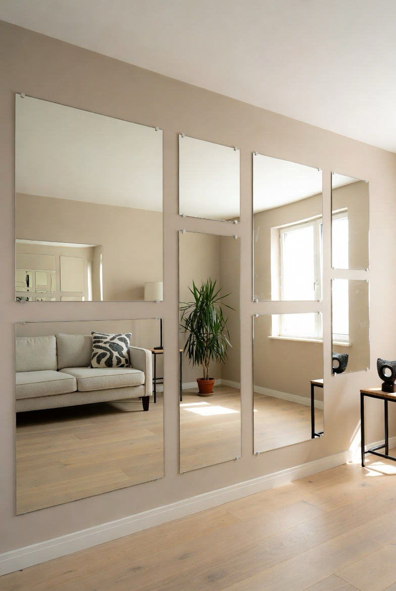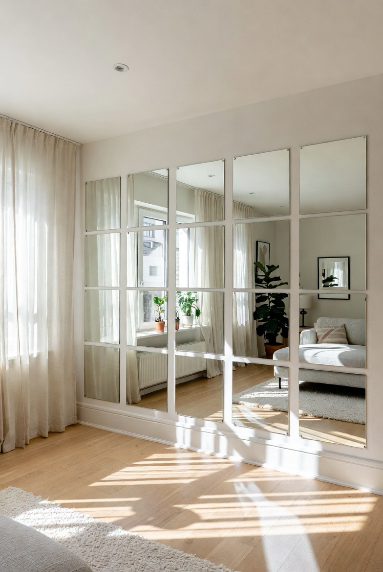 Floor-to-ceiling mirrors are a statement-making decor choice that enhances light and space. In modern living rooms, slim-framed or frameless mirrors reflect natural light, making the room feel larger and brighter. Positioned strategically, they add elegance while serving both aesthetic and functional purposes.