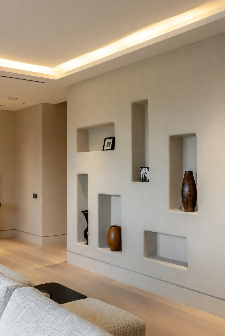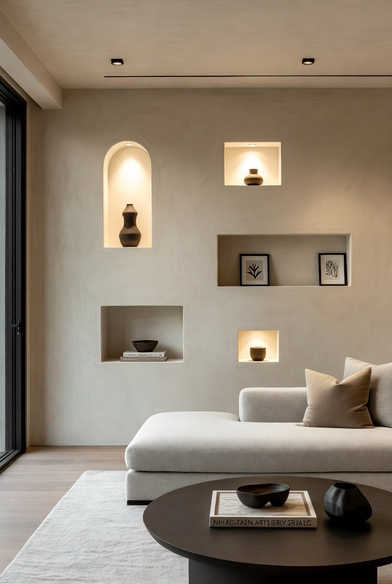 Wall niches offer a clean, architectural way to display decor. Built-in shelves or recessed displays feel custom and high-end, perfect for showcasing art pieces or ceramics. When styled simply, niches enhance modern interiors while maintaining a streamlined look.