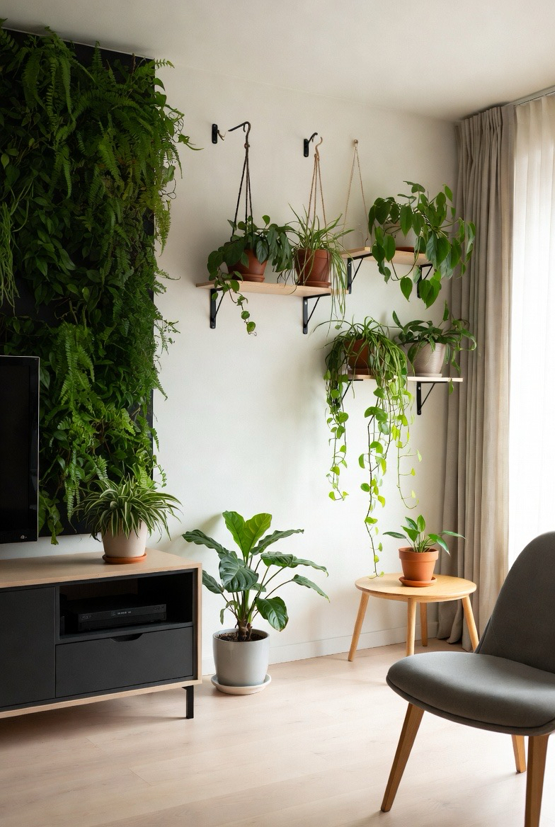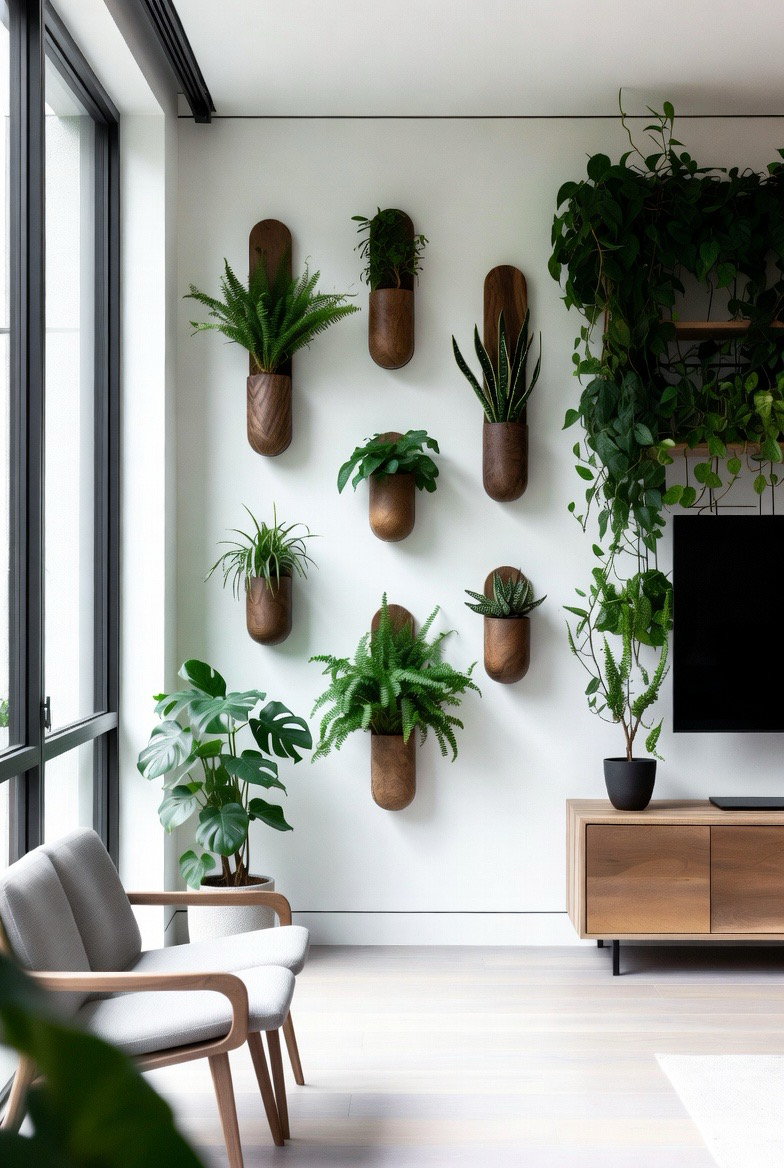 Incorporating plants into wall decor adds freshness and life. Vertical planters, wall-mounted pots, or trailing greenery soften modern spaces while improving ambiance. Green walls work beautifully as accent features, balancing clean lines with natural texture.