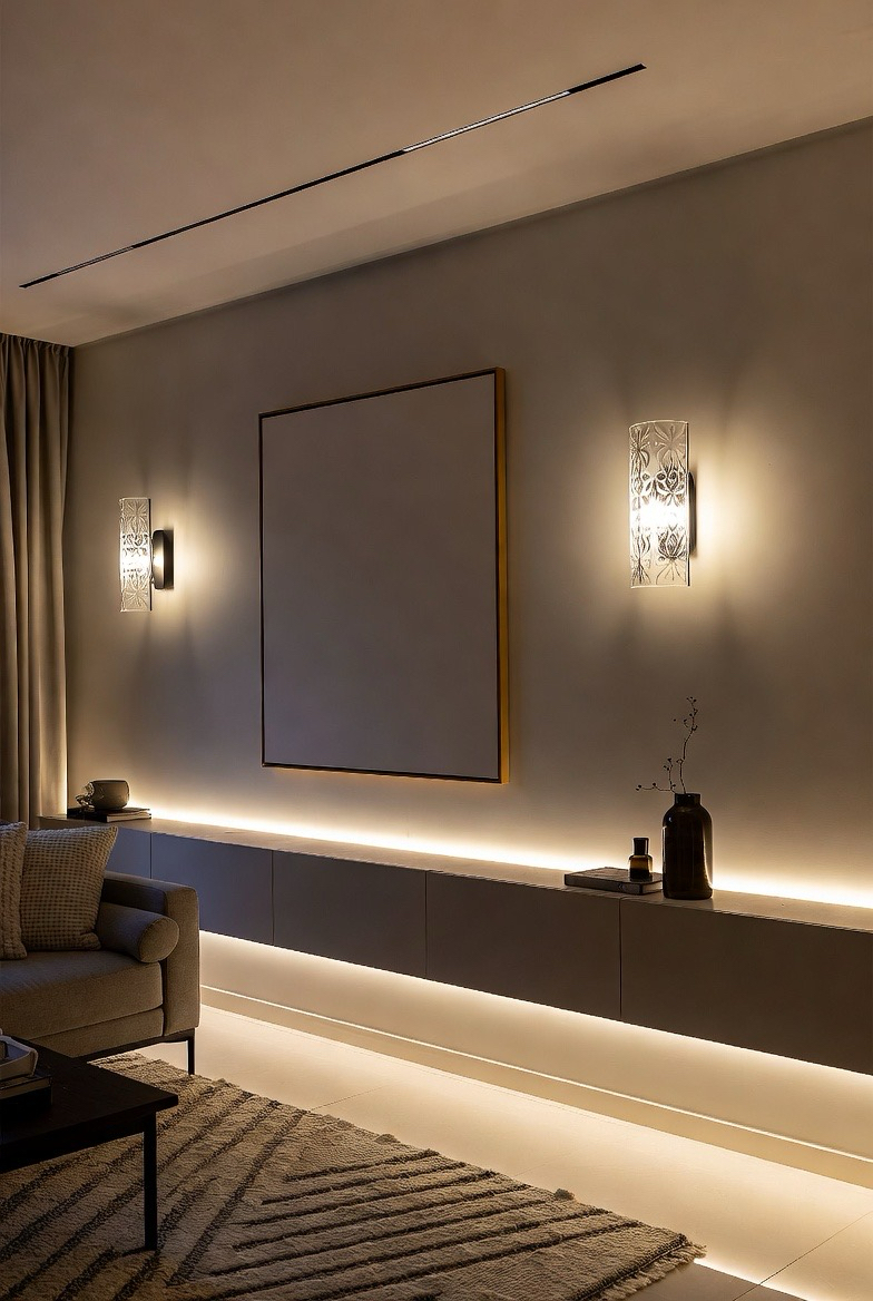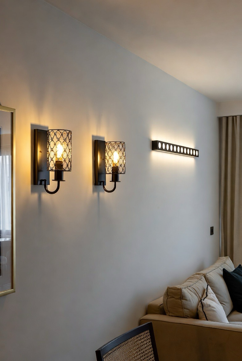 Decorative wall sconces or LED wall lights blend function with modern style. These fixtures highlight artwork or accent walls while adding ambient lighting. Sleek designs in metal or matte finishes enhance contemporary interiors beautifully.