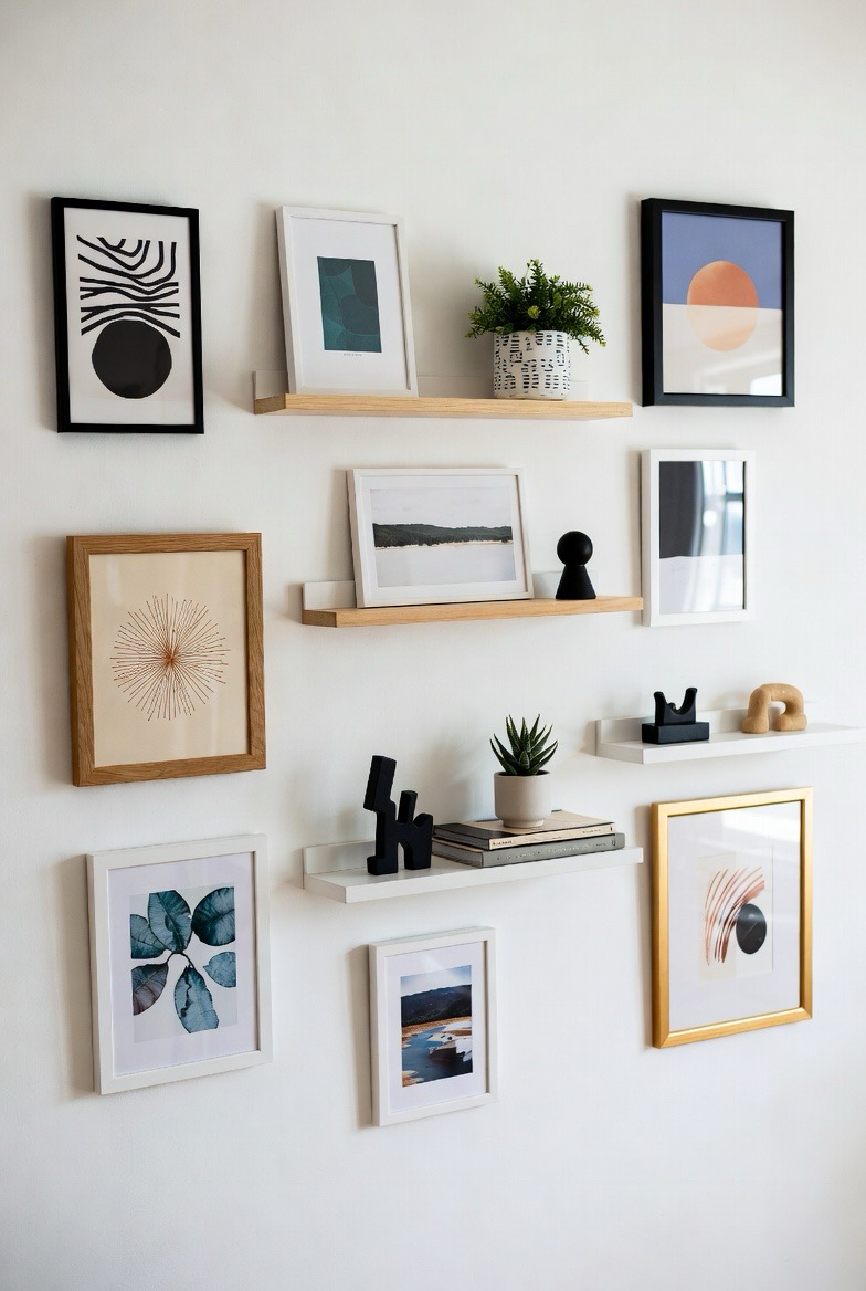 Asymmetrical decor arrangements feel dynamic and modern. Whether artwork or shelves, uneven layouts add movement and creativity. Keeping a consistent color palette ensures the look remains cohesive rather than chaotic.