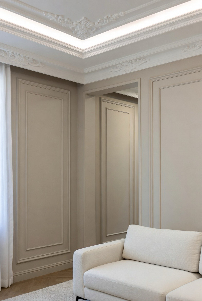 Modern molding designs, clean lines, box panels, or subtle trims, add sophistication without feeling traditional. Painted in neutral or monochrome shades, architectural molding turns plain walls into elegant focal points.