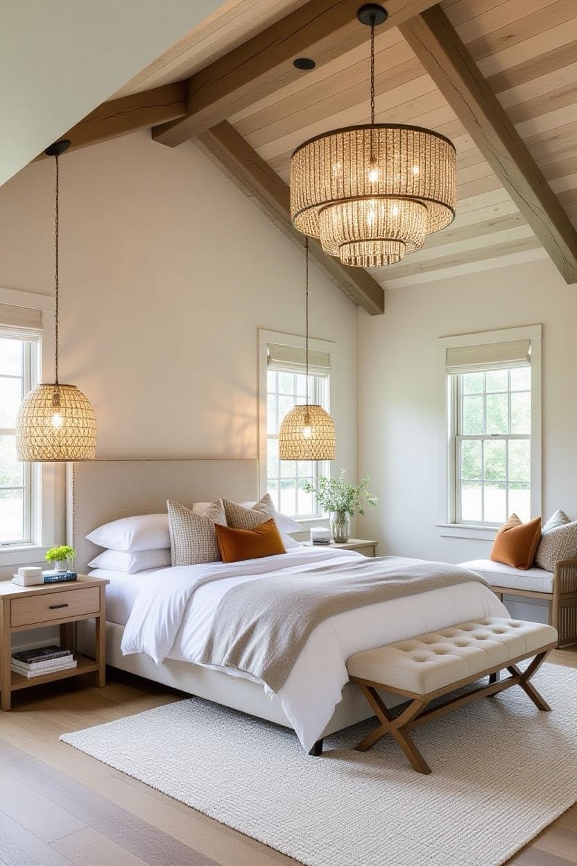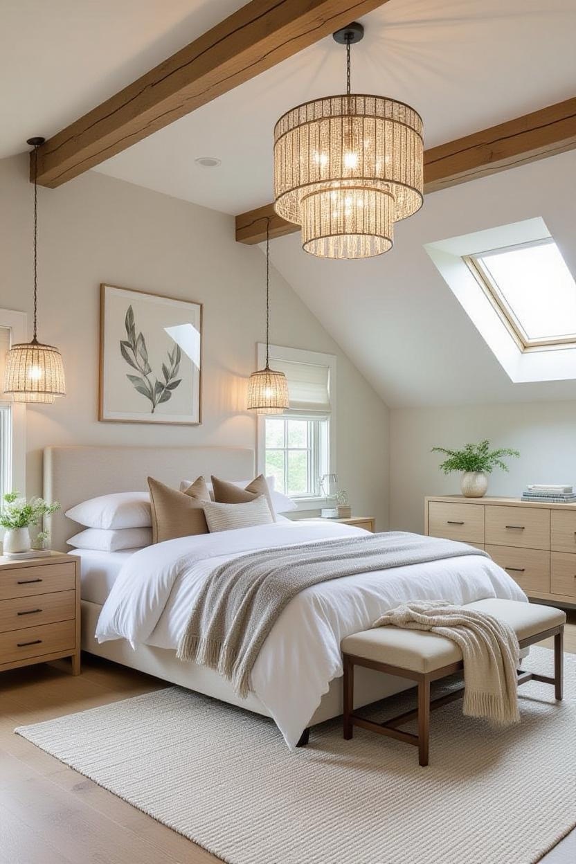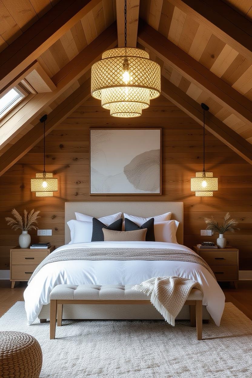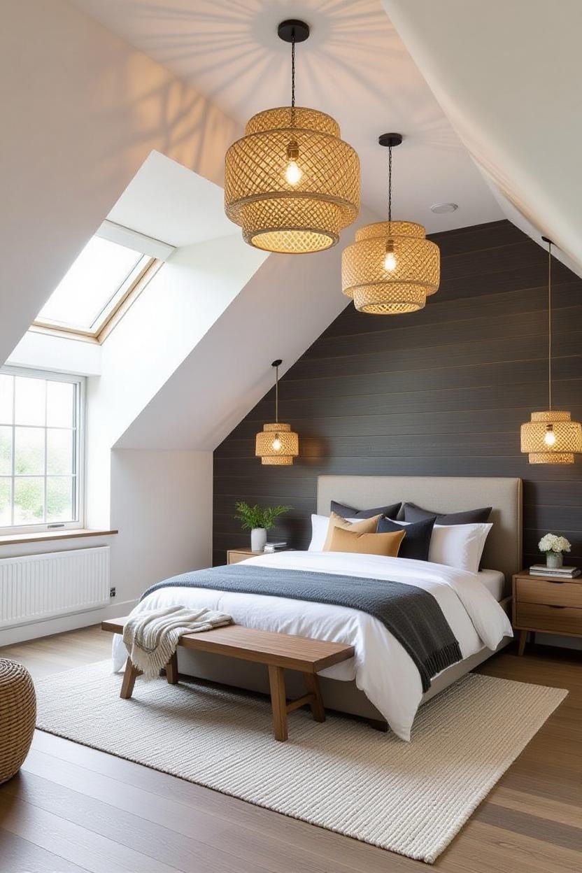 Use dramatic pendant lights or a chandelier to transform your attic bedroom into a stunning retreat. Lighting not only brightens the space but also enhances the design’s personality.