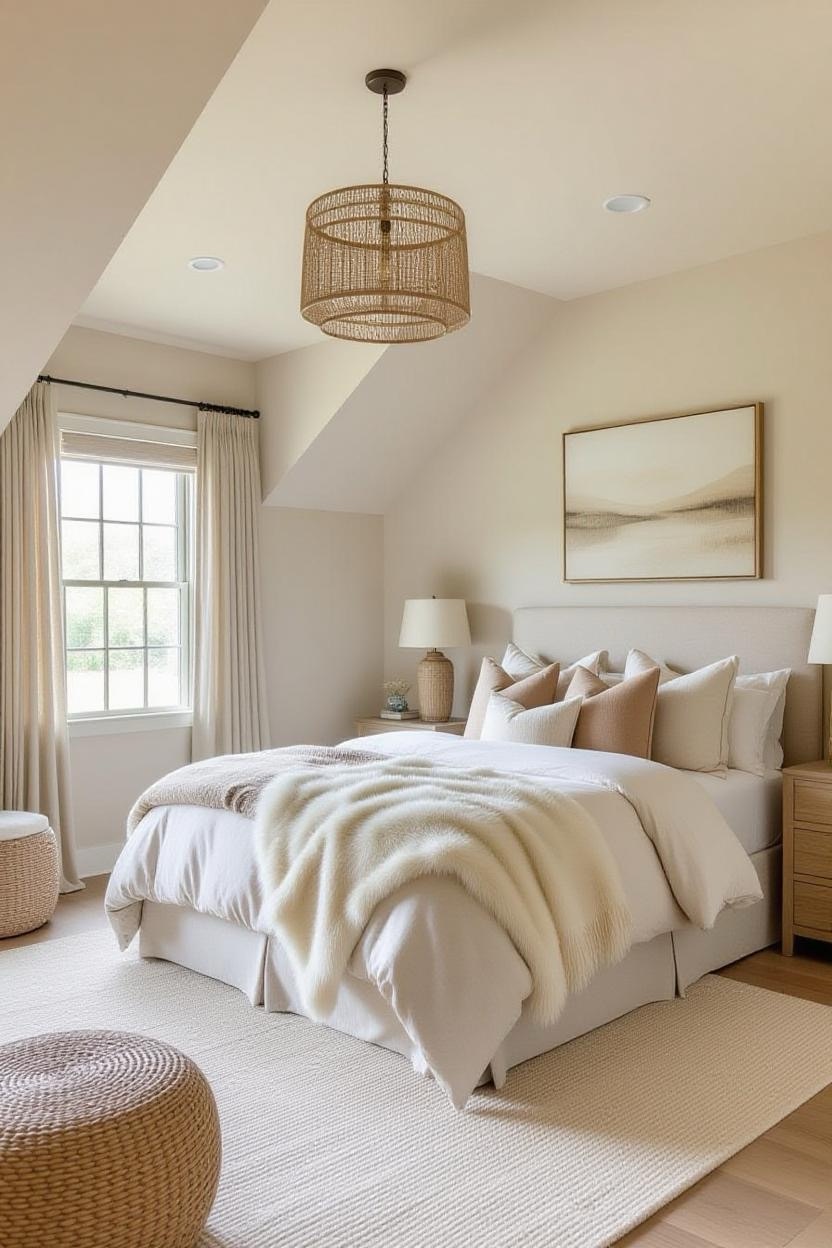 Stick to shades of beige, cream, and taupe for a timeless, elegant look. Layer textures like linen, faux fur, and soft cotton to keep the space from feeling flat while exuding sophistication.