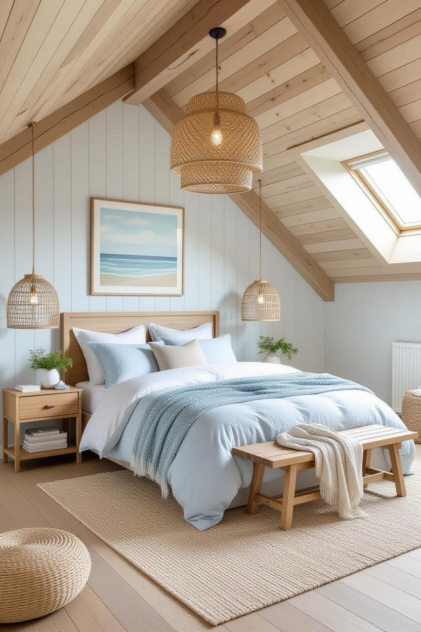Turn your attic into a beachy escape with light blues, sandy tones, and breezy fabrics. Add coastal artwork and natural woven textures to complete the seaside feel.