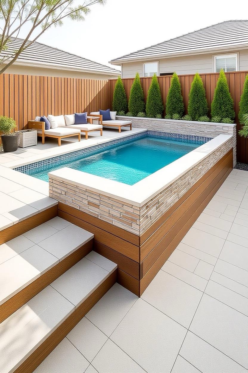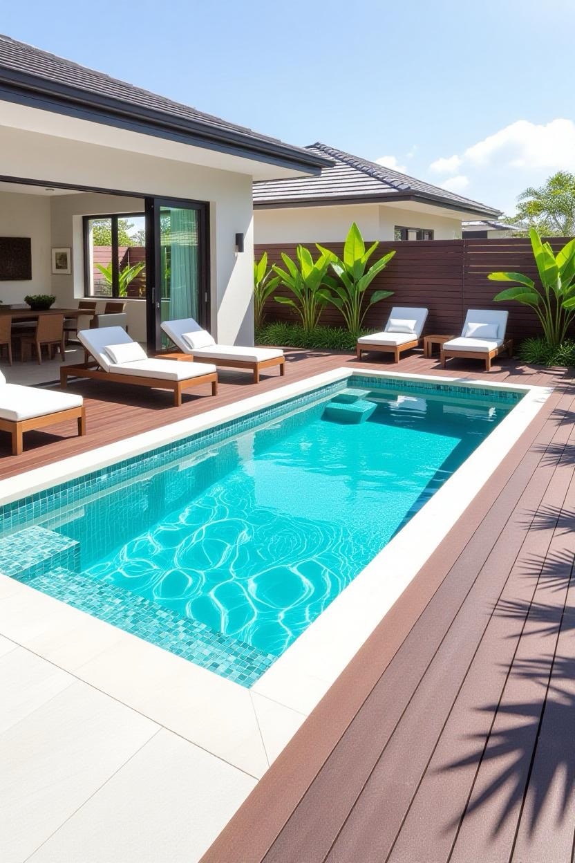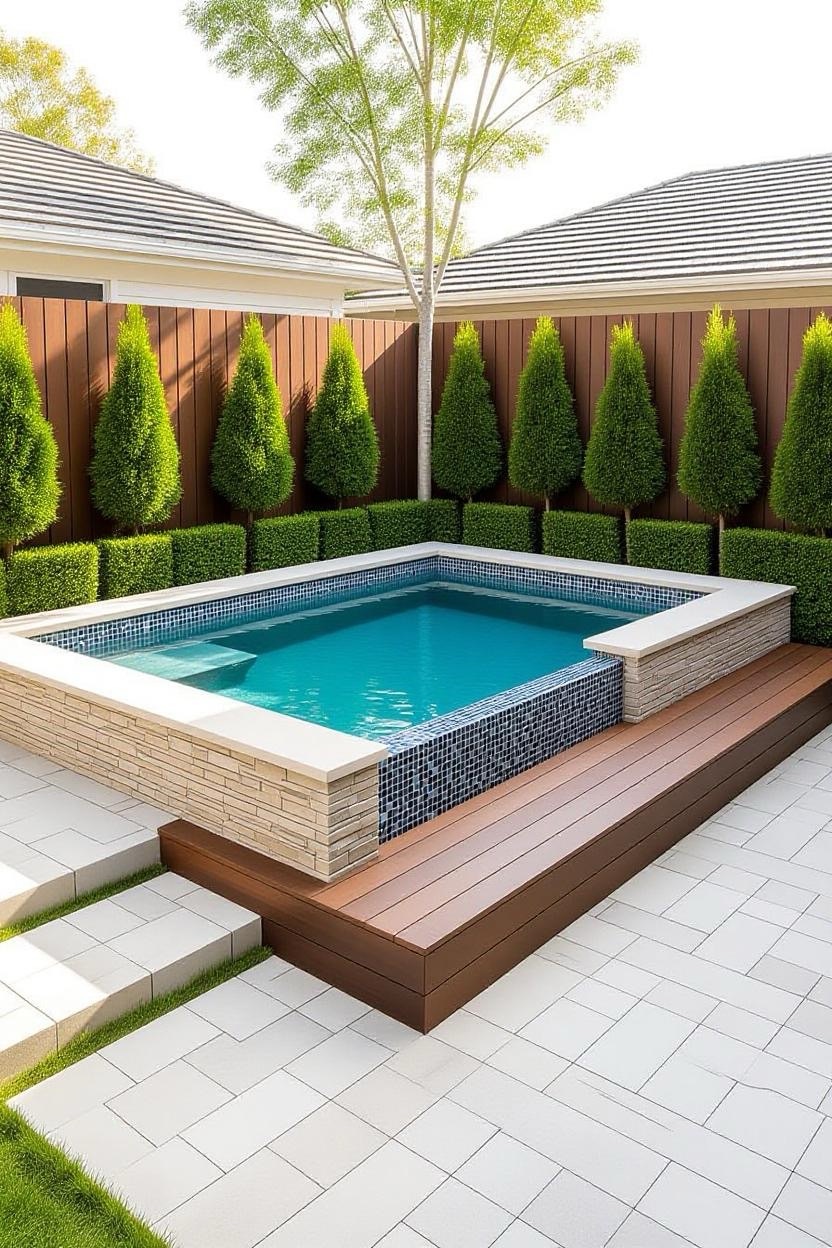 Combine your small pool with a wooden deck to create a stylish lounging area. This not only maximizes functionality but also makes your pool area look larger and more inviting.