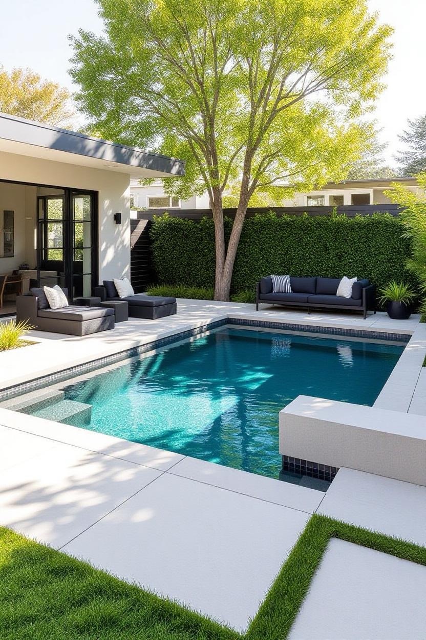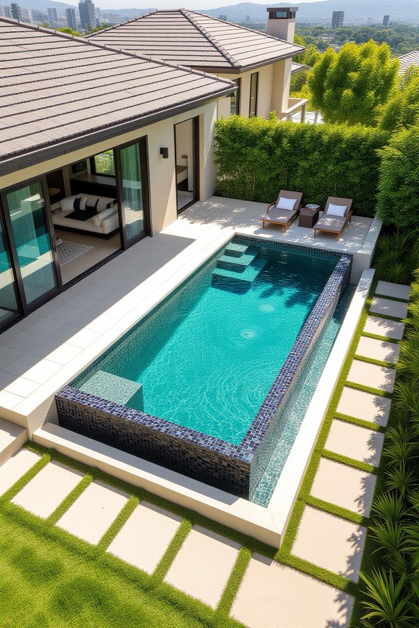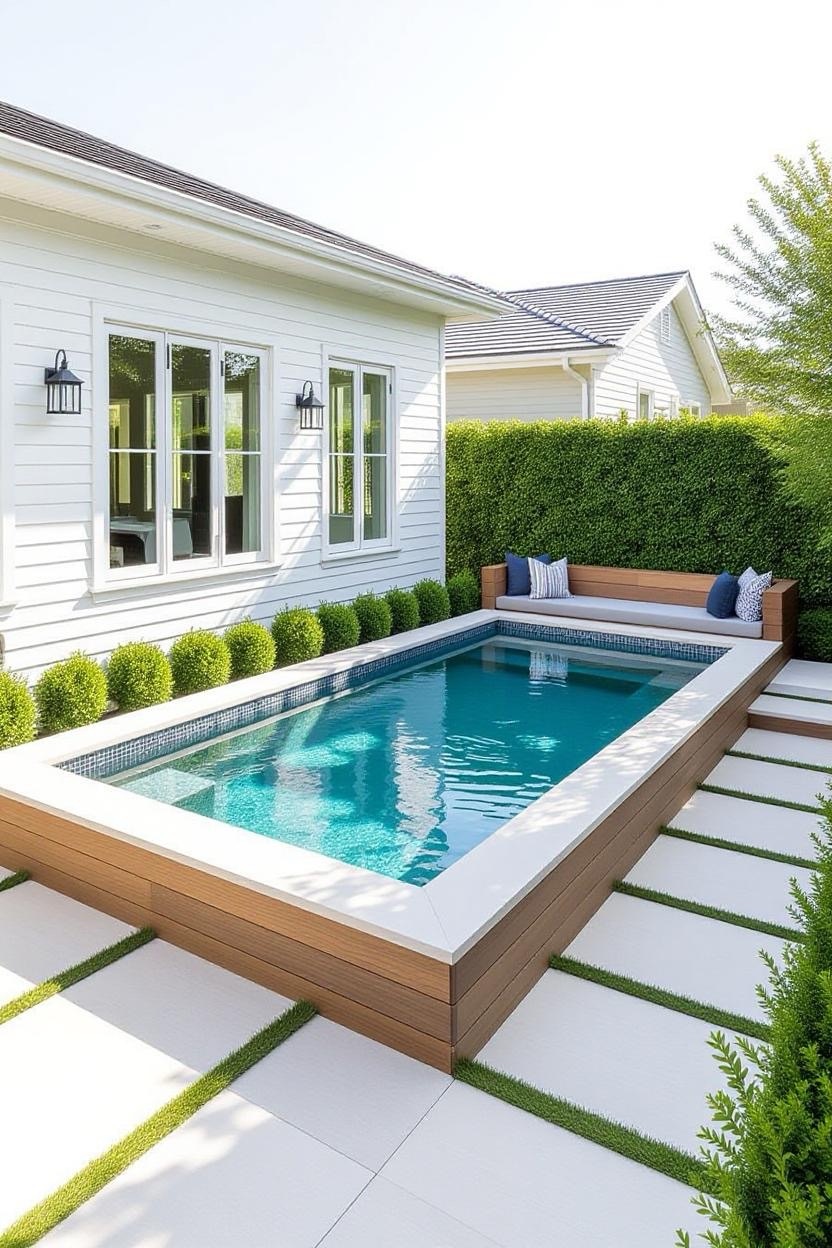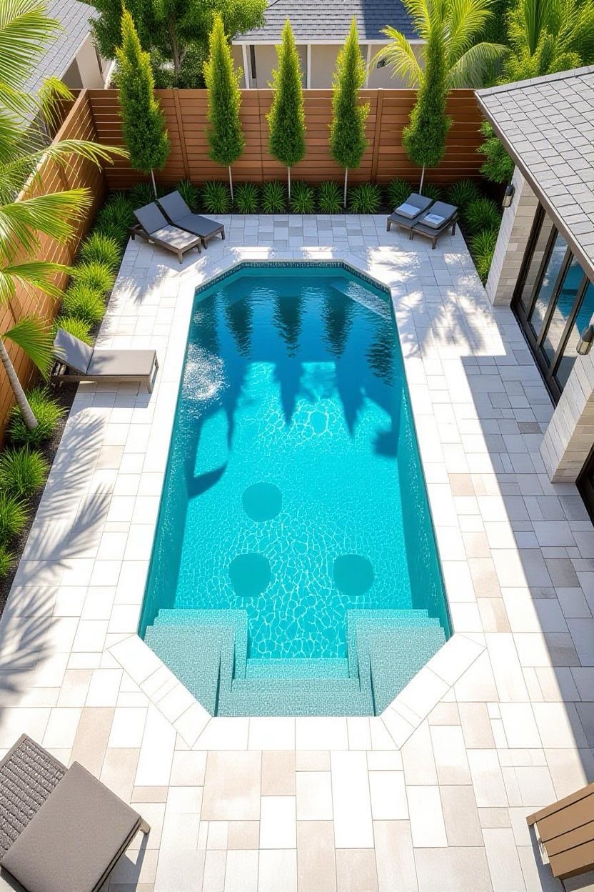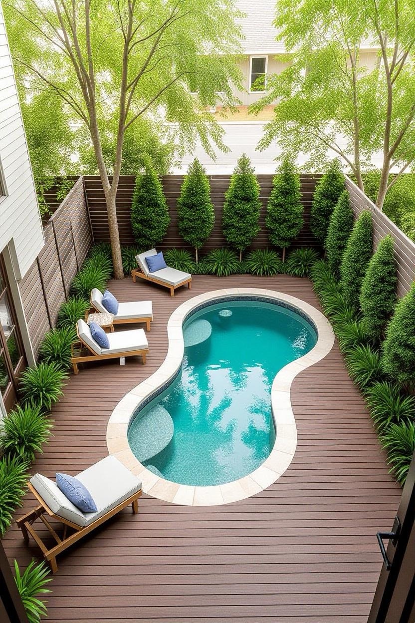 Go beyond rectangles with small hexagonal, oval, or L-shaped pools. Unique geometry makes the pool feel custom and stylish, even in limited spaces.