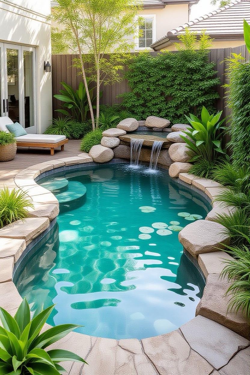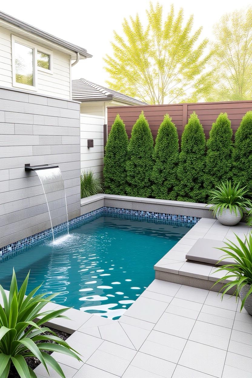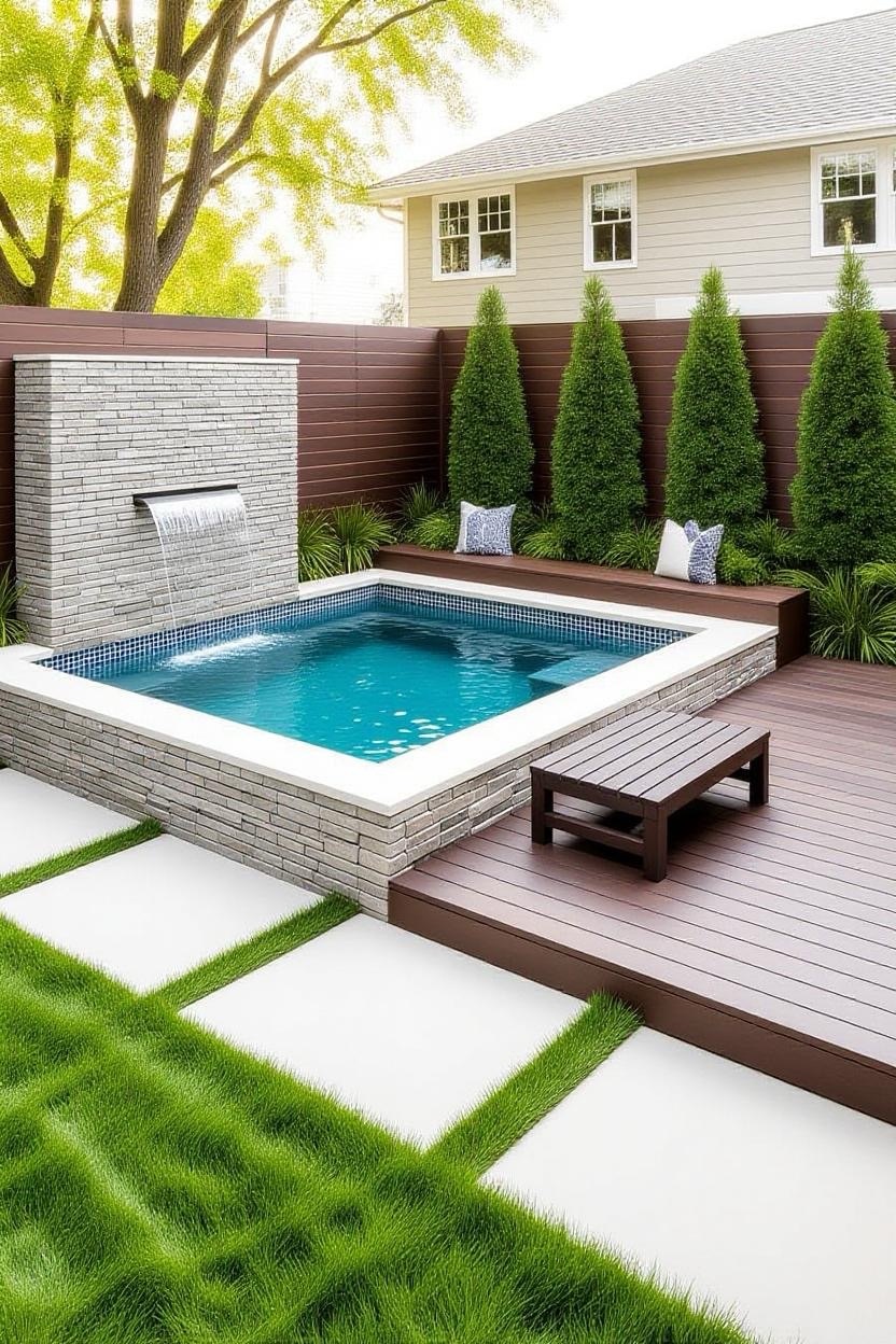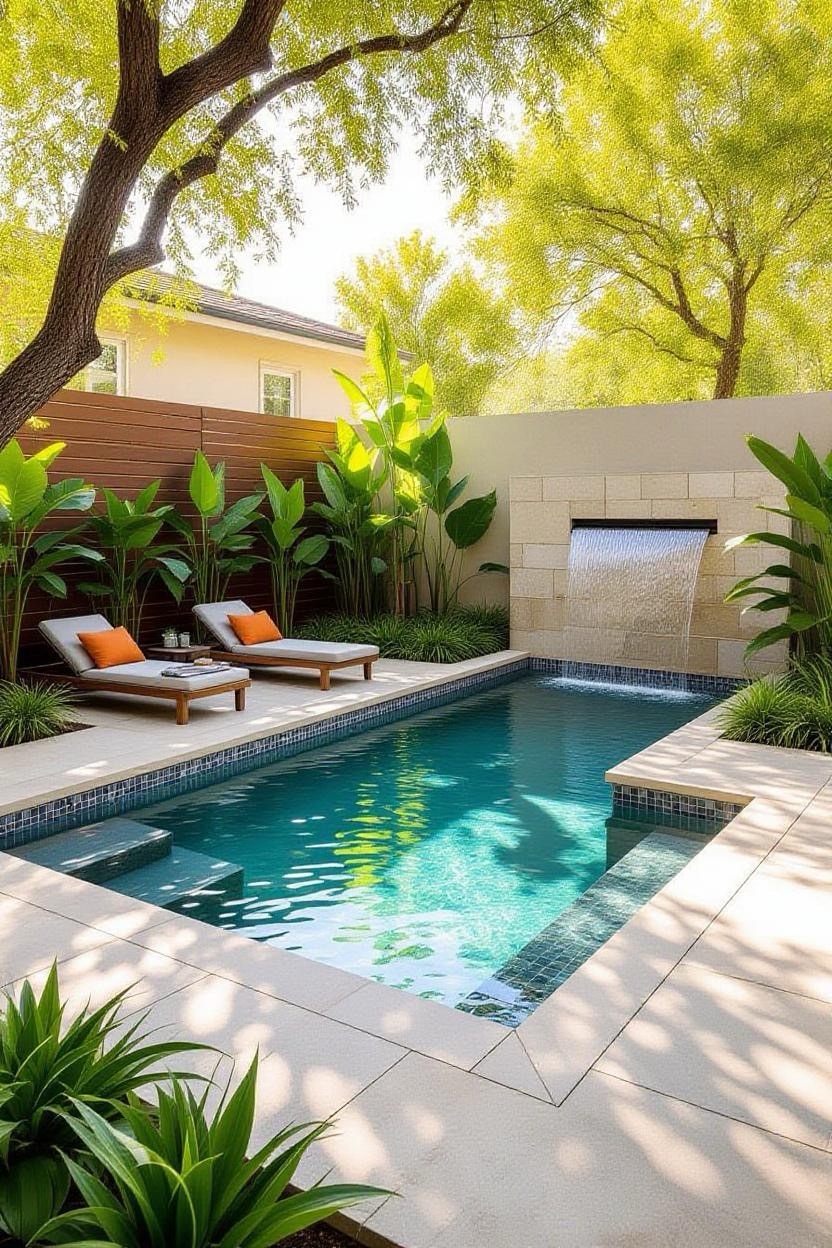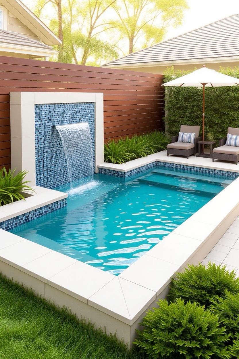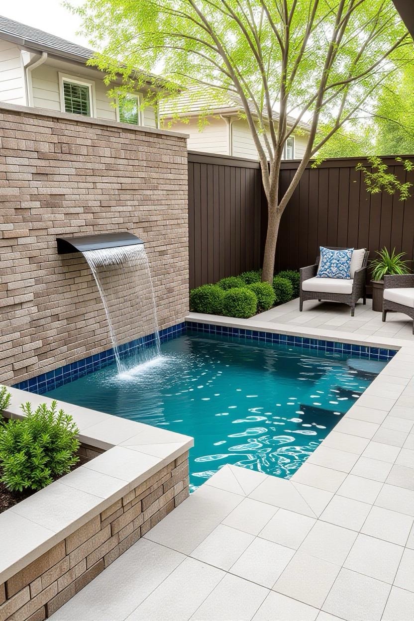 Adding a small waterfall or fountain to your backyard pool creates movement and a soothing sound. This makes your compact pool feel more luxurious and inviting.