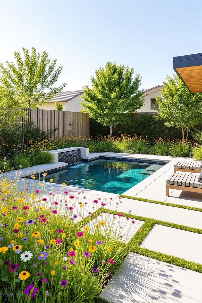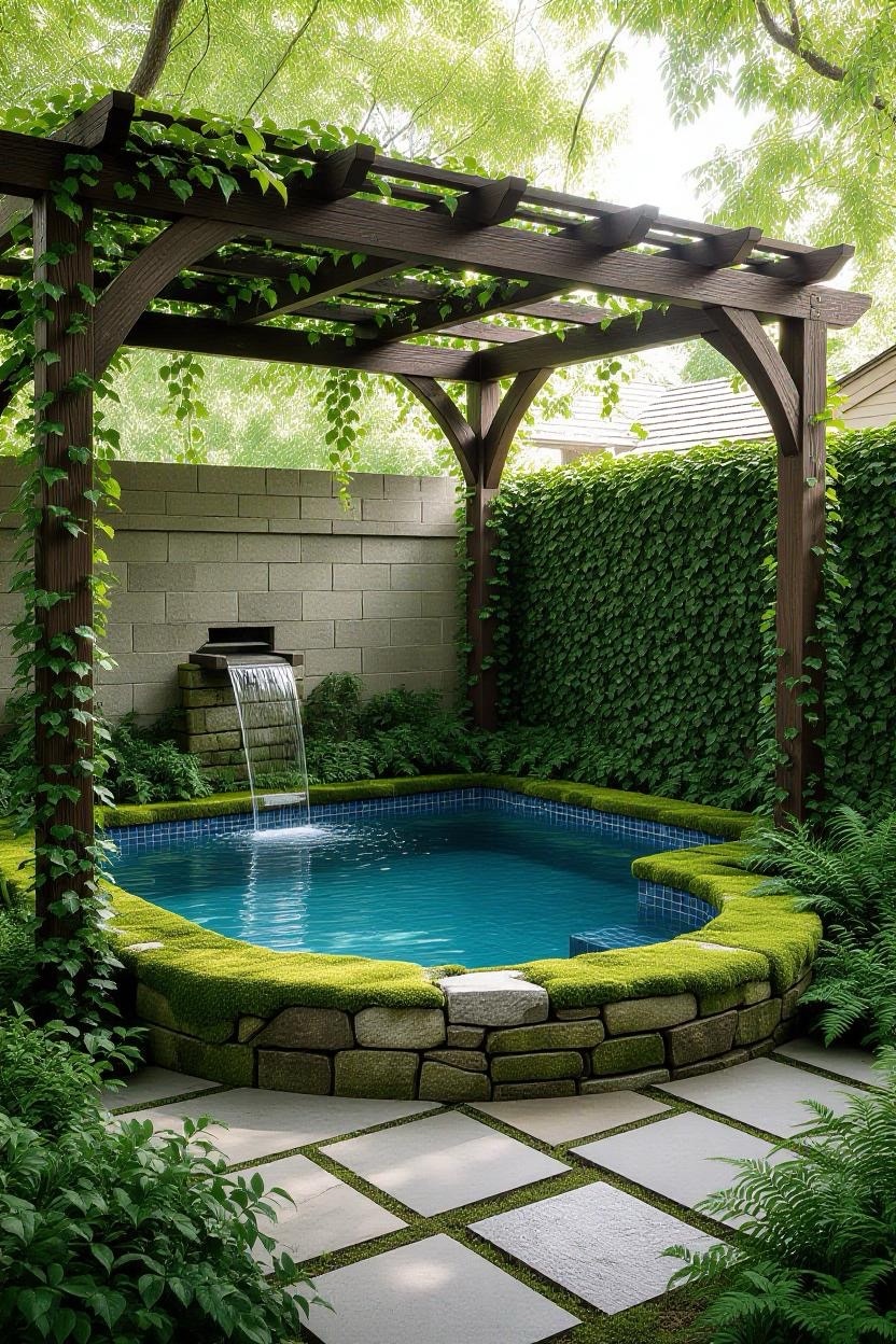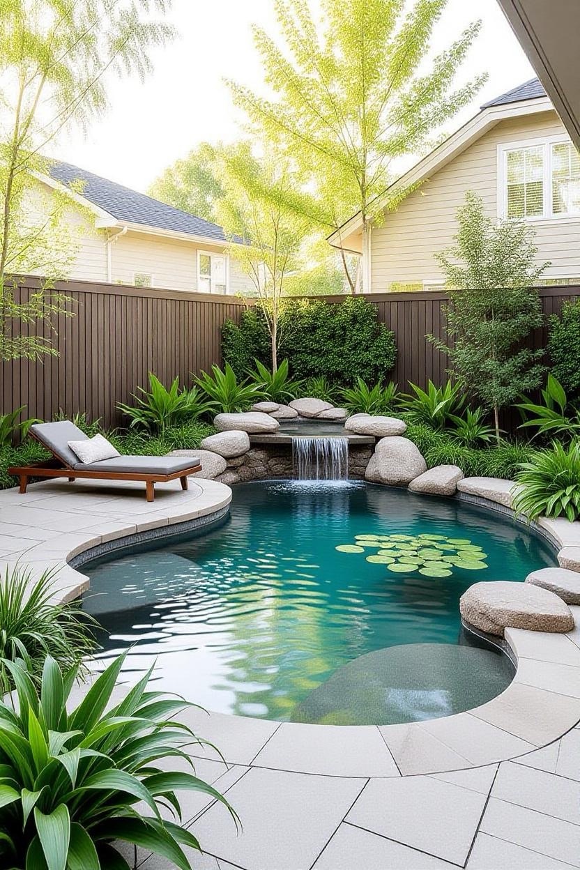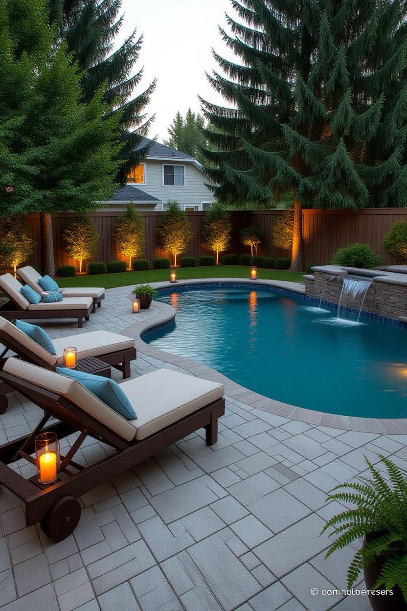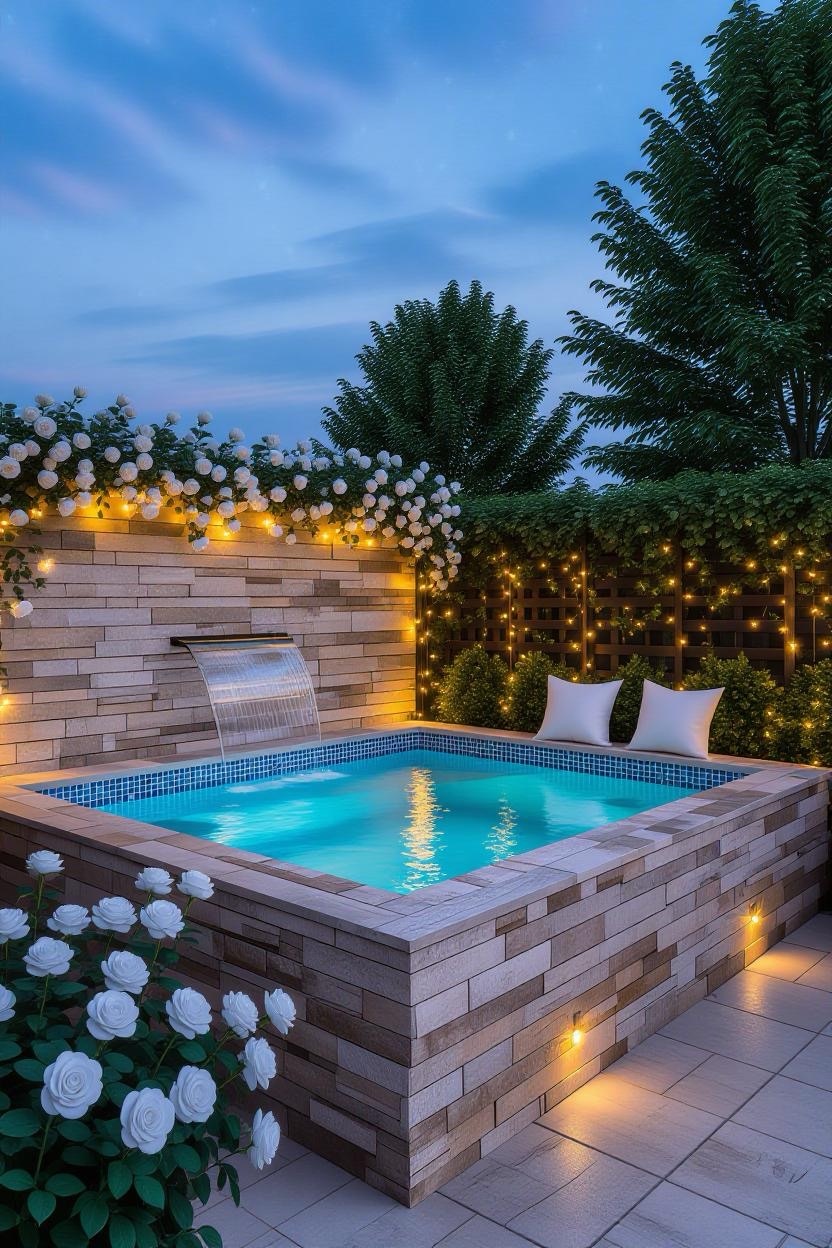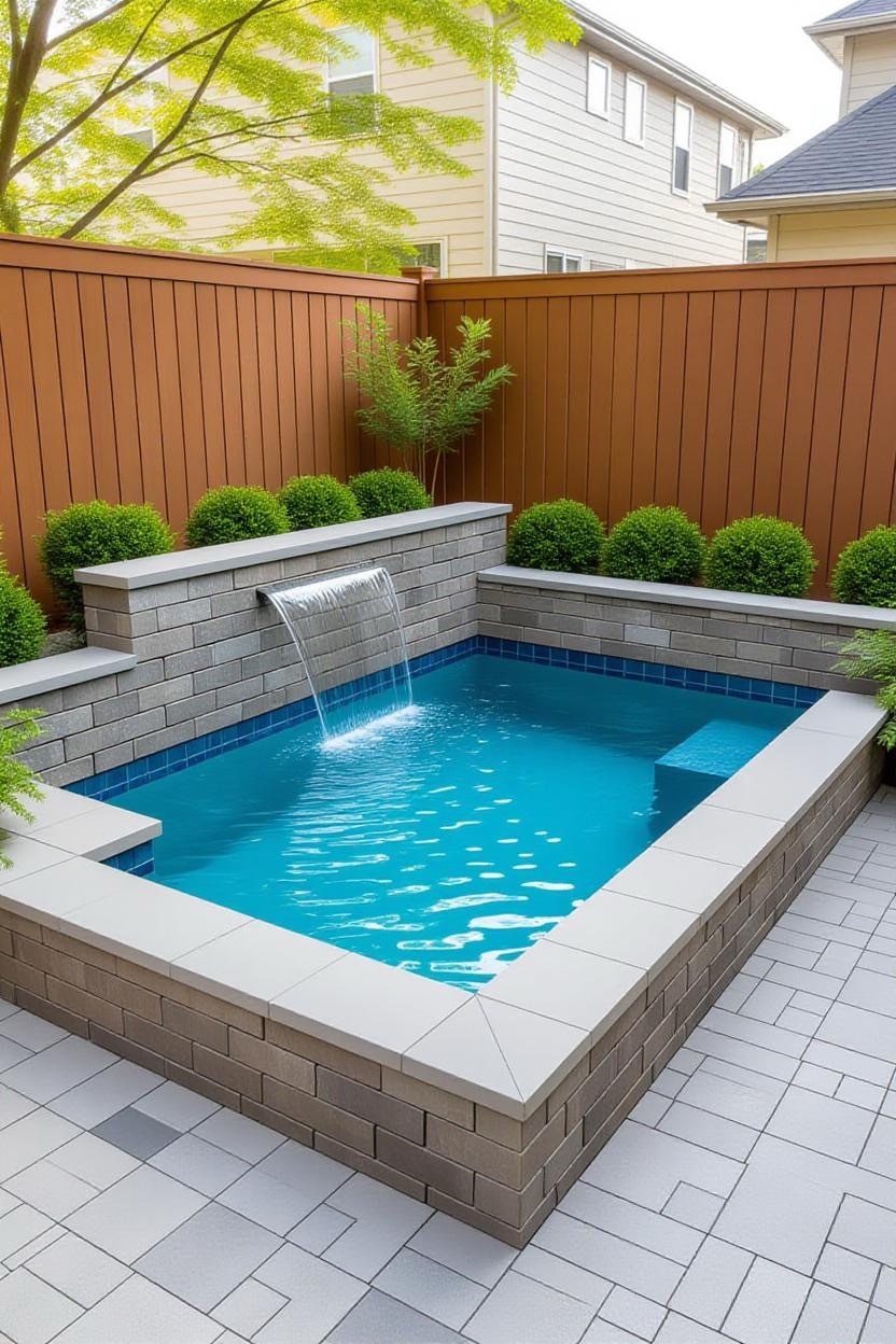 Adding a small waterfall or fountain to your backyard pool creates movement and a soothing sound. This makes your compact pool feel more luxurious and inviting.