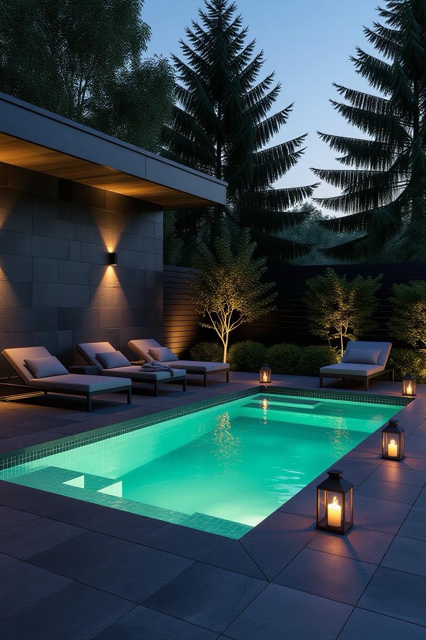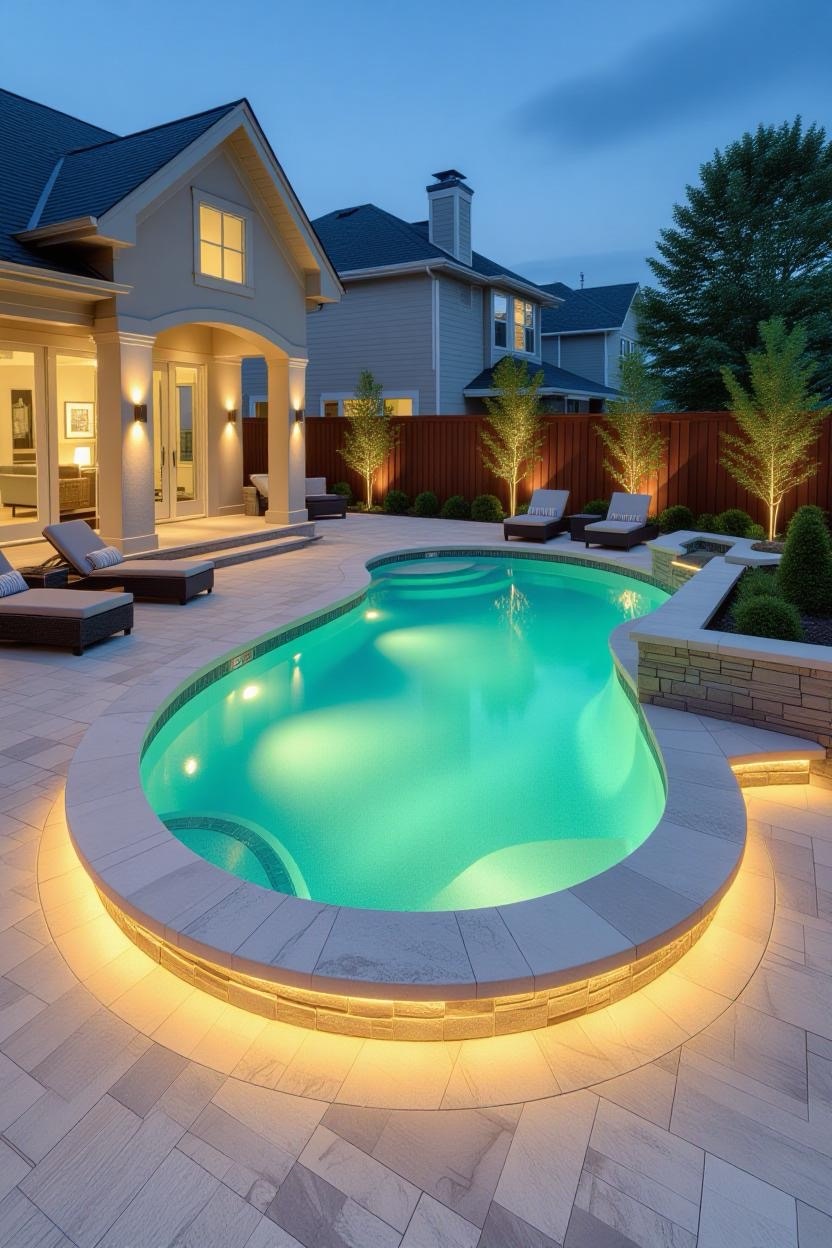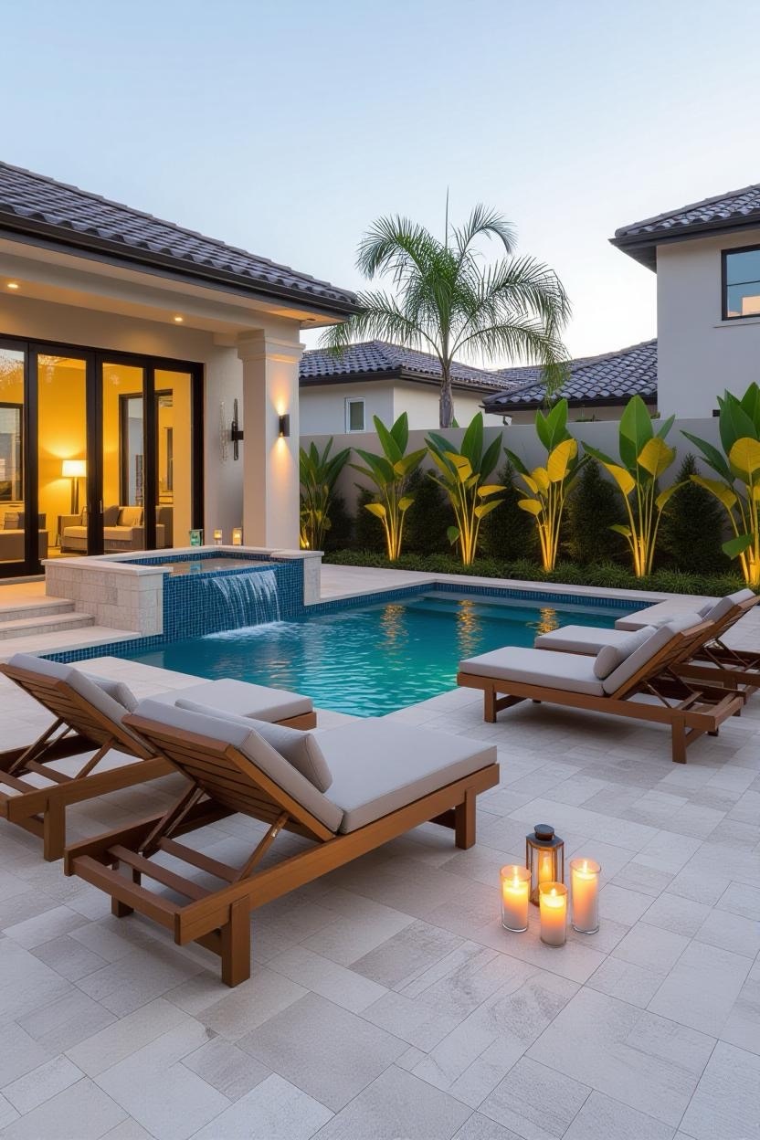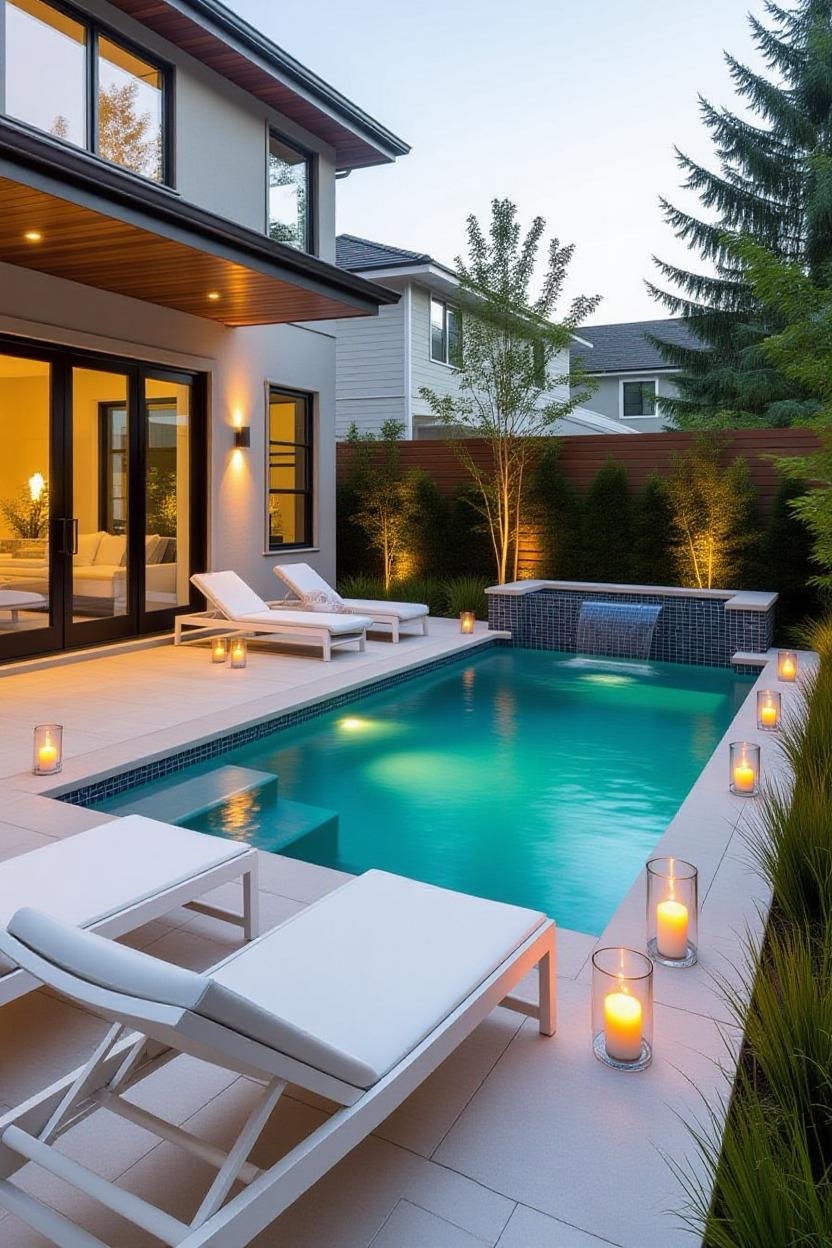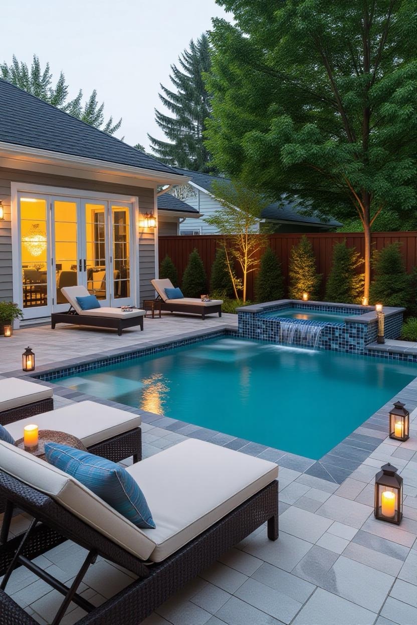 Turn your small pool into a spa-like oasis with bubbling jets and warm lighting. Add lounge chairs and a few candles, and you’ve got the perfect evening relaxation spot.
