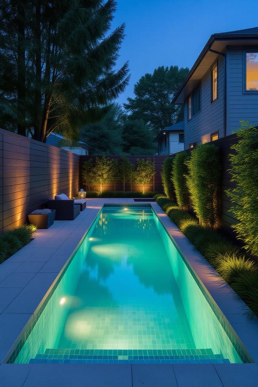 If you love fitness, consider a narrow lap pool designed for swimming exercises. This style fits well into long, slim backyards while offering both function and beauty.