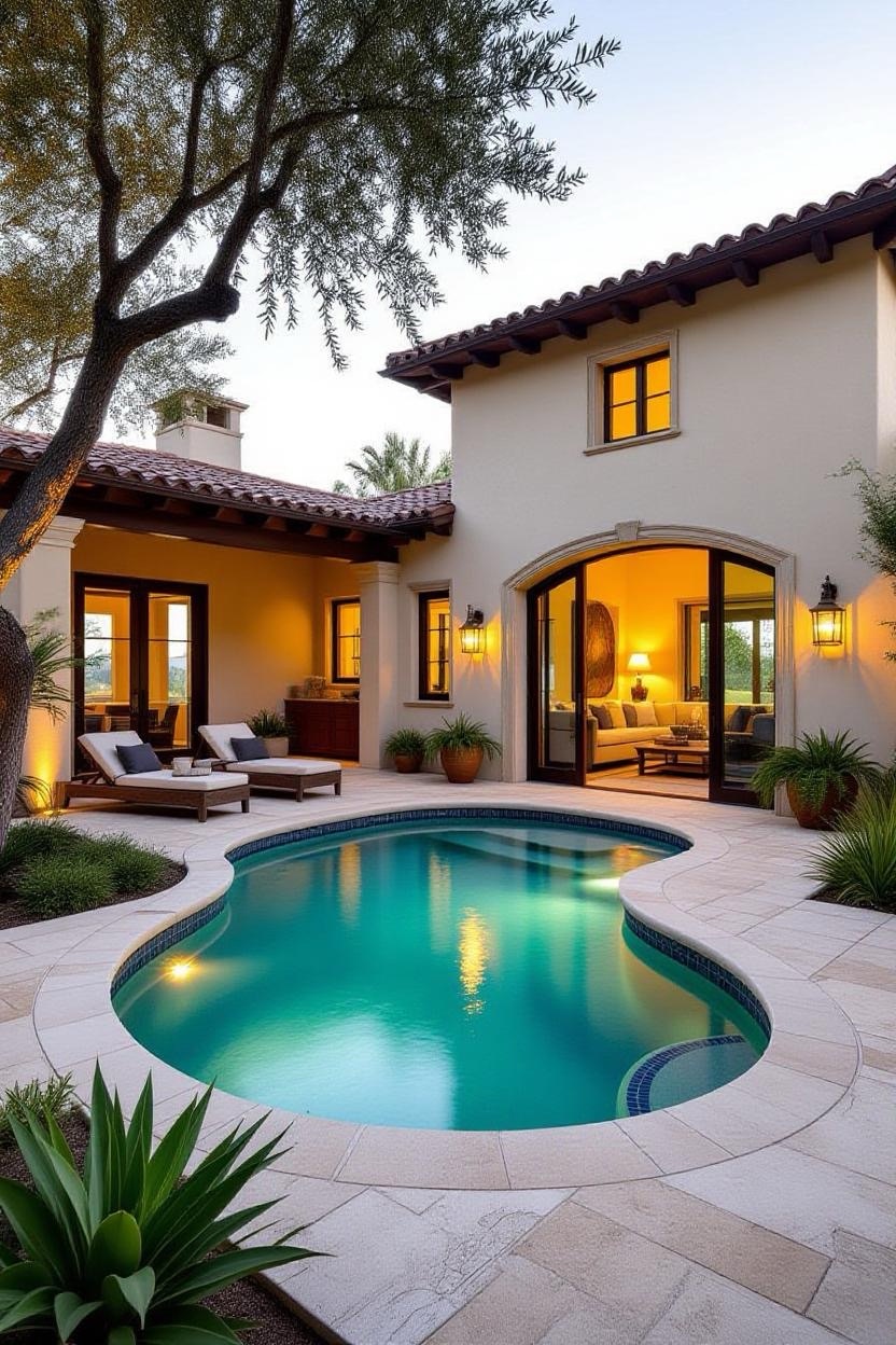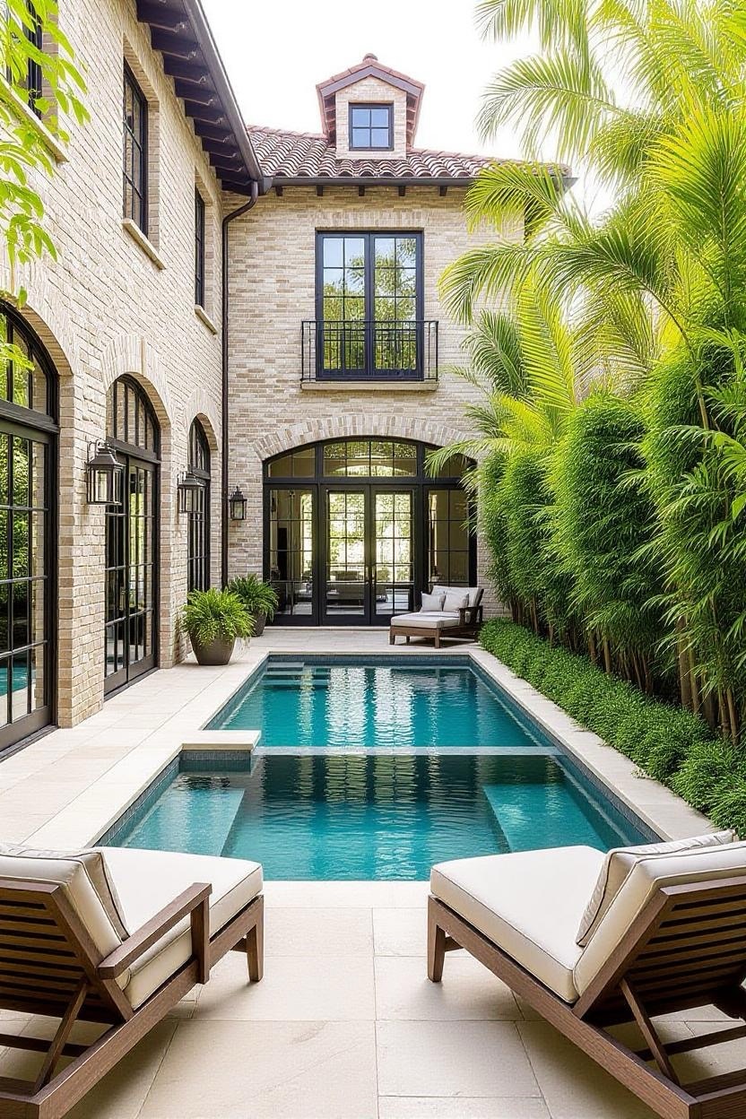 Place your pool close to the house in a courtyard-style setup. This maximizes space while creating a seamless indoor-outdoor living experience.