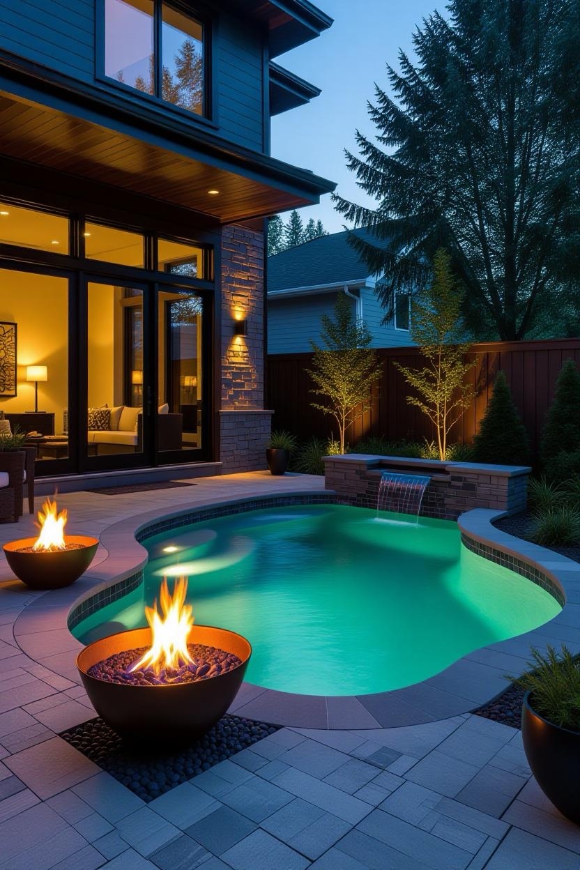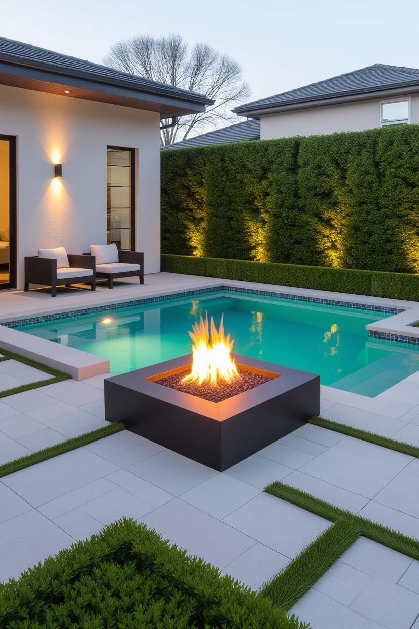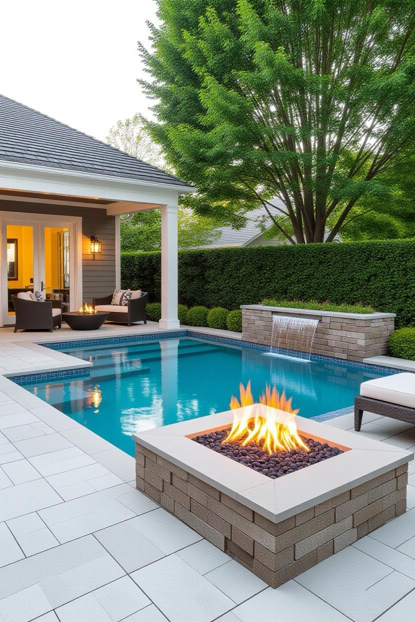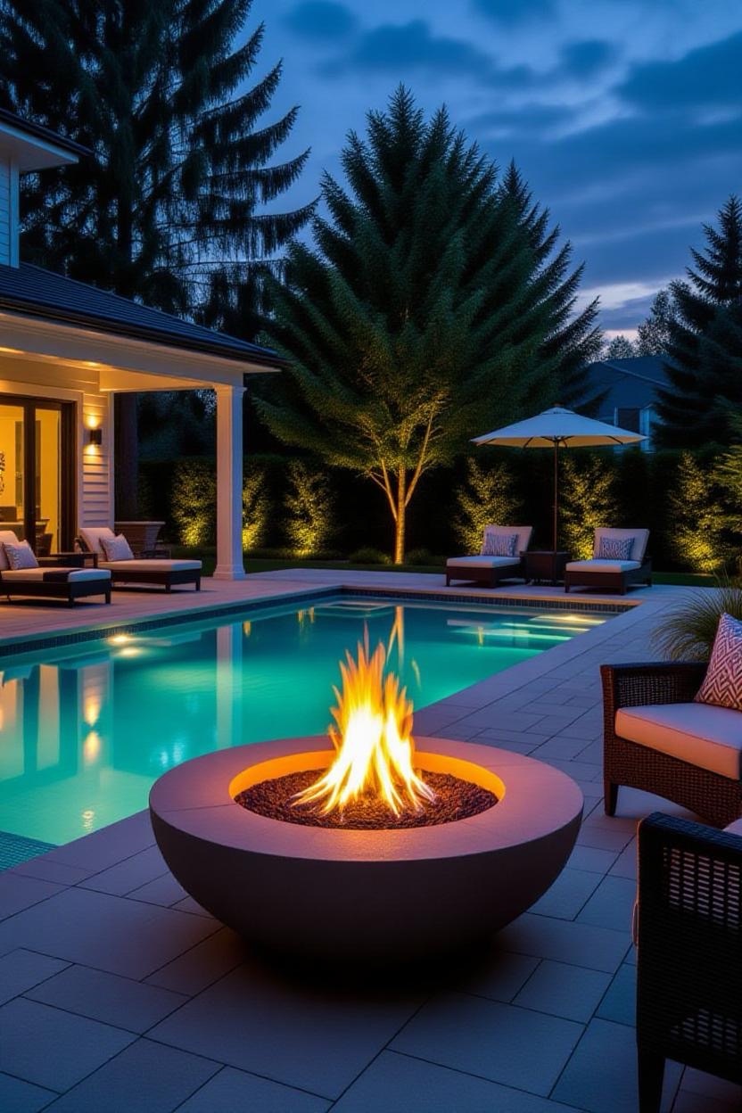 Pair water with fire for a striking contrast. Small fire bowls or a fire pit near your pool create a dramatic and cozy evening atmosphere.