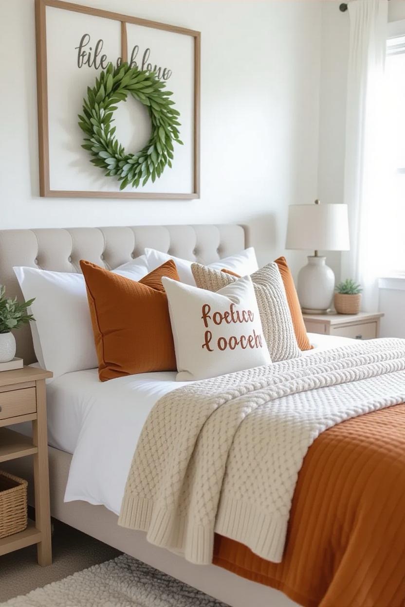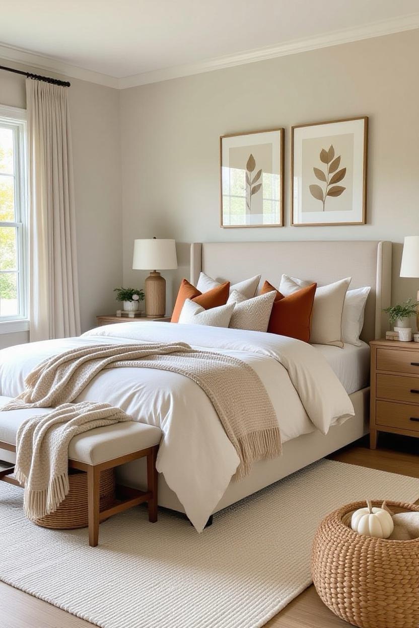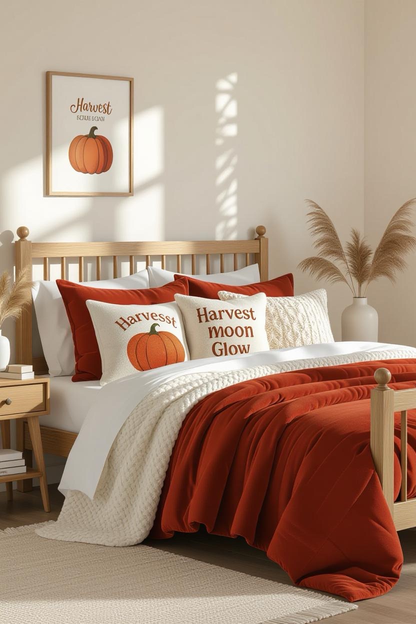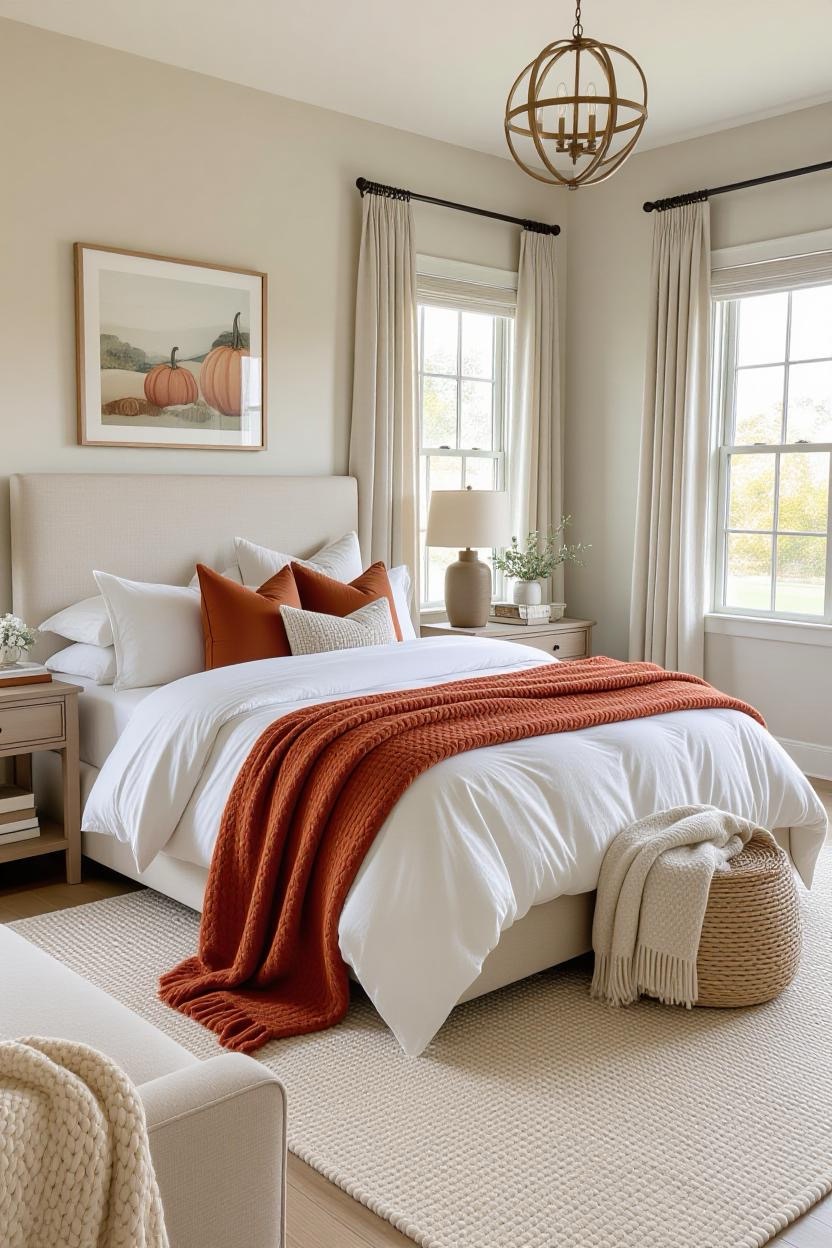 Nothing says fall like a chunky knit throw draped across your bed. Choose warm, neutral tones like oatmeal or rust for a cozy vibe. These oversized textures instantly add warmth, both literally and visually, making your space feel snug and inviting.