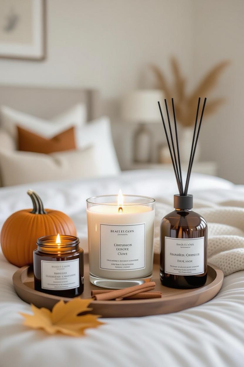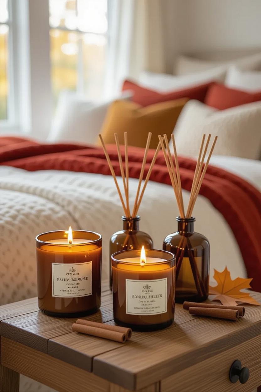 Use fall-scented candles, diffusers, or room sprays in notes like cinnamon, clove, apple, or sandalwood. Scent is key in creating a full sensory seasonal transformation.
