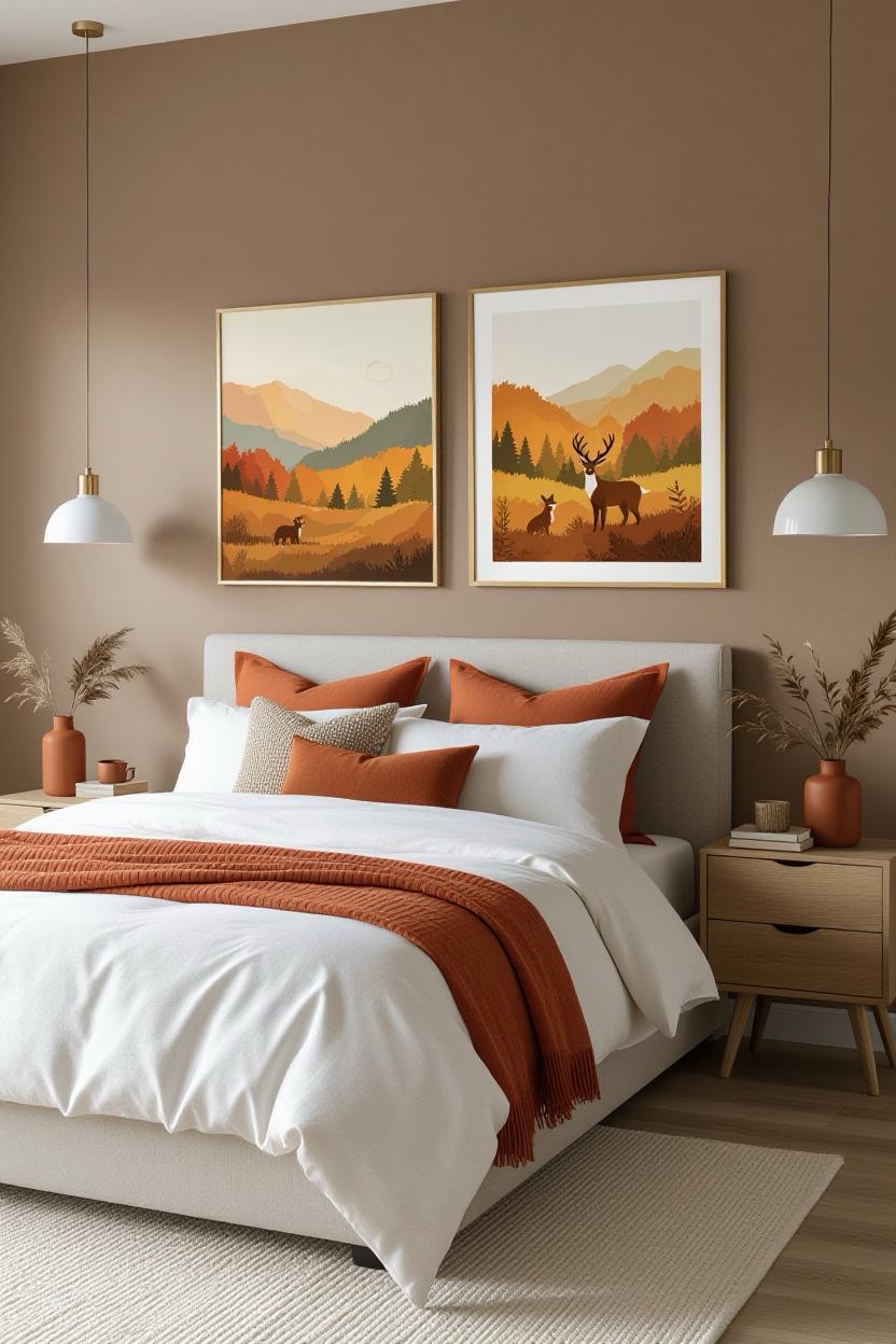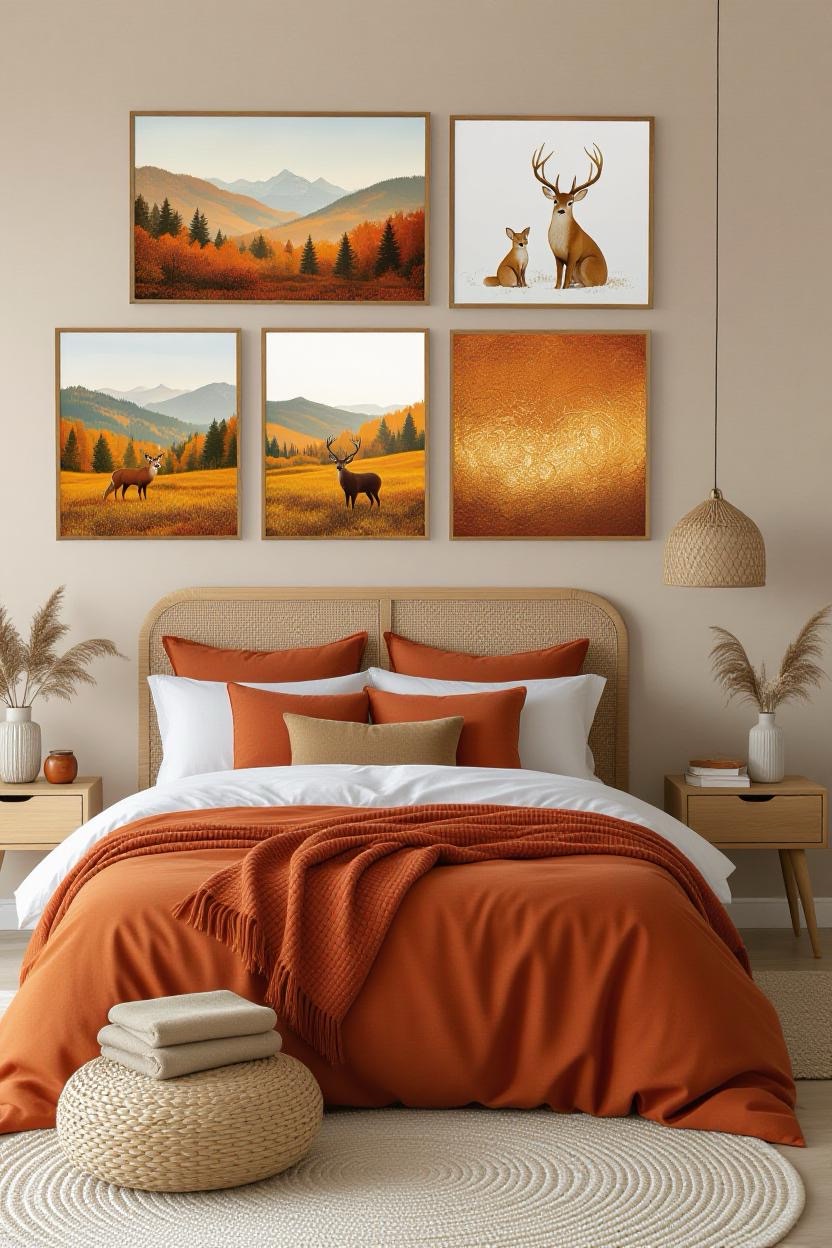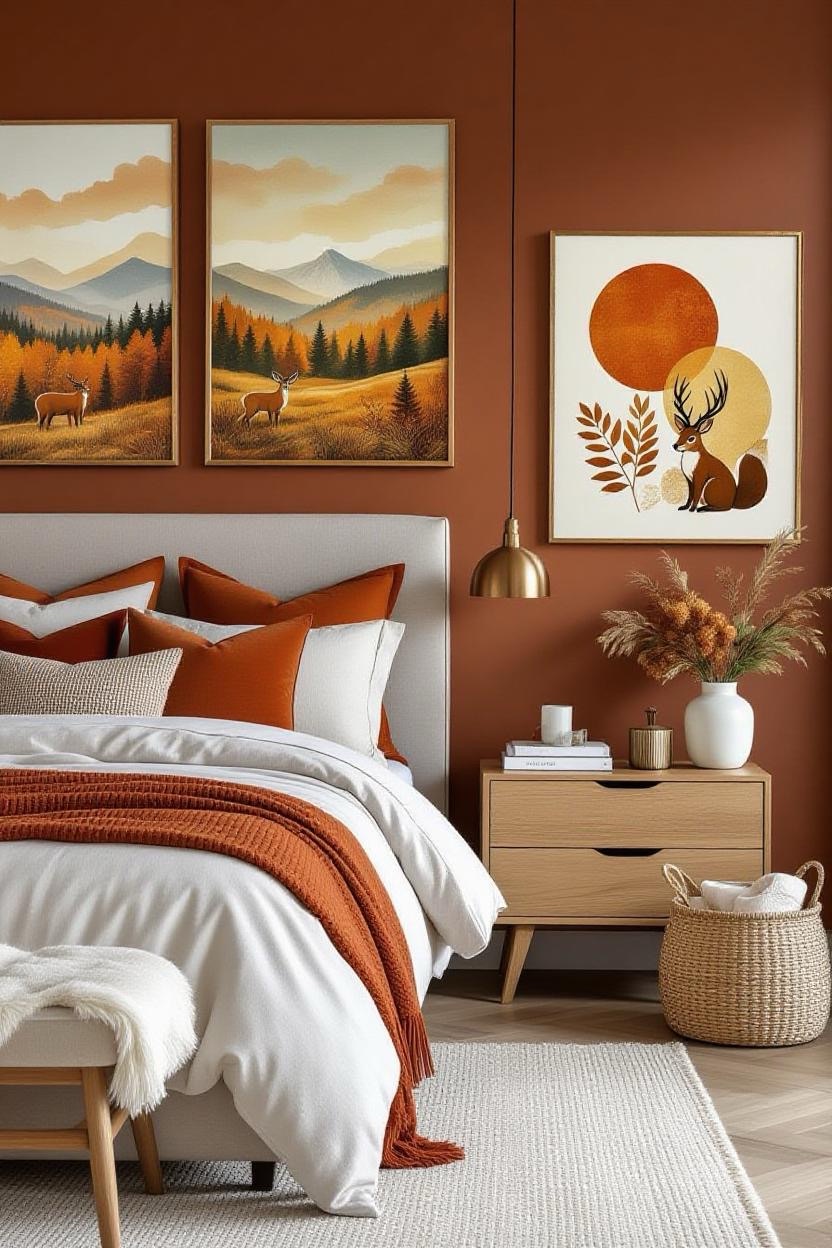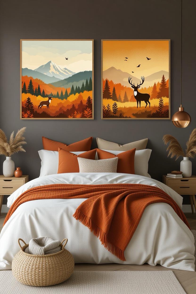 Temporarily switch to seasonal prints, like landscapes with warm hues, woodland animals, or abstract art in copper and amber tones. It’s a simple way to refresh your walls for autumn.