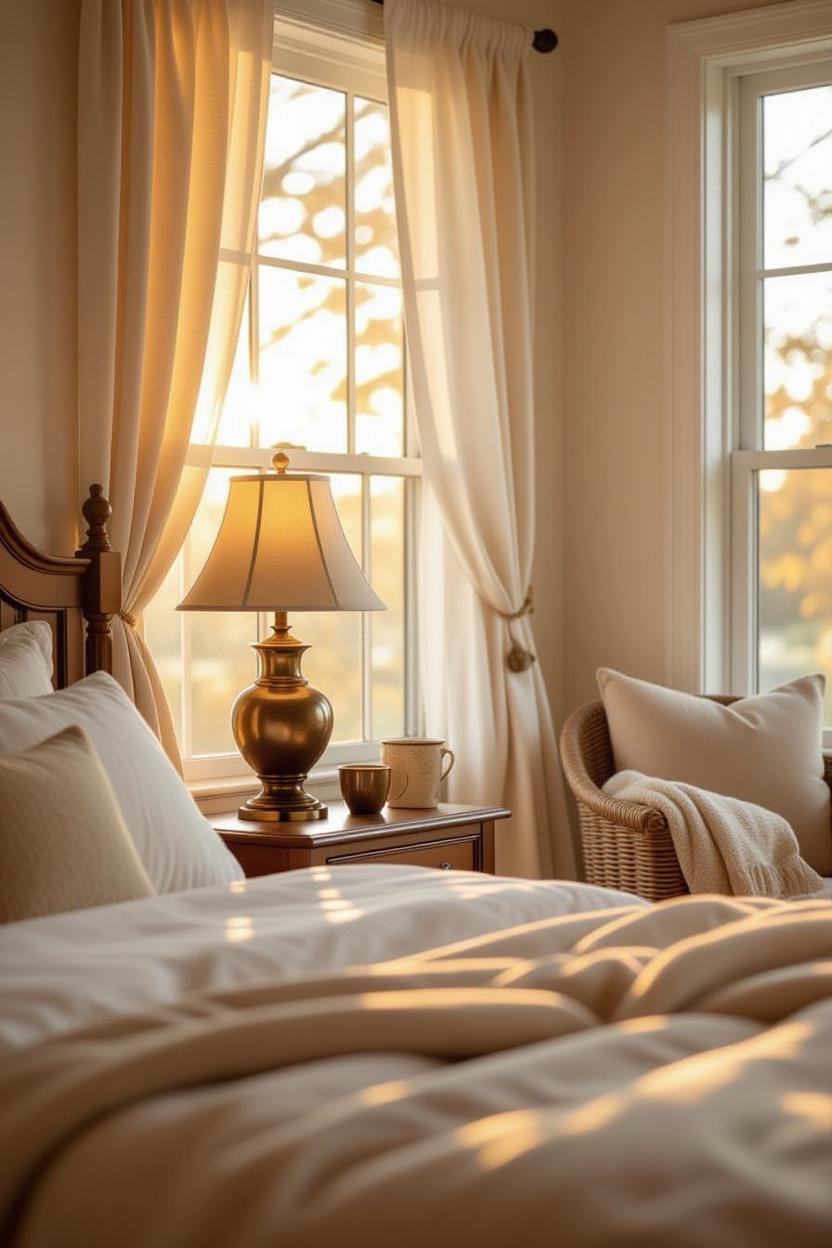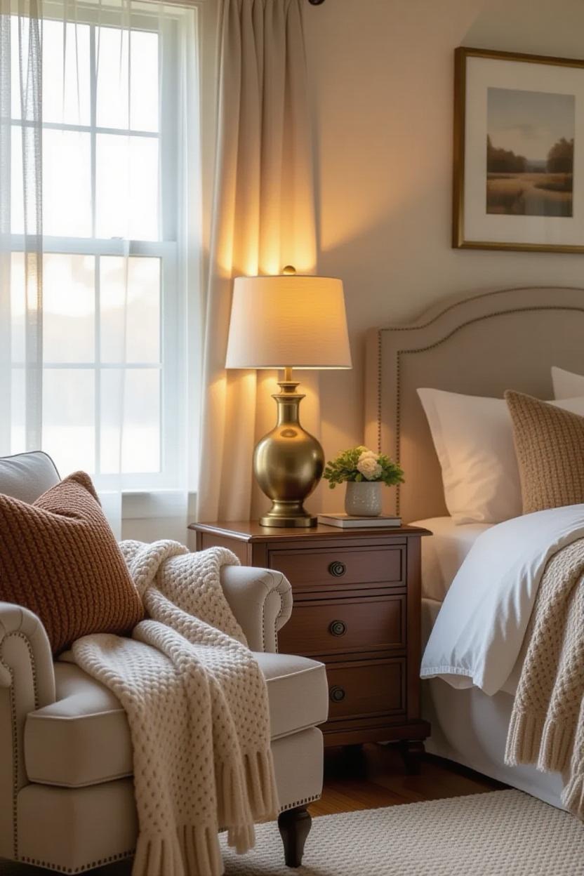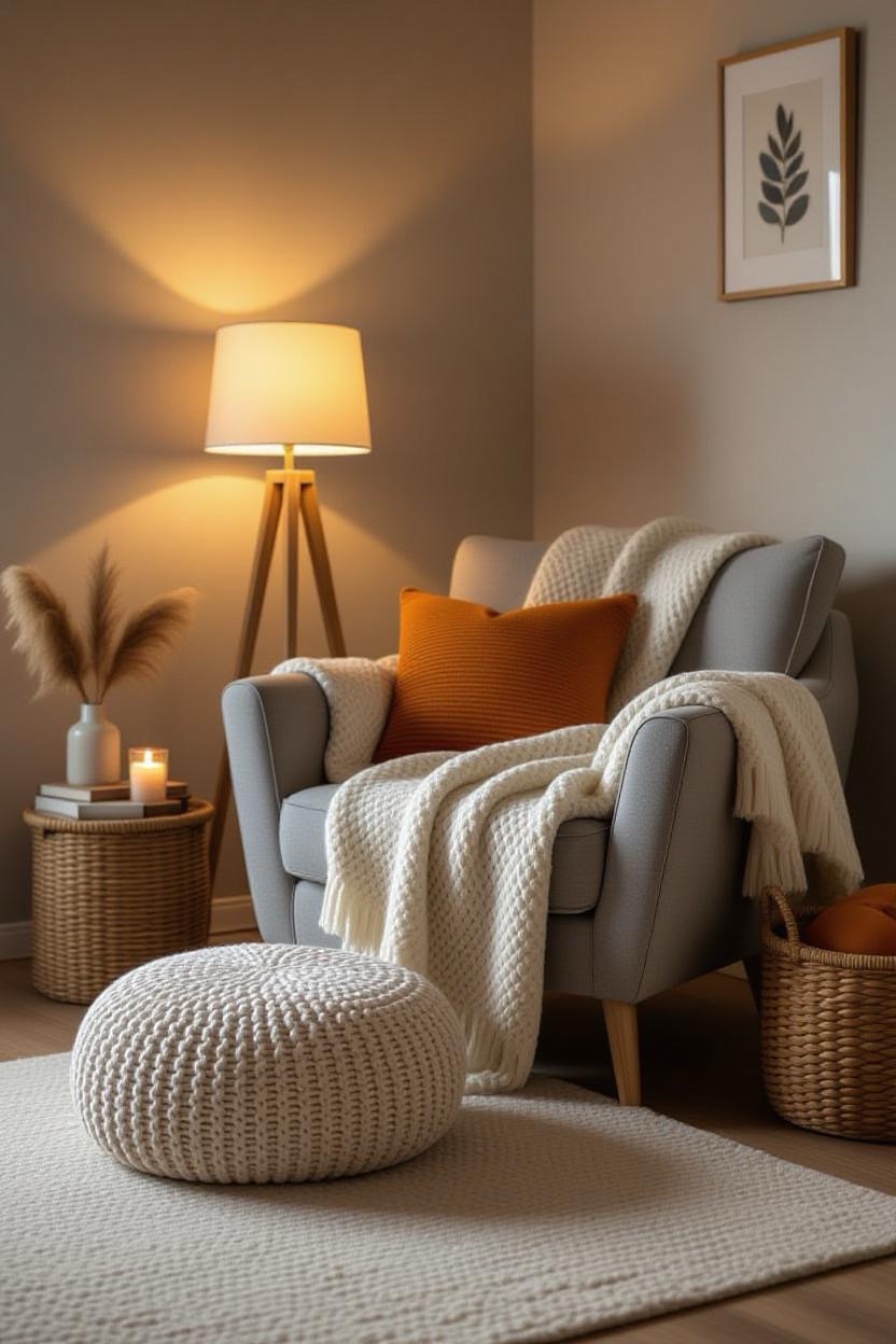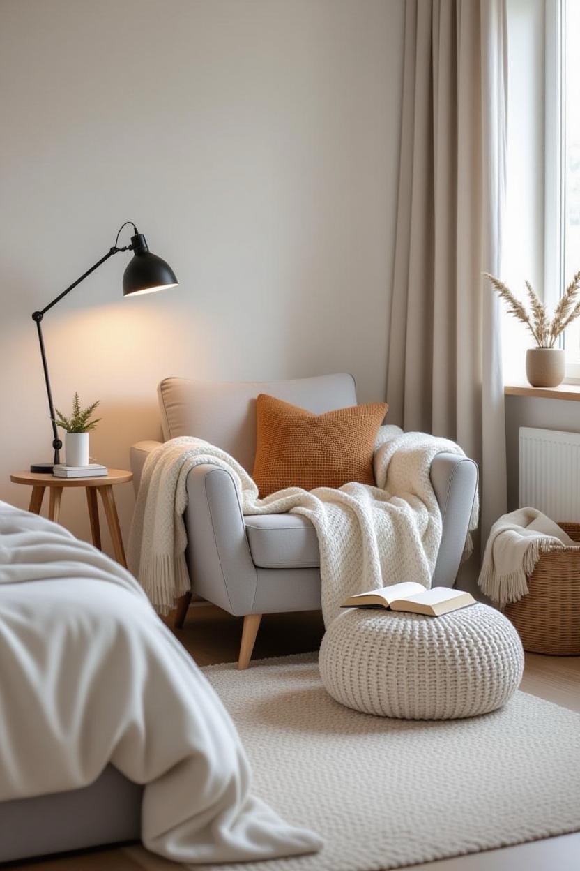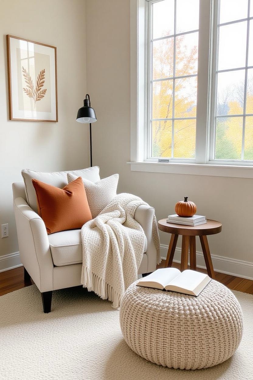 Add a comfy chair or pouf, a soft blanket, and a small reading lamp to carve out a cozy nook for fall reading or journaling. It turns your bedroom into a true sanctuary.