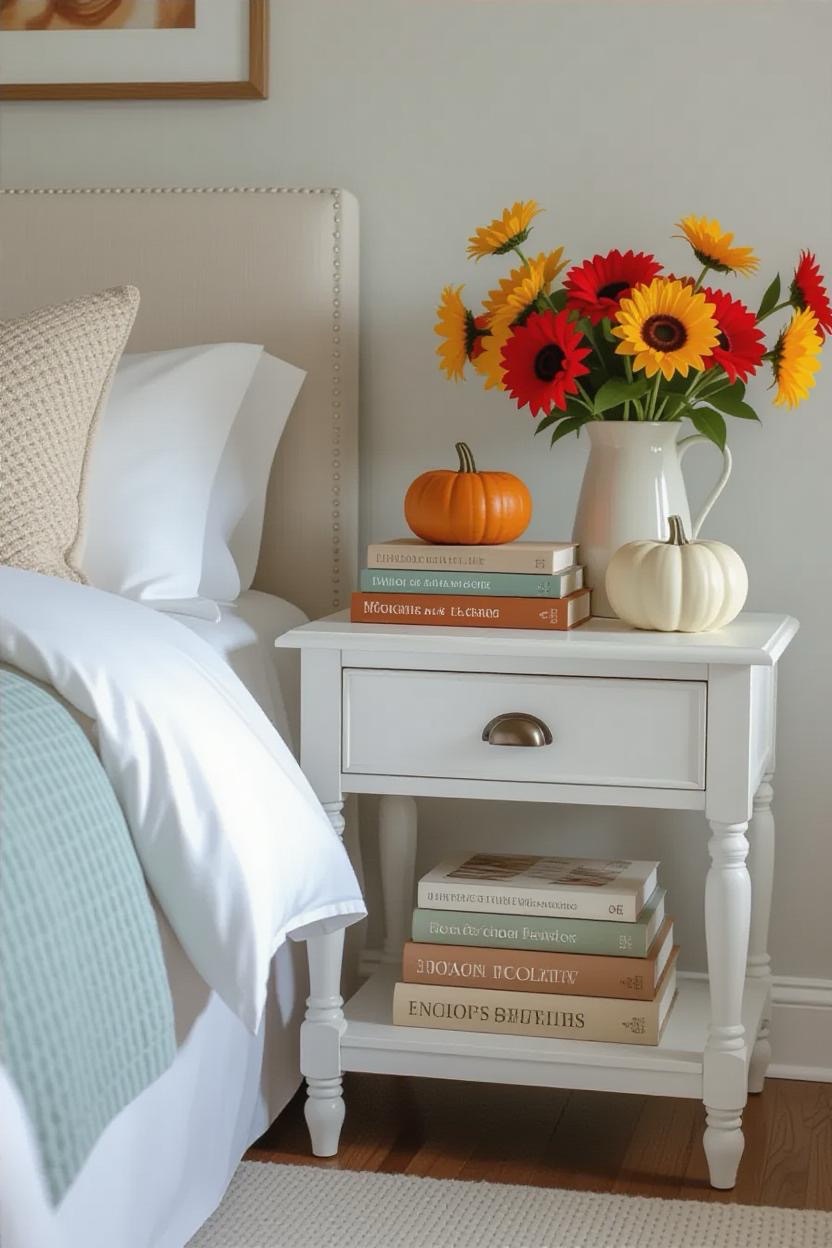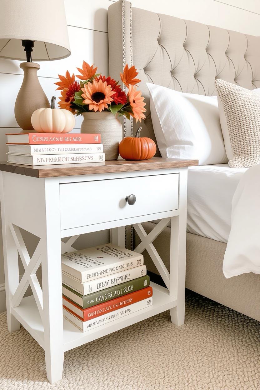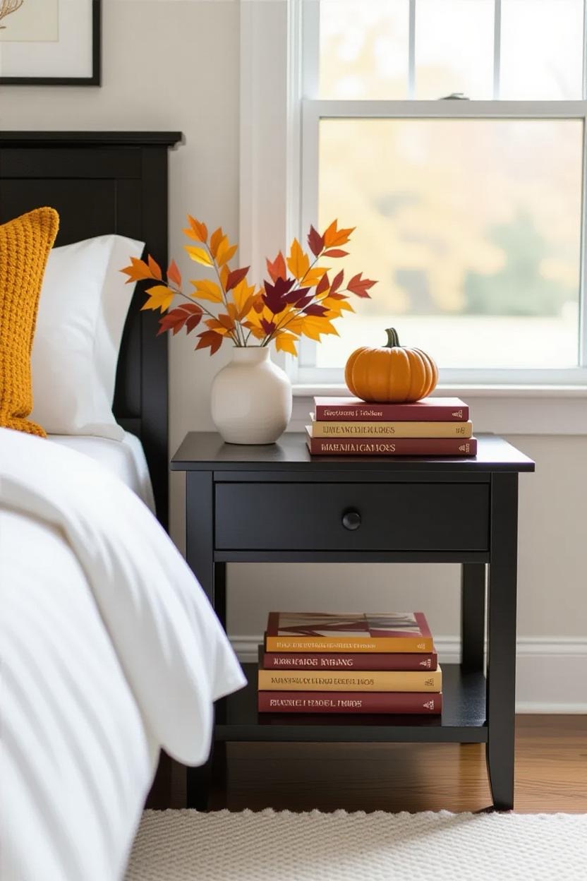 Stack a few fall-themed books on your nightstand or shelves. Choose covers with seasonal colors or cozy themes for an added aesthetic boost.