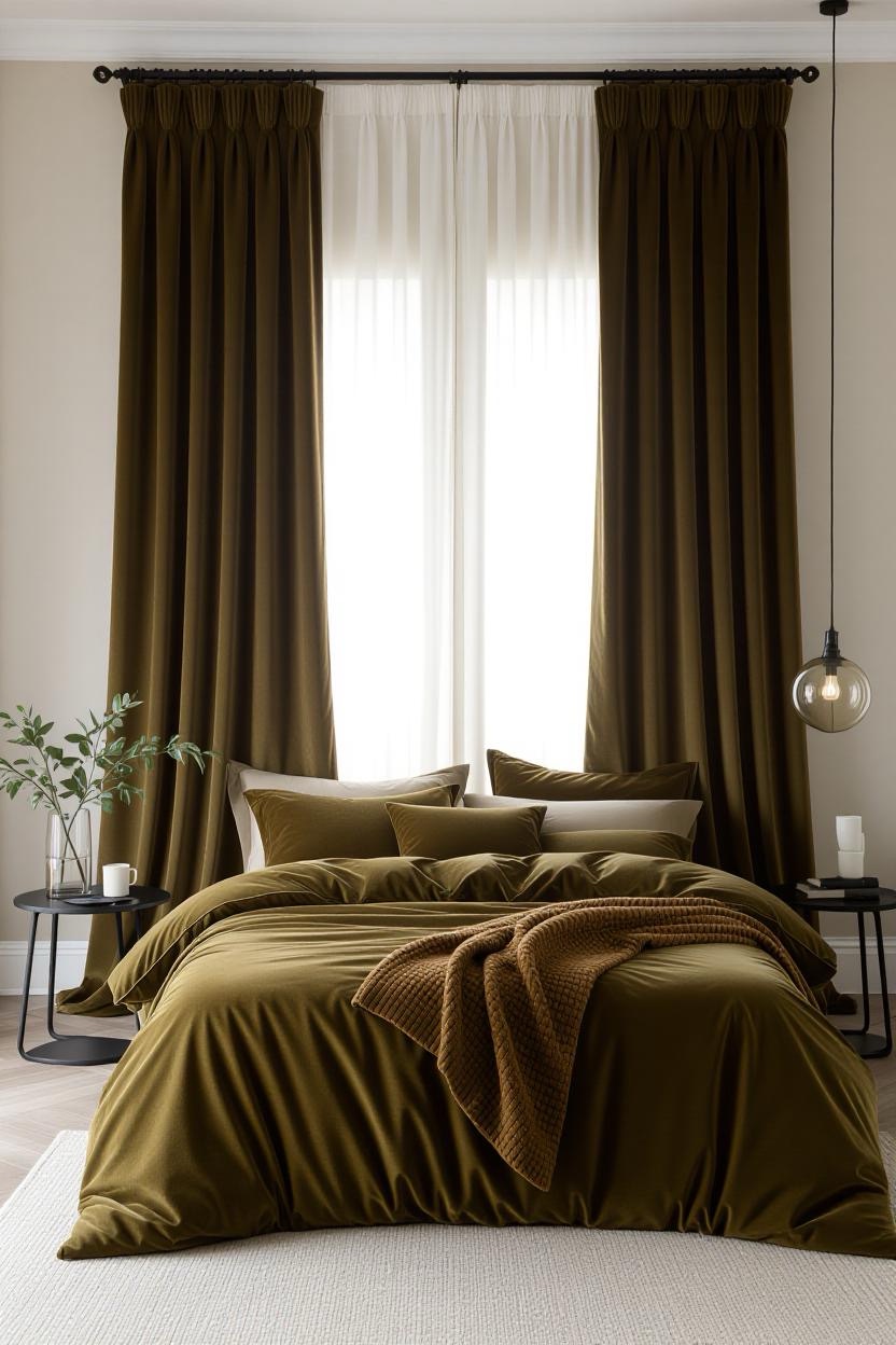 Switch out light, sheer curtains for heavier drapes in darker fall hues. Not only do they help insulate your room, but they also create a moody, cocoon-like atmosphere.