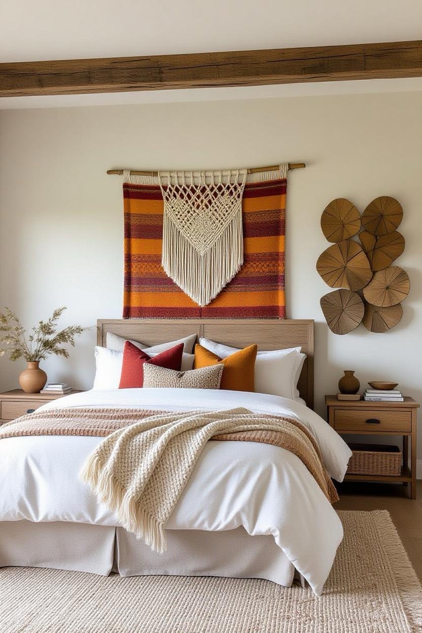 Macramé, woven tapestries, or even rustic wood art can warm up your walls. Look for pieces in autumn colors or raw textures for maximum fall impact.