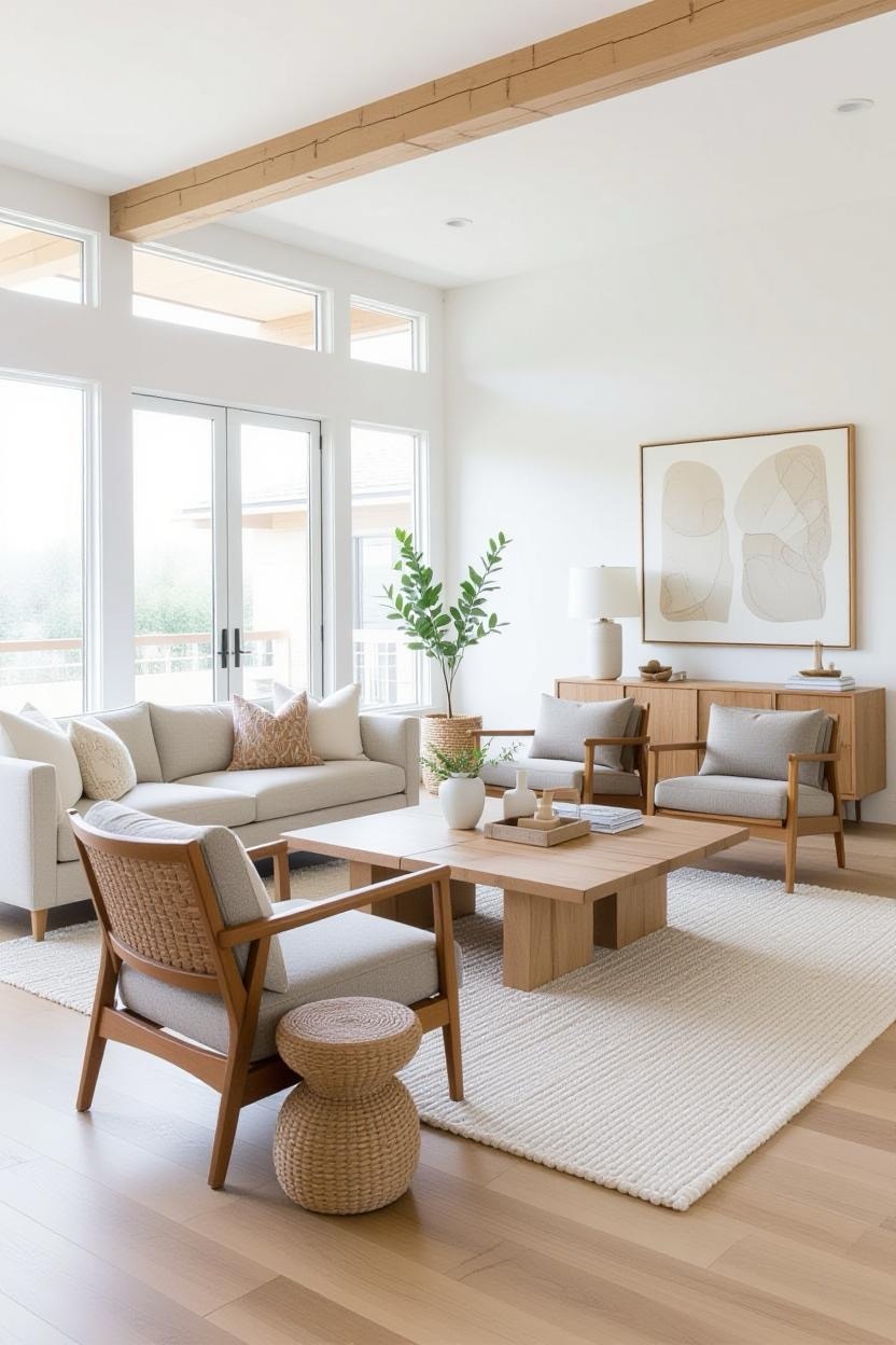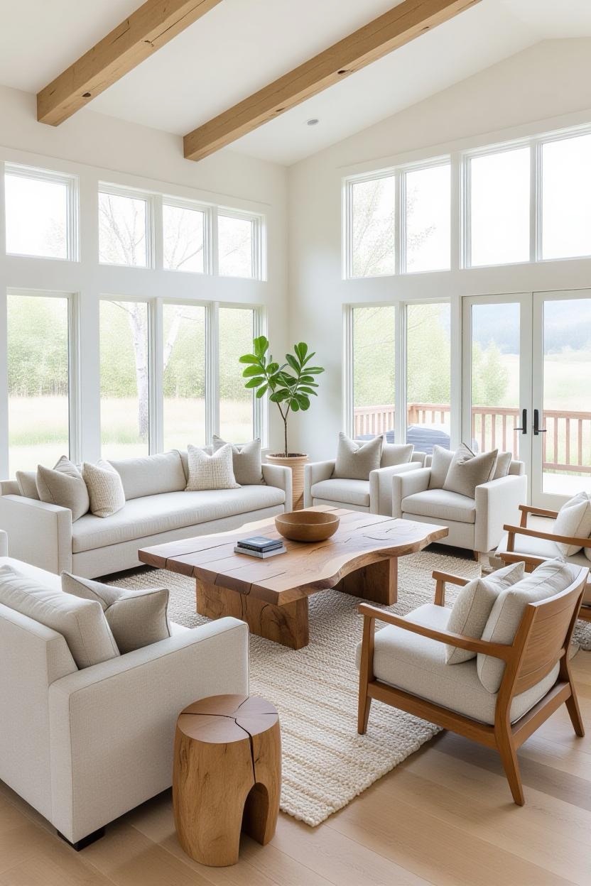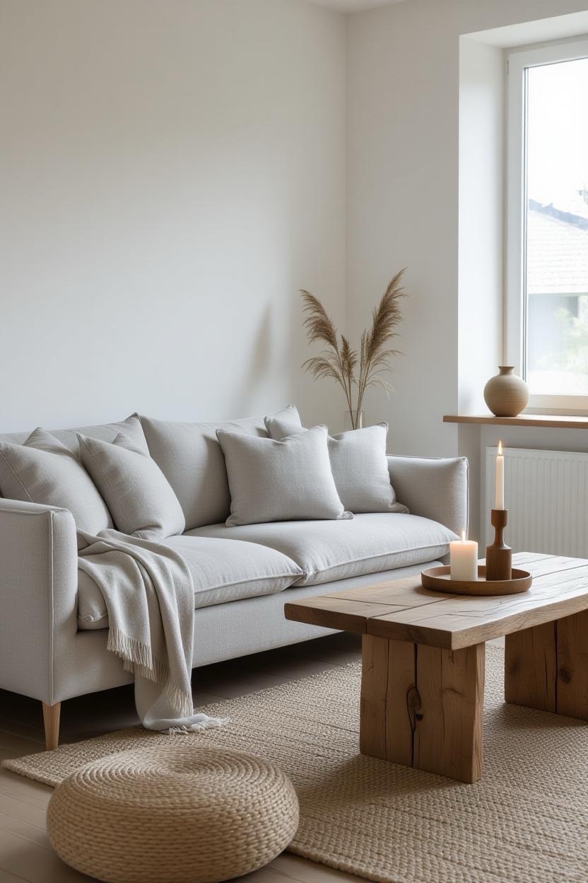 Choose sofas and chairs in soft, natural fabrics like linen or cotton. Light upholstery enhances the organic vibe and pairs beautifully with textured accents.