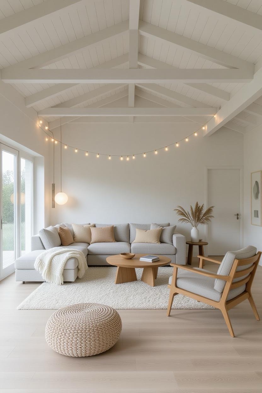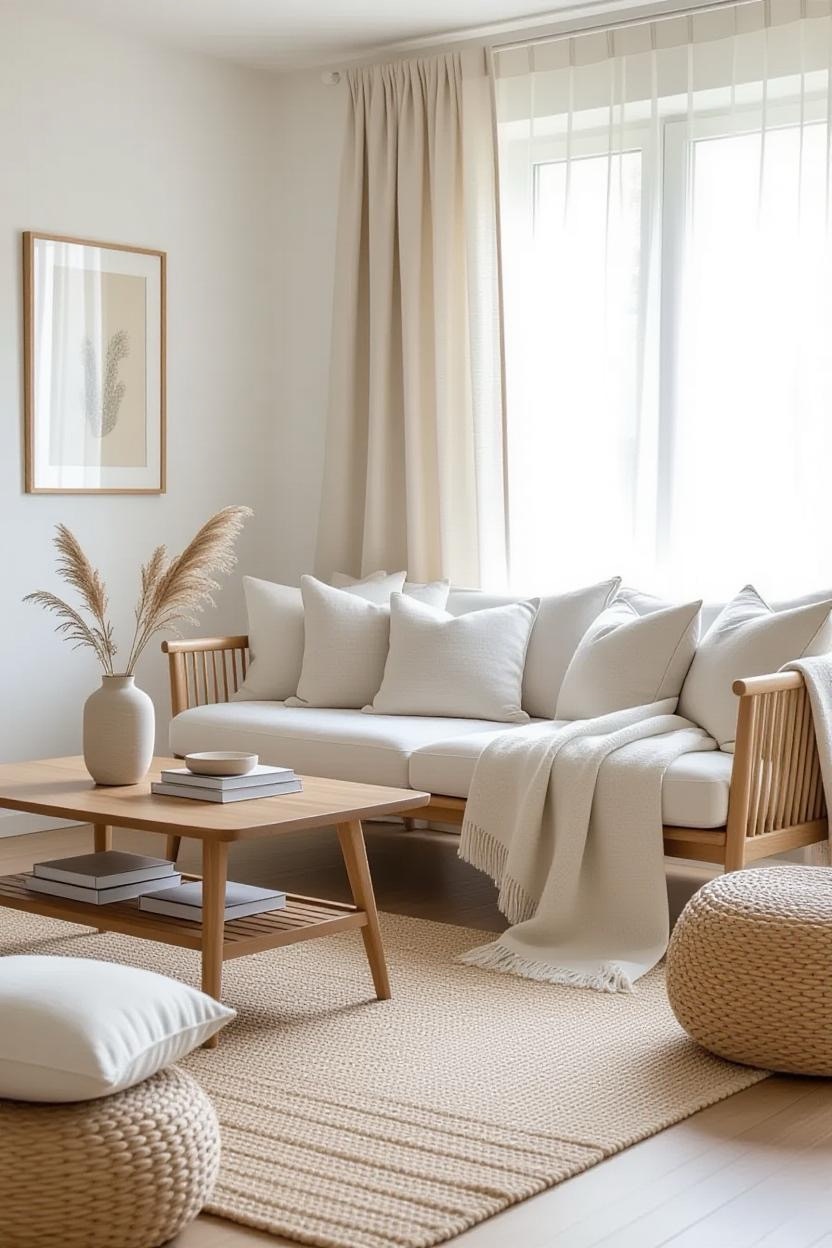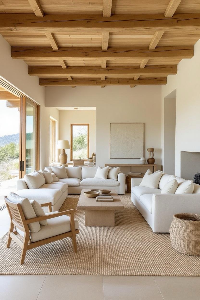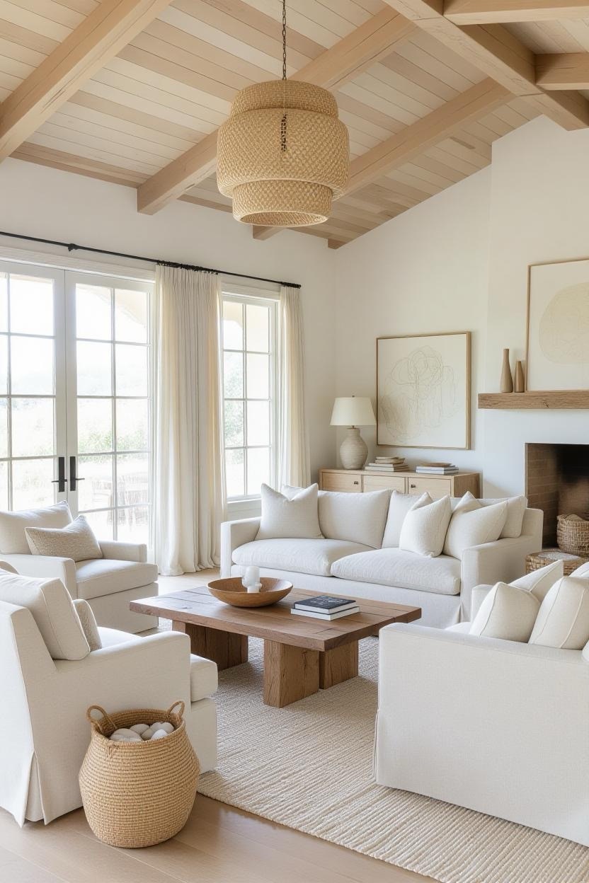 Choose sofas and chairs in soft, natural fabrics like linen or cotton. Light upholstery enhances the organic vibe and pairs beautifully with textured accents.