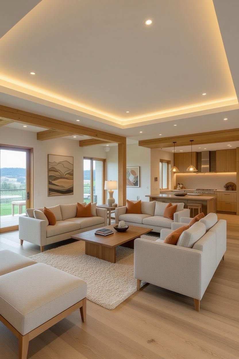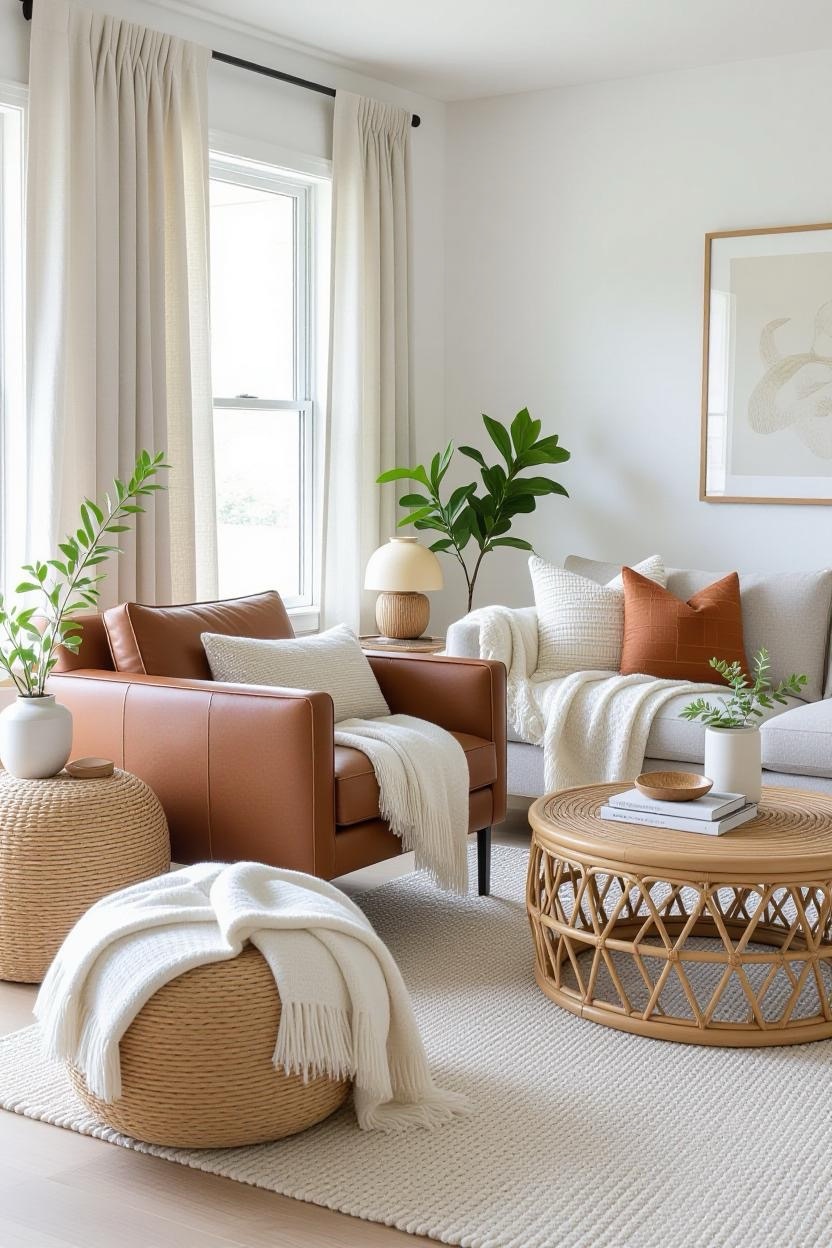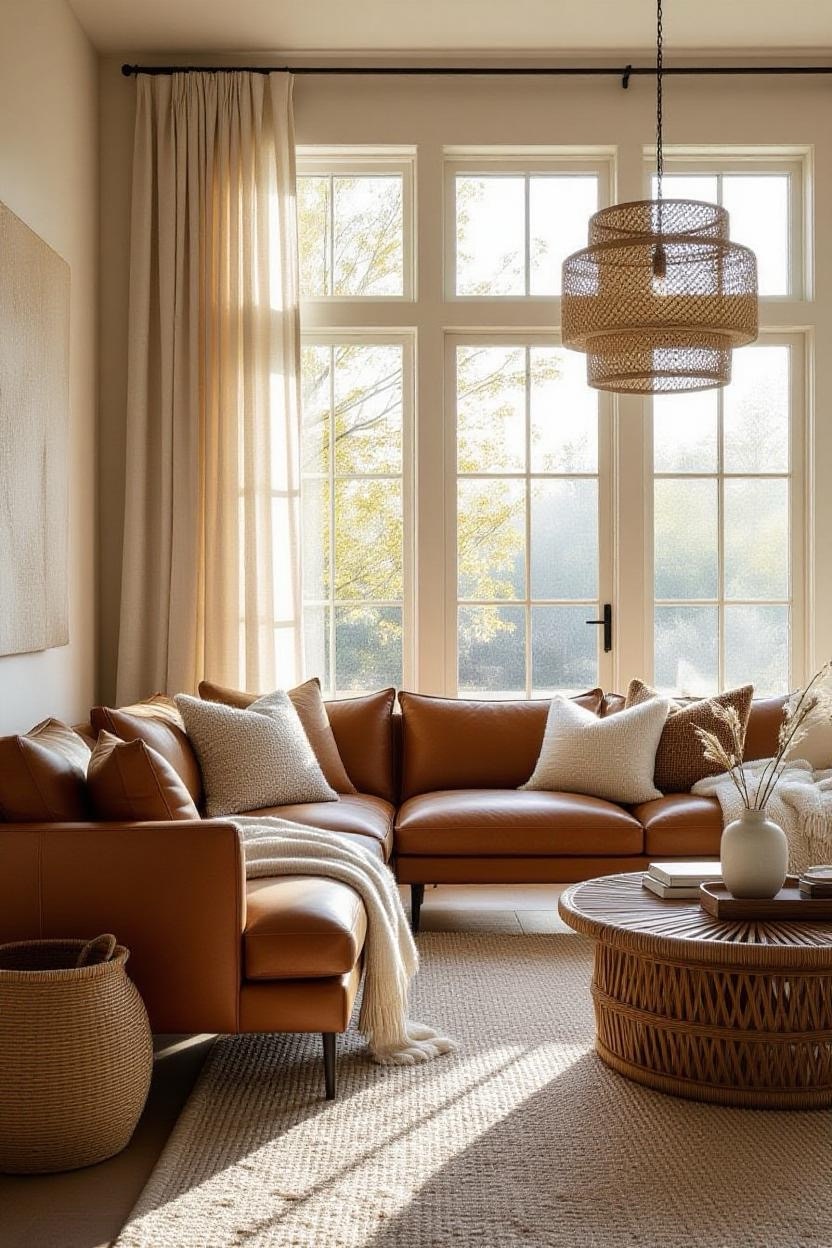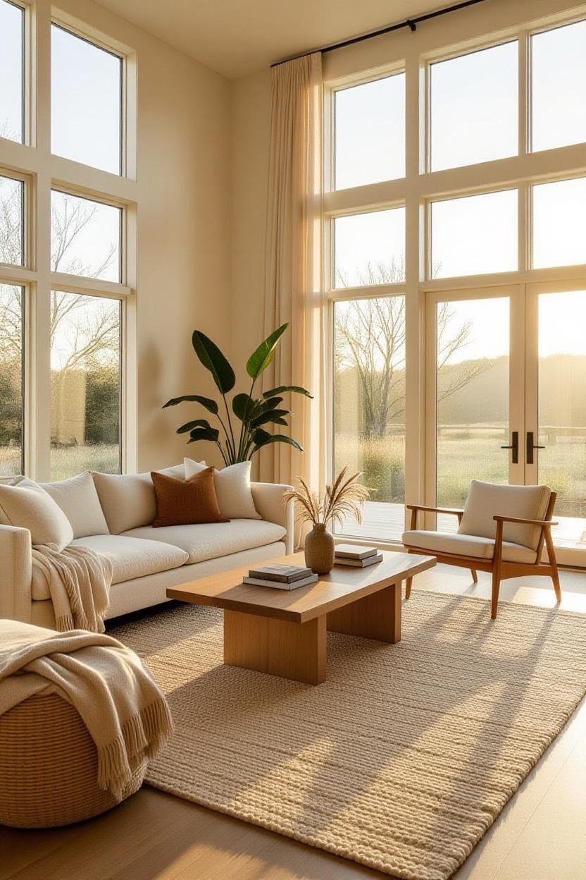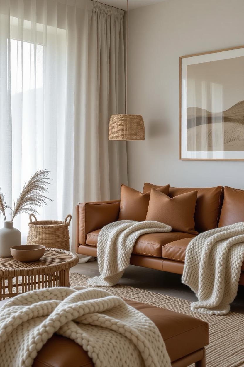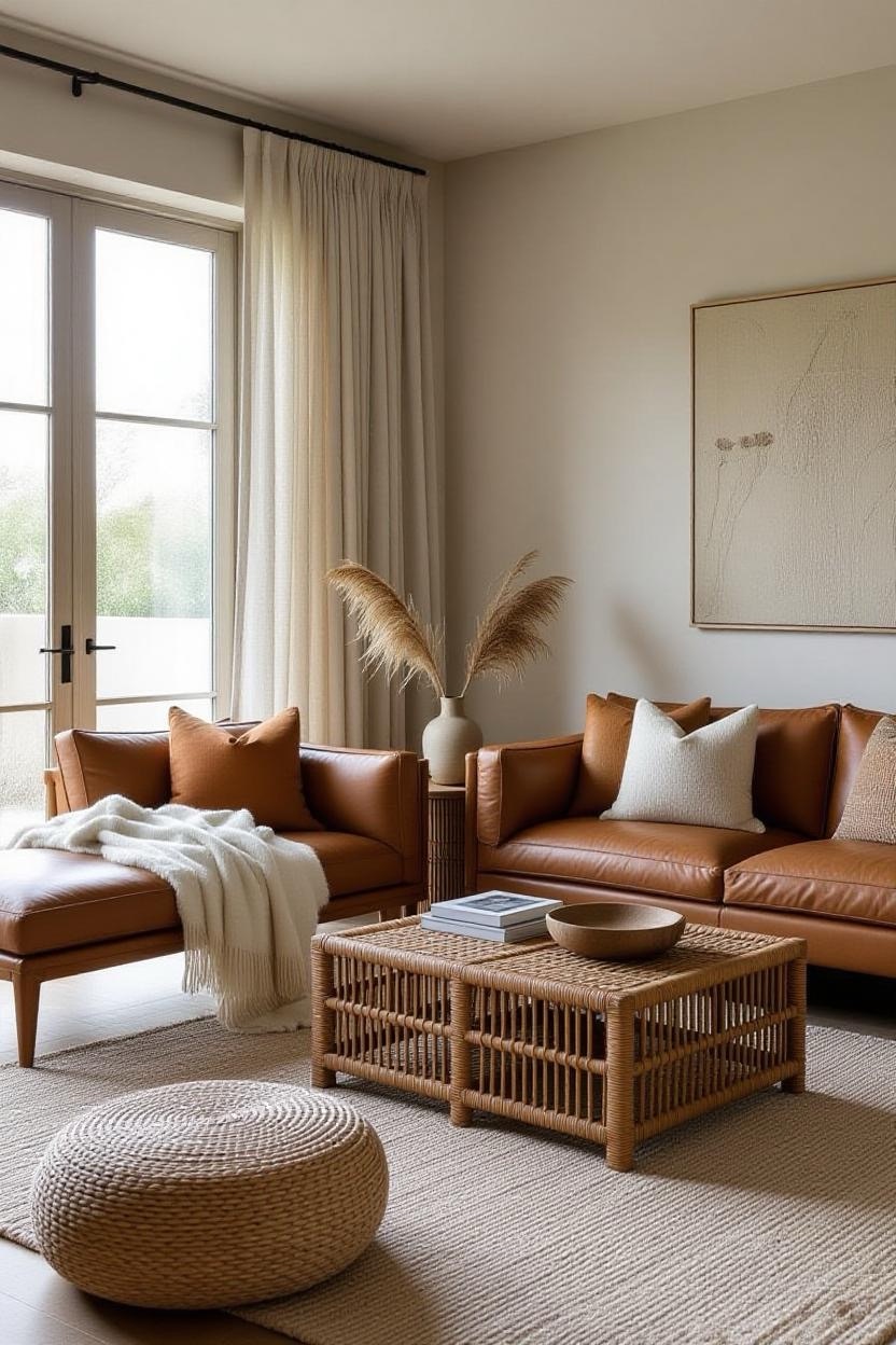 Mix textures like linen curtains, leather cushions, wool throws, and rattan accents. This creates depth and prevents the modern look from feeling cold.
