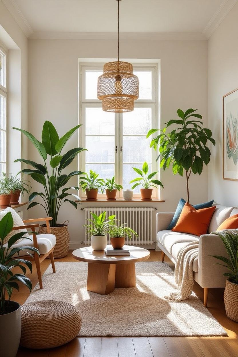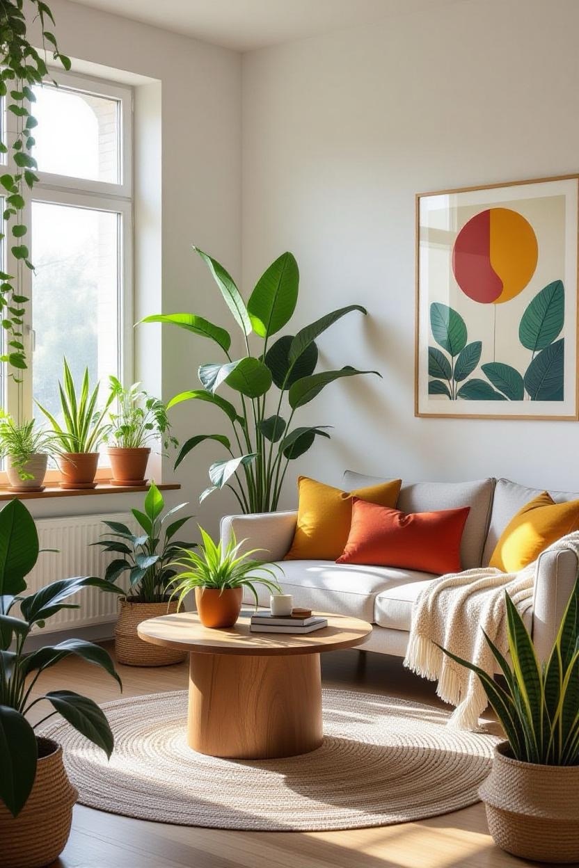 Bring life into the room with potted plants or indoor trees. Plants not only purify the air but also add vibrant color and organic texture to the design.