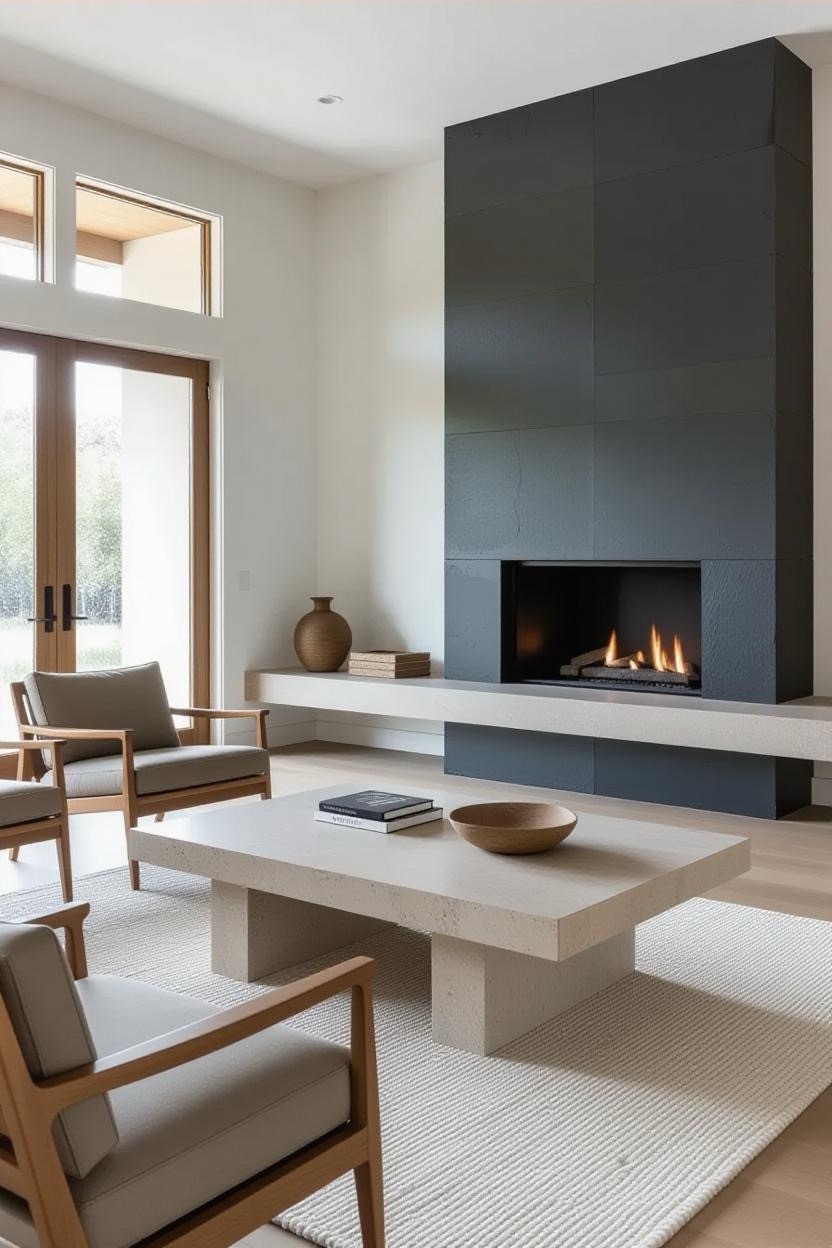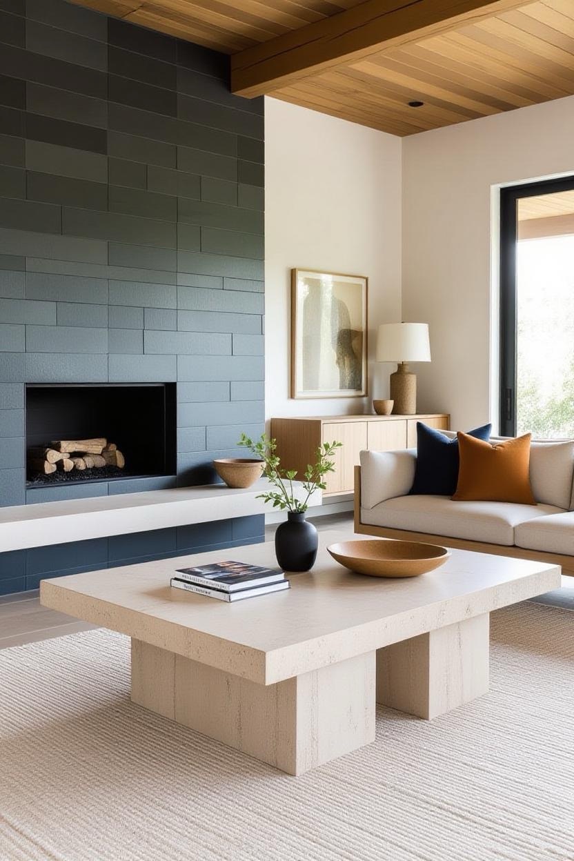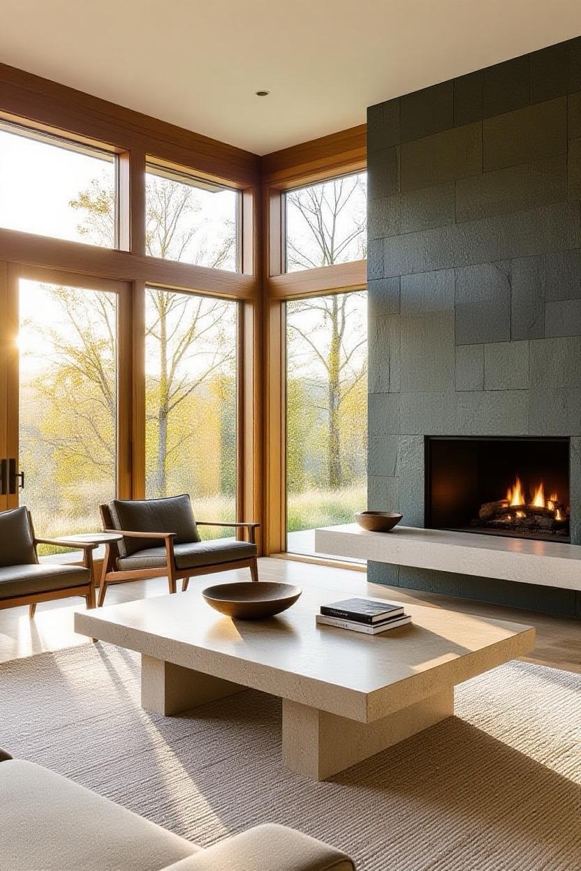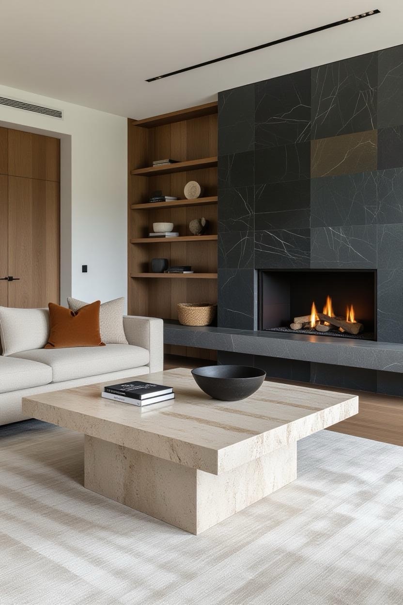 Use stone in subtle ways, such as a travertine coffee table or a slate accent wall. These natural materials balance the warmth of wood with a cool, modern edge.