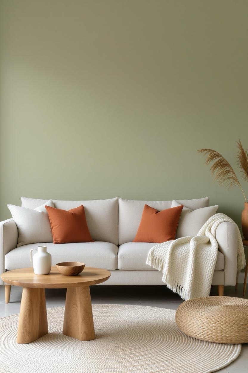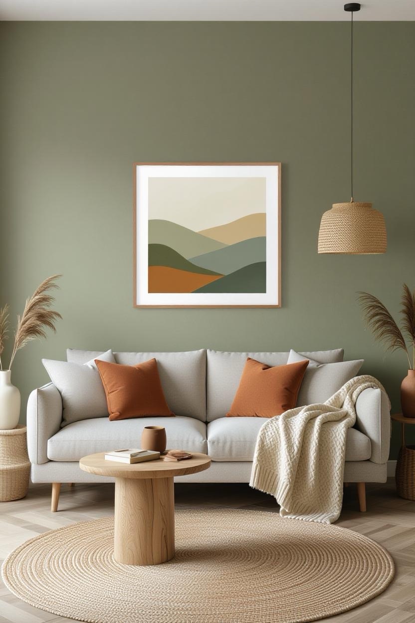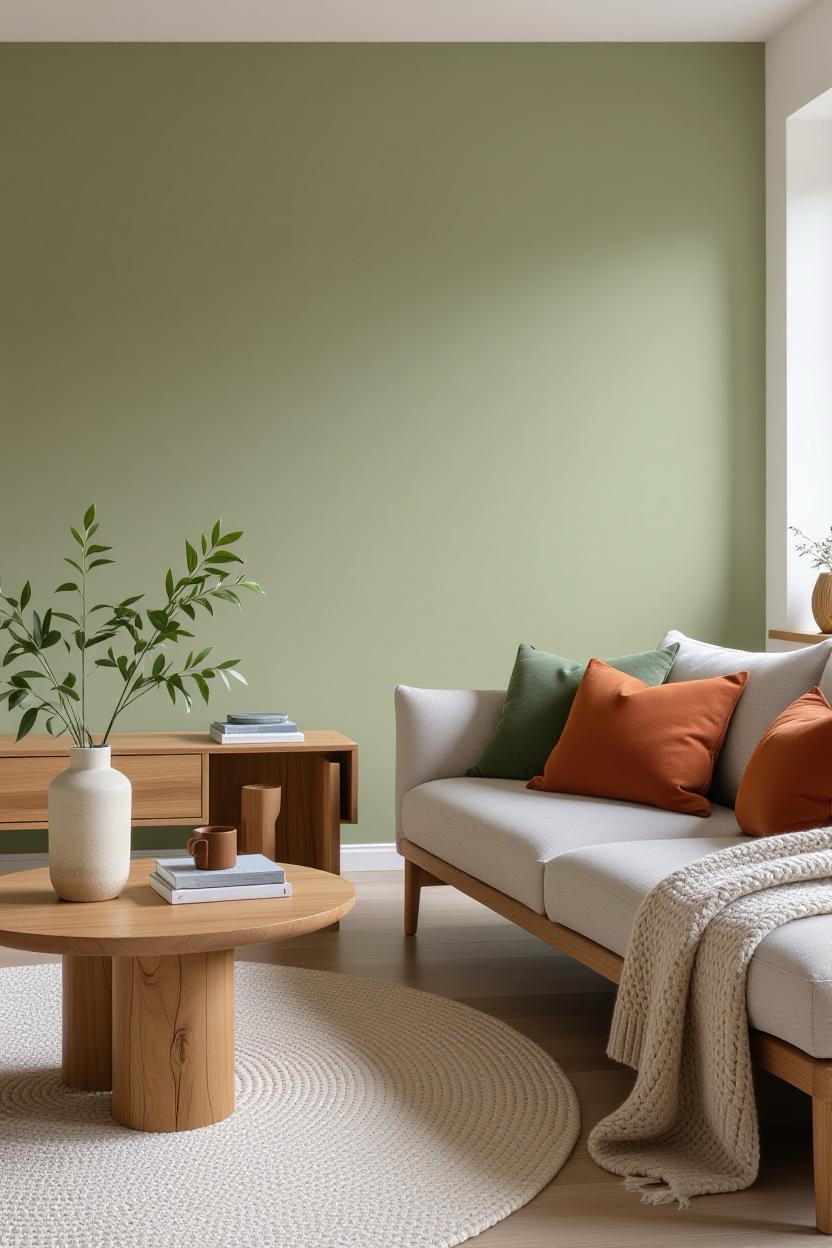Paint one wall in a muted clay, sage, or olive shade. These colors bring in nature-inspired warmth without overpowering the minimalist design.