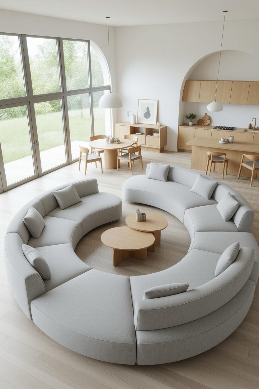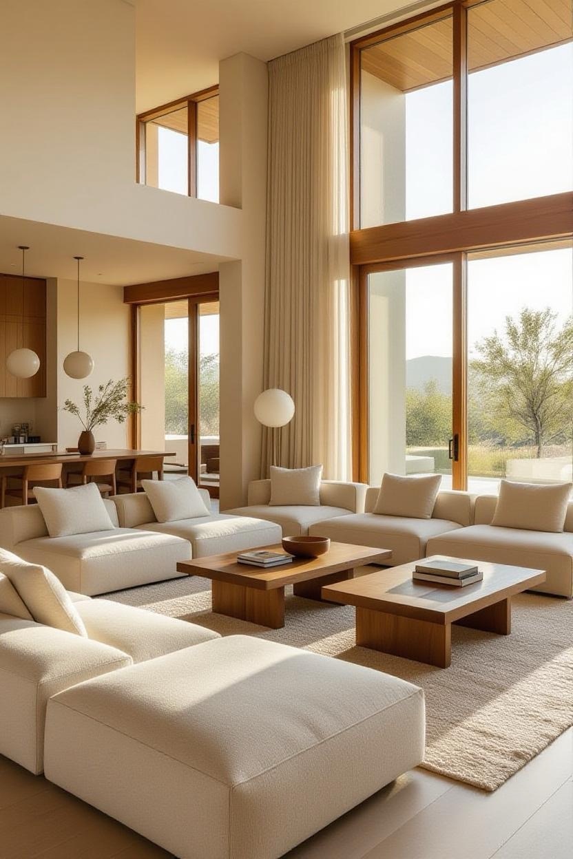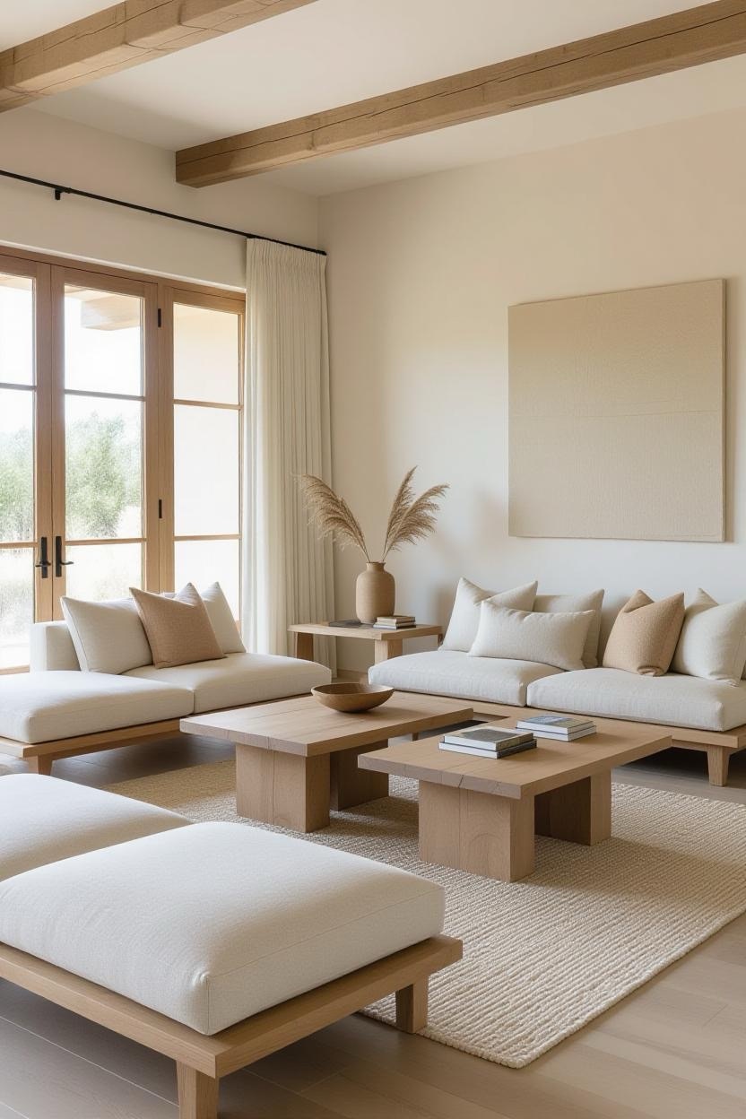 Opt for low sofas and coffee tables to create a grounded, relaxed atmosphere. This design choice emphasizes comfort and simplicity.