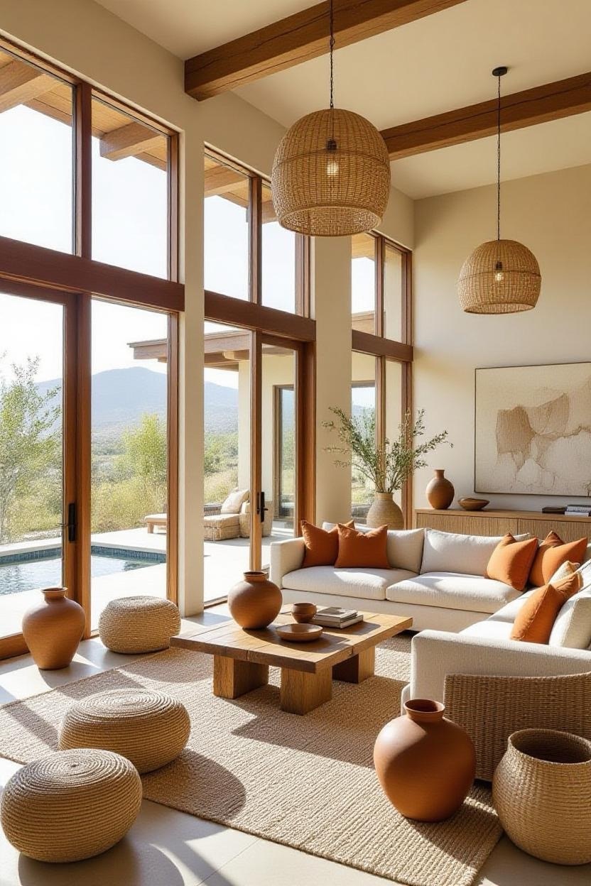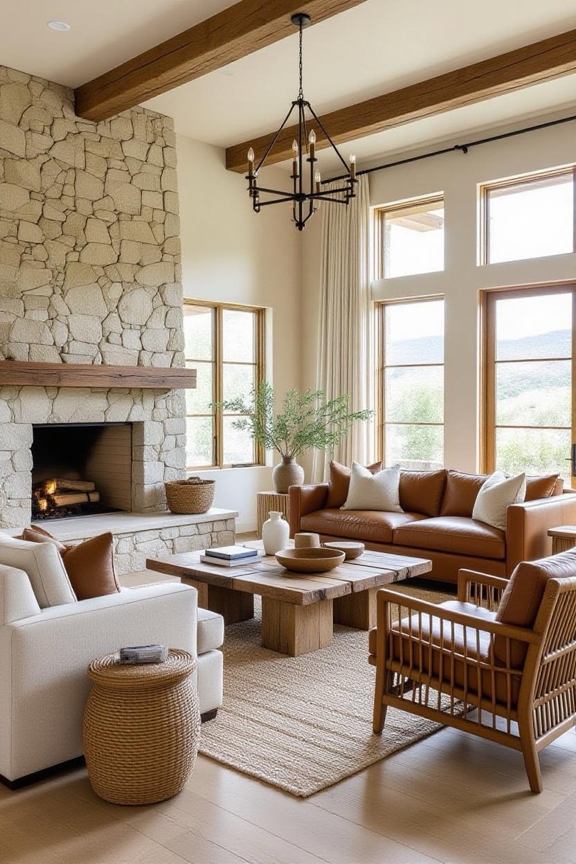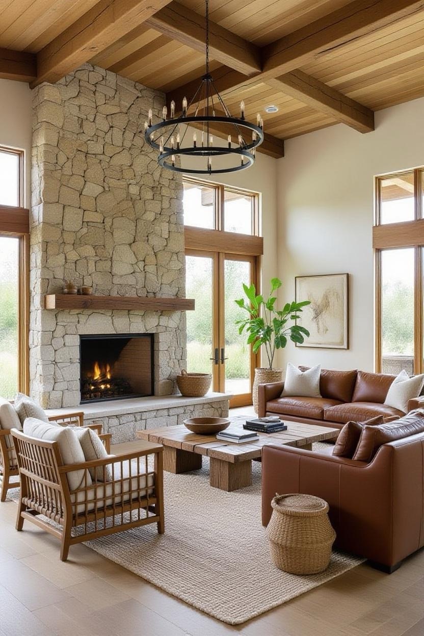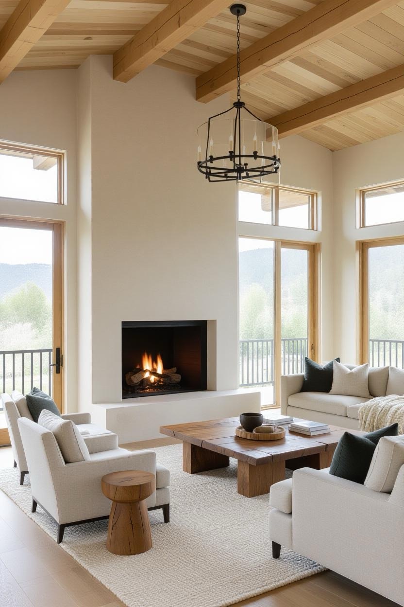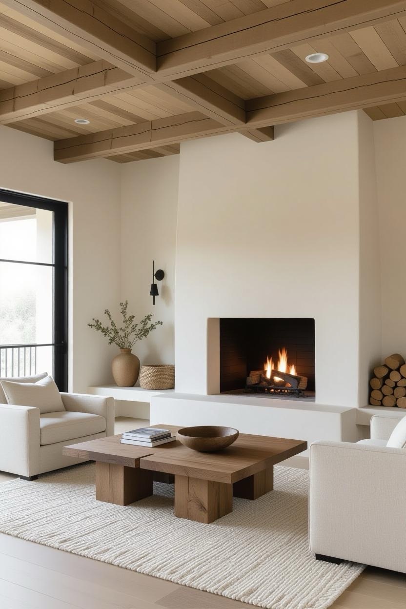 If possible, include a fireplace with a stone or plaster finish. It creates a warm, grounding focal point while enhancing the organic aesthetic.