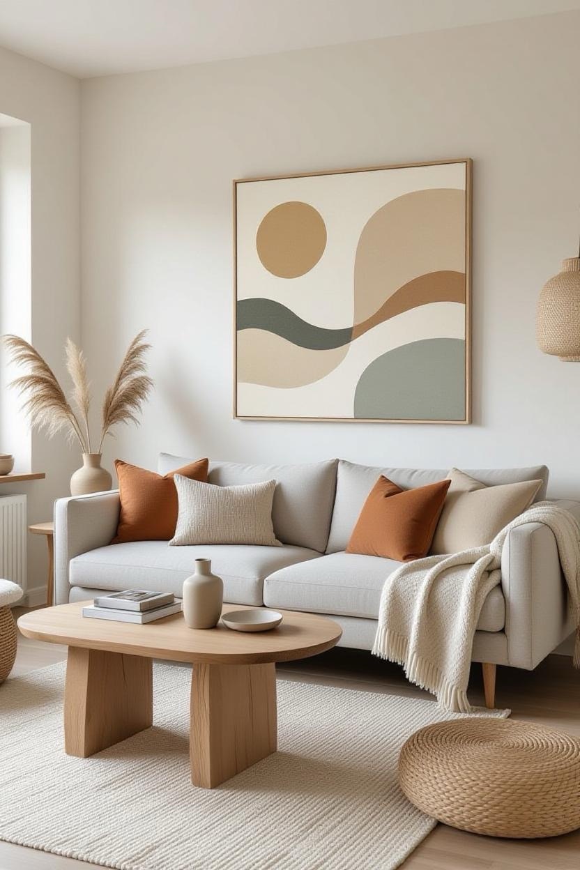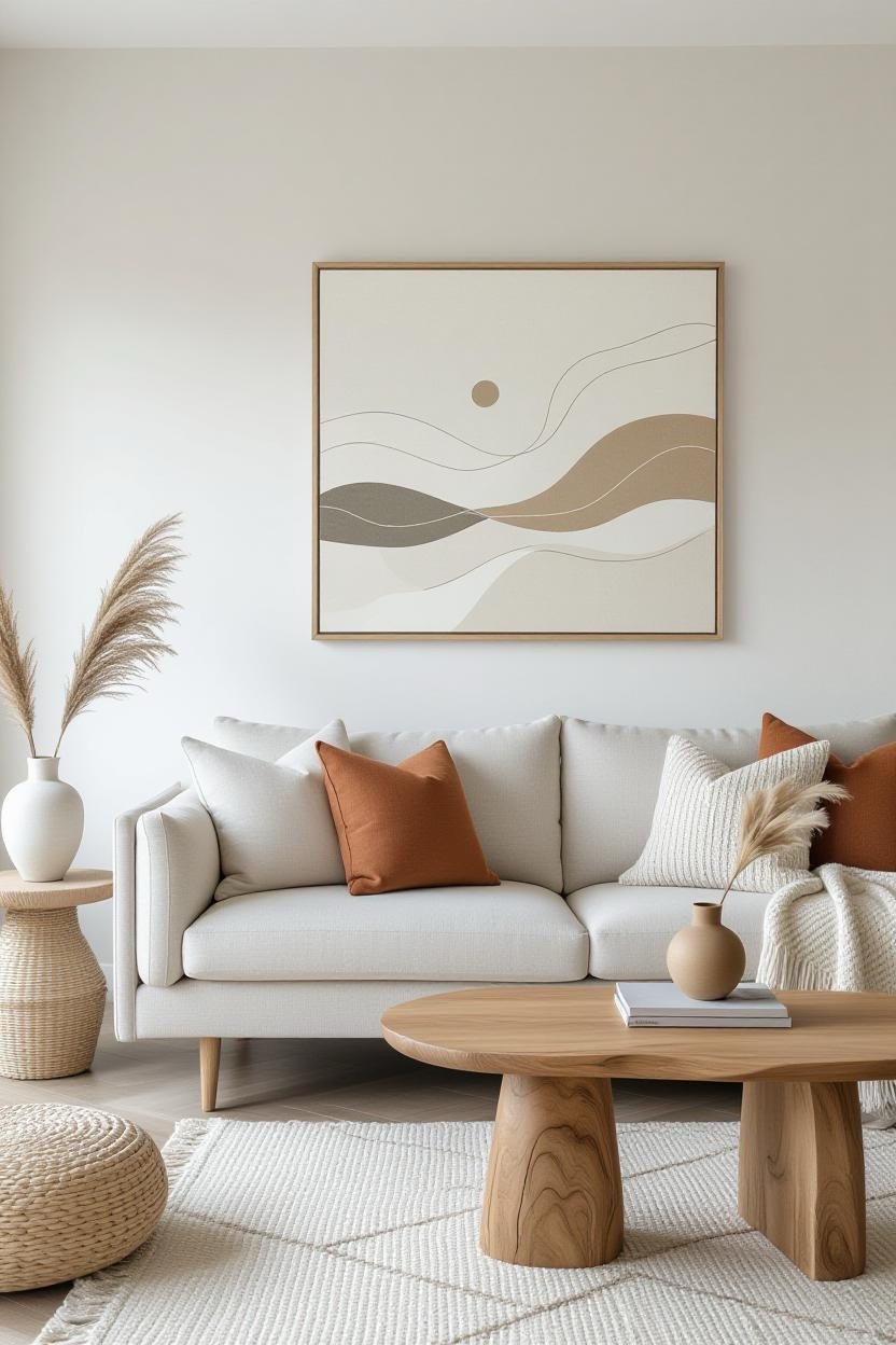 Decorate with art that features natural themes, abstract lines, or muted palettes. Art should complement rather than dominate the calming organic vibe.