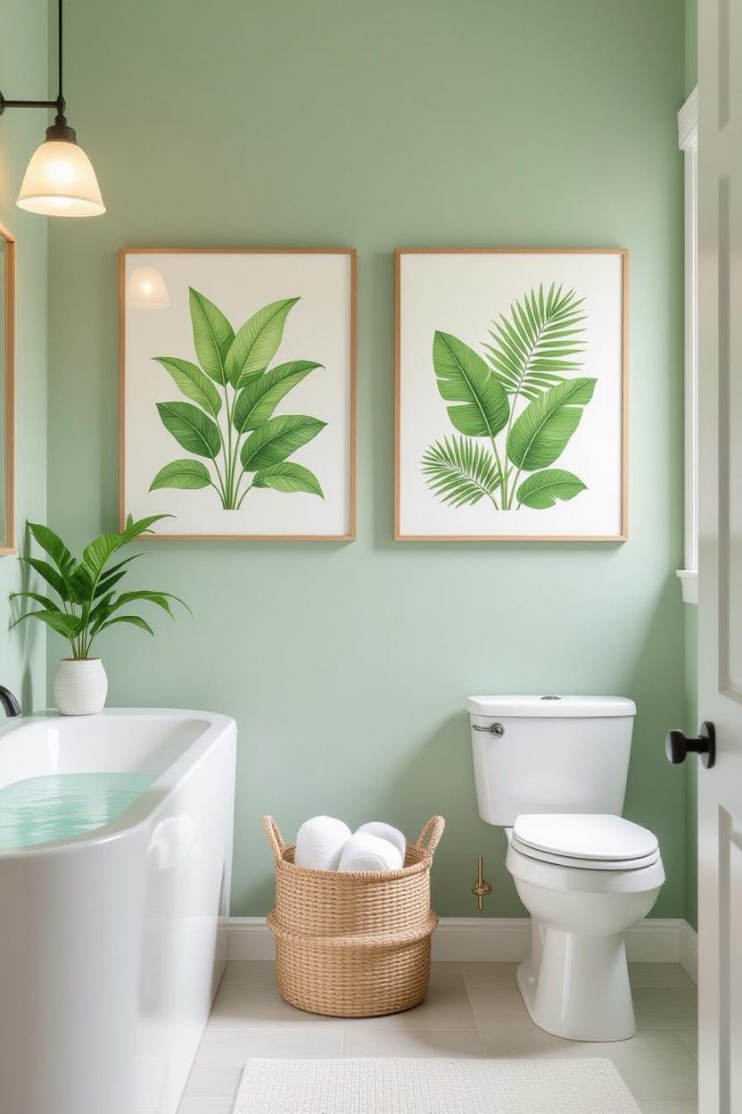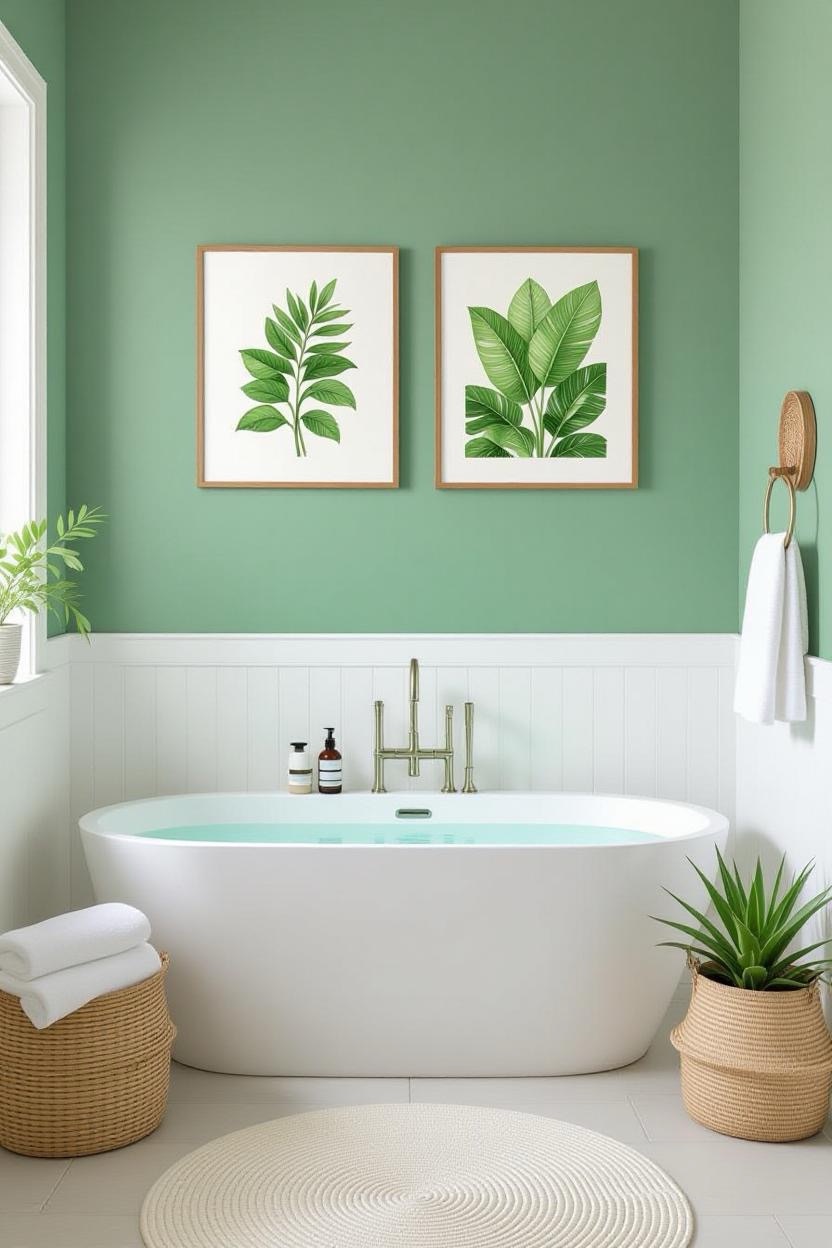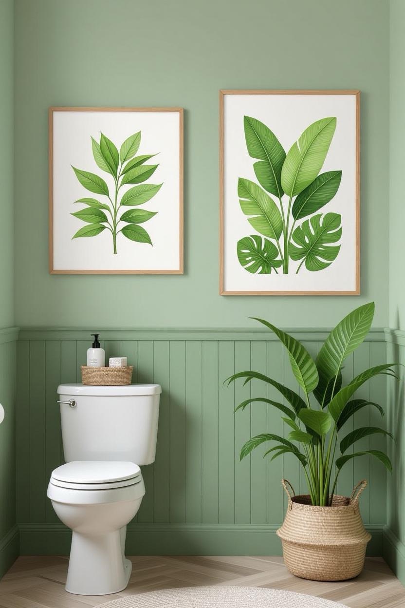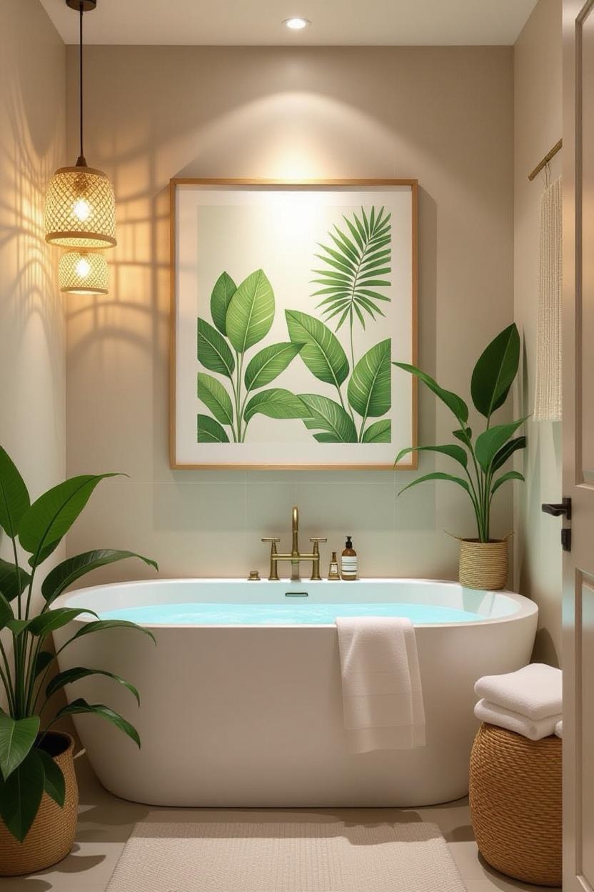Bring the serenity of nature indoors with framed botanical prints or canvas art. Soft greens, leafy patterns, or tropical illustrations work beautifully to create a calming spa-like atmosphere in your bathroom.