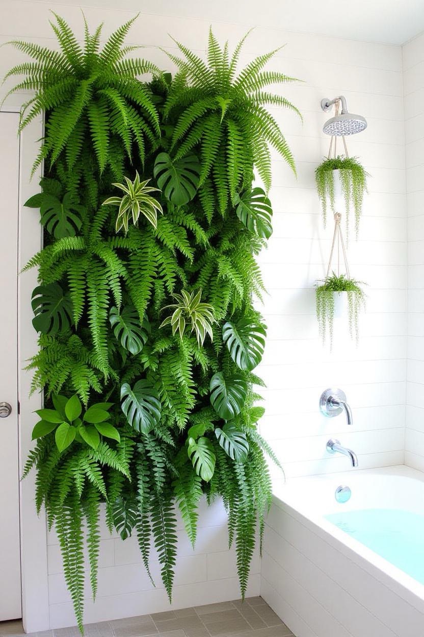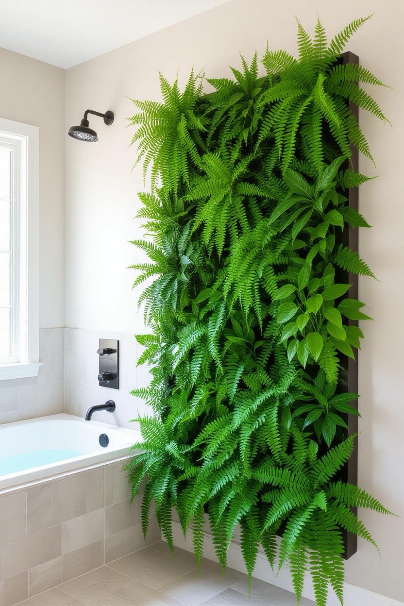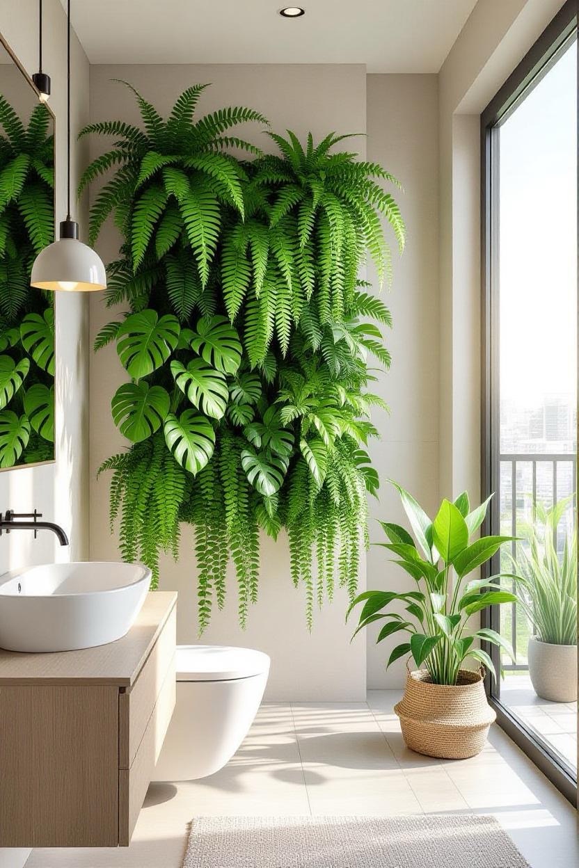 A living plant wall can breathe life into your bathroom, quite literally. Opt for low-maintenance plants like ferns, pothos, or air plants, which thrive in humid environments.