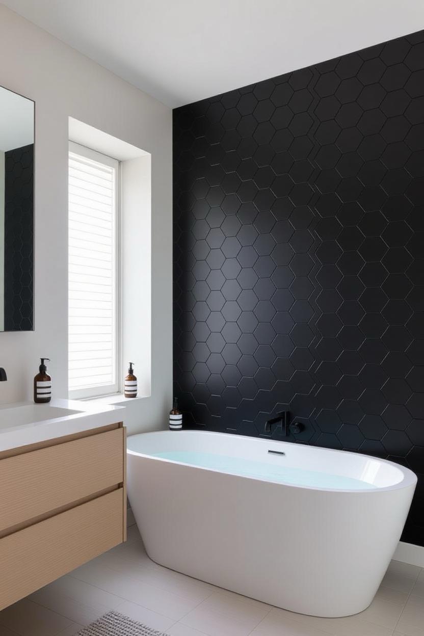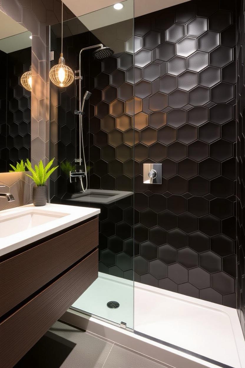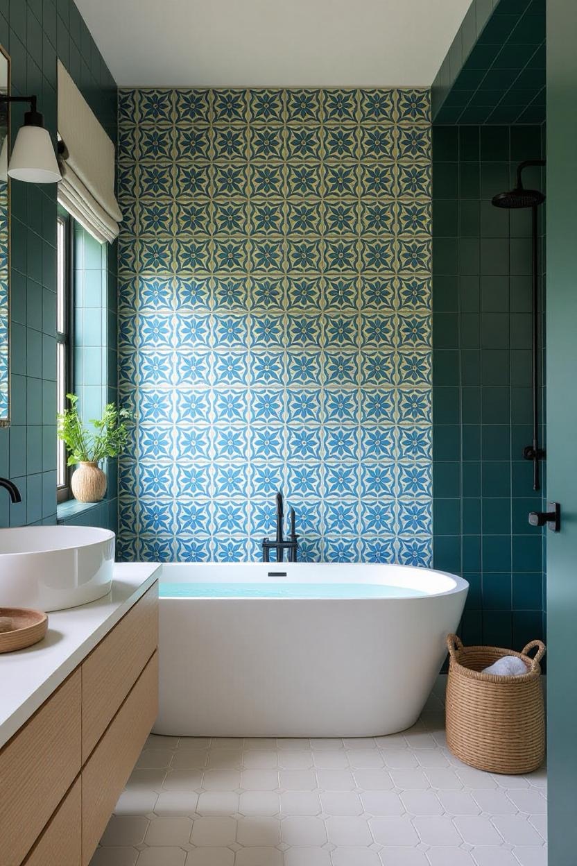 Instead of tiling the entire bathroom, create one feature wall with patterned or textured tiles. This makes a striking focal point without overwhelming the space.