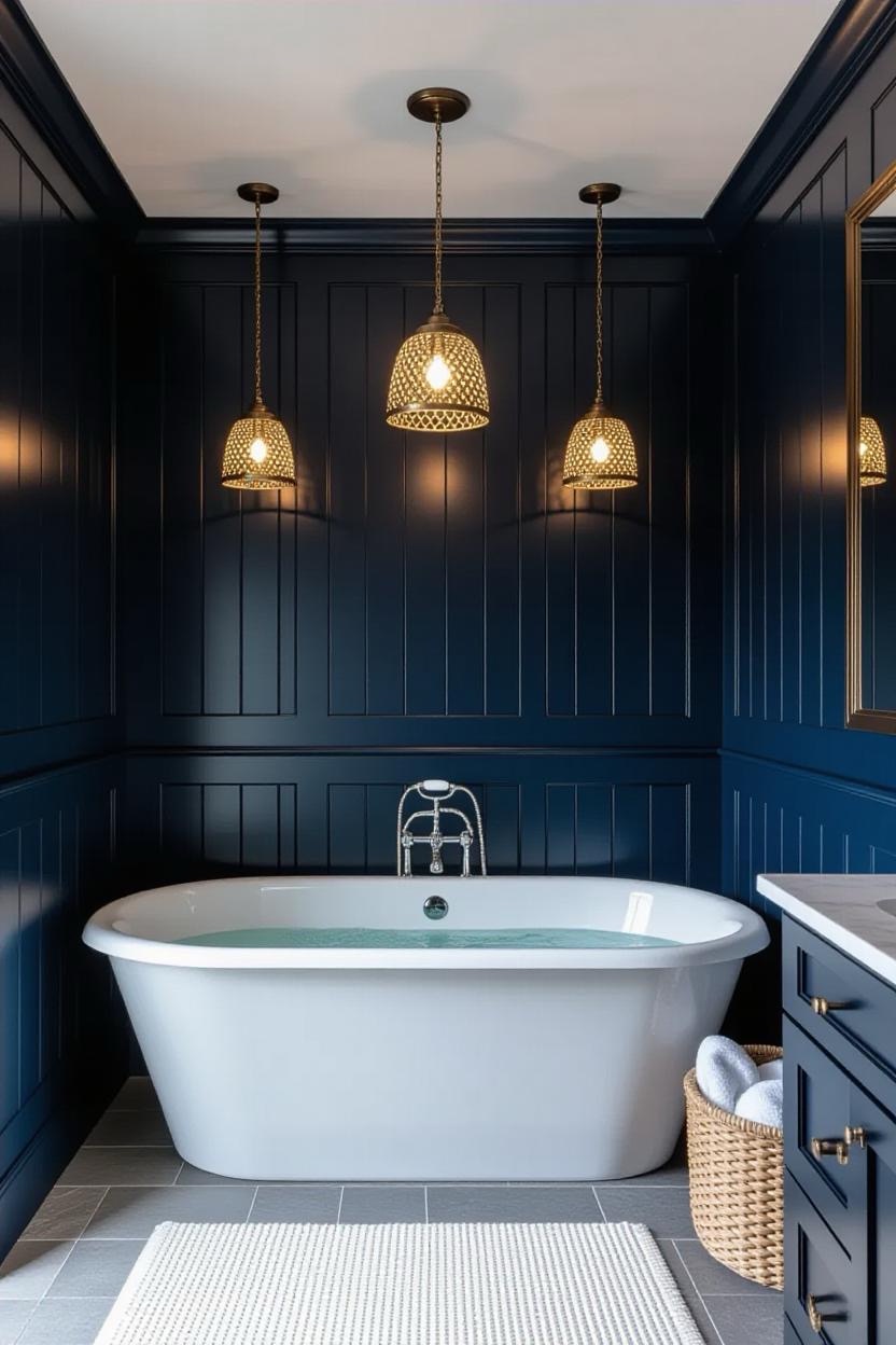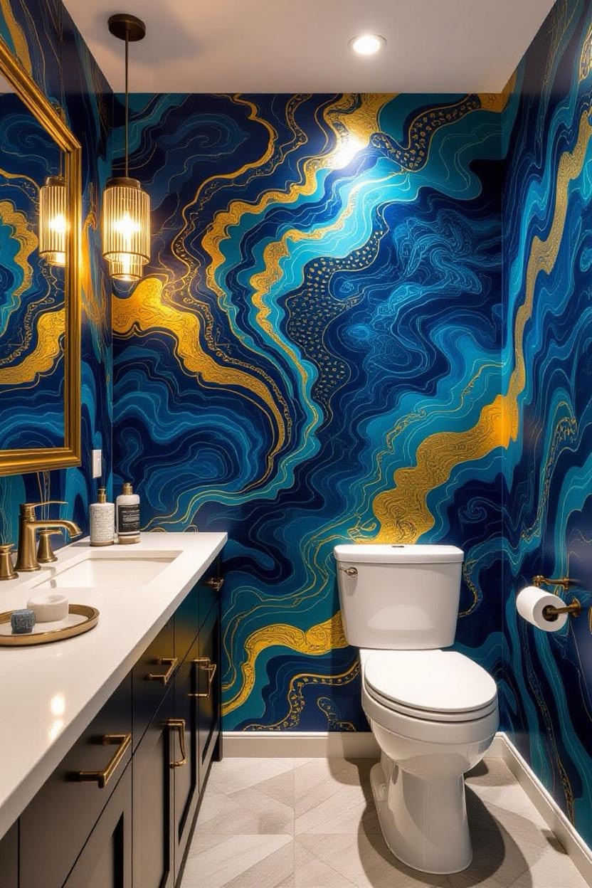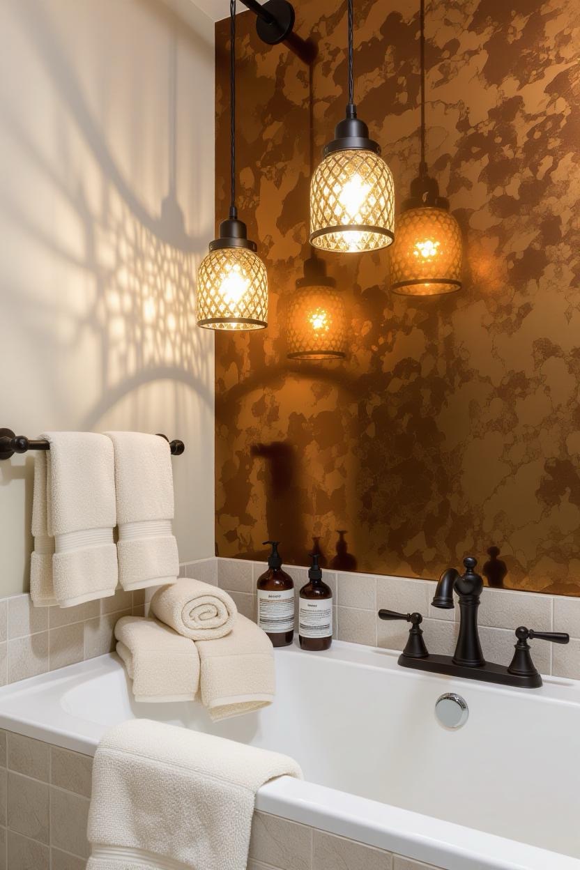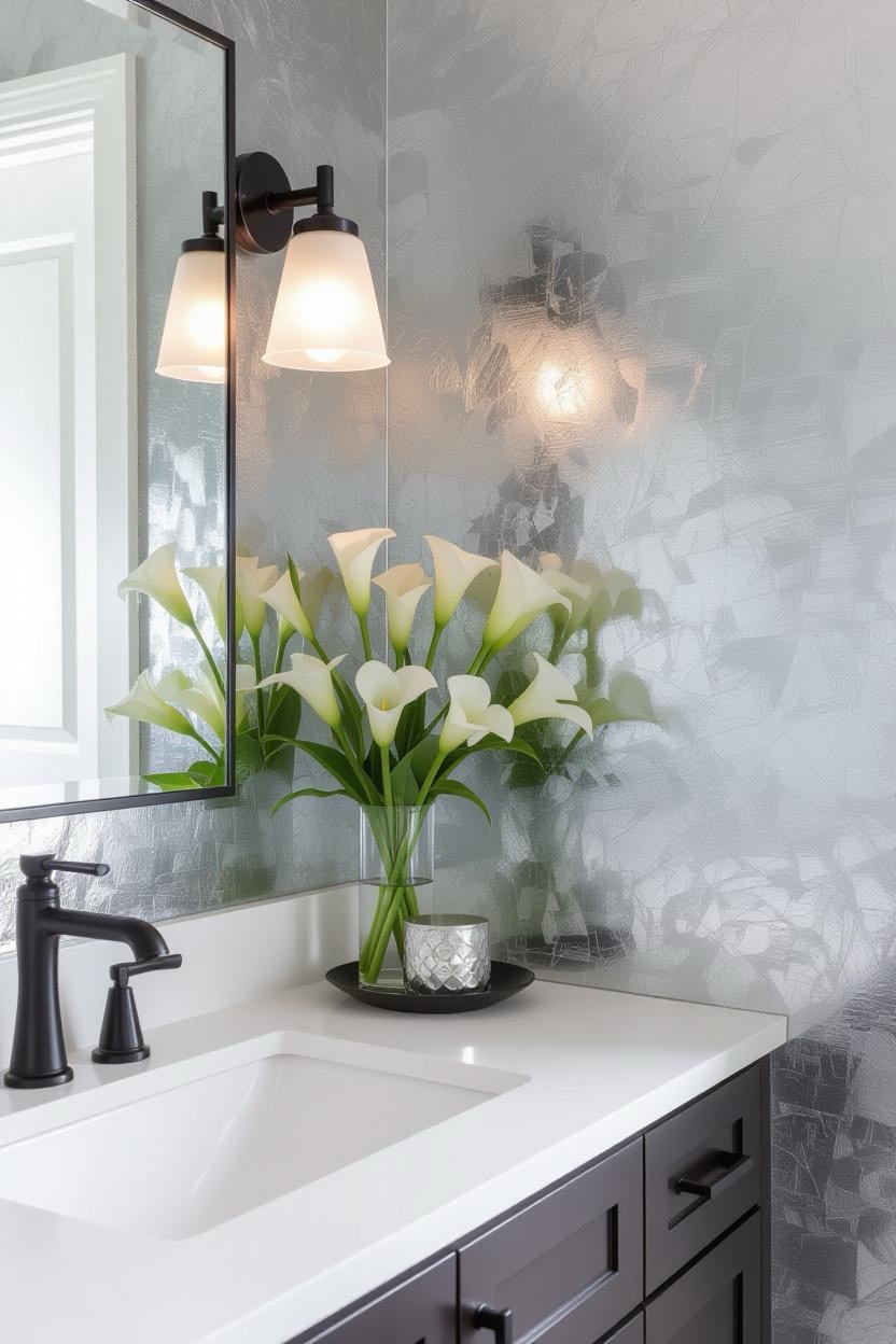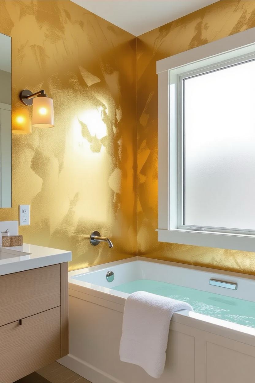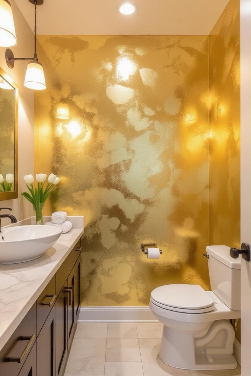 Go bold with a metallic-painted accent wall. Gold, silver, or bronze tones can reflect light beautifully and add a touch of luxury to your bathroom.