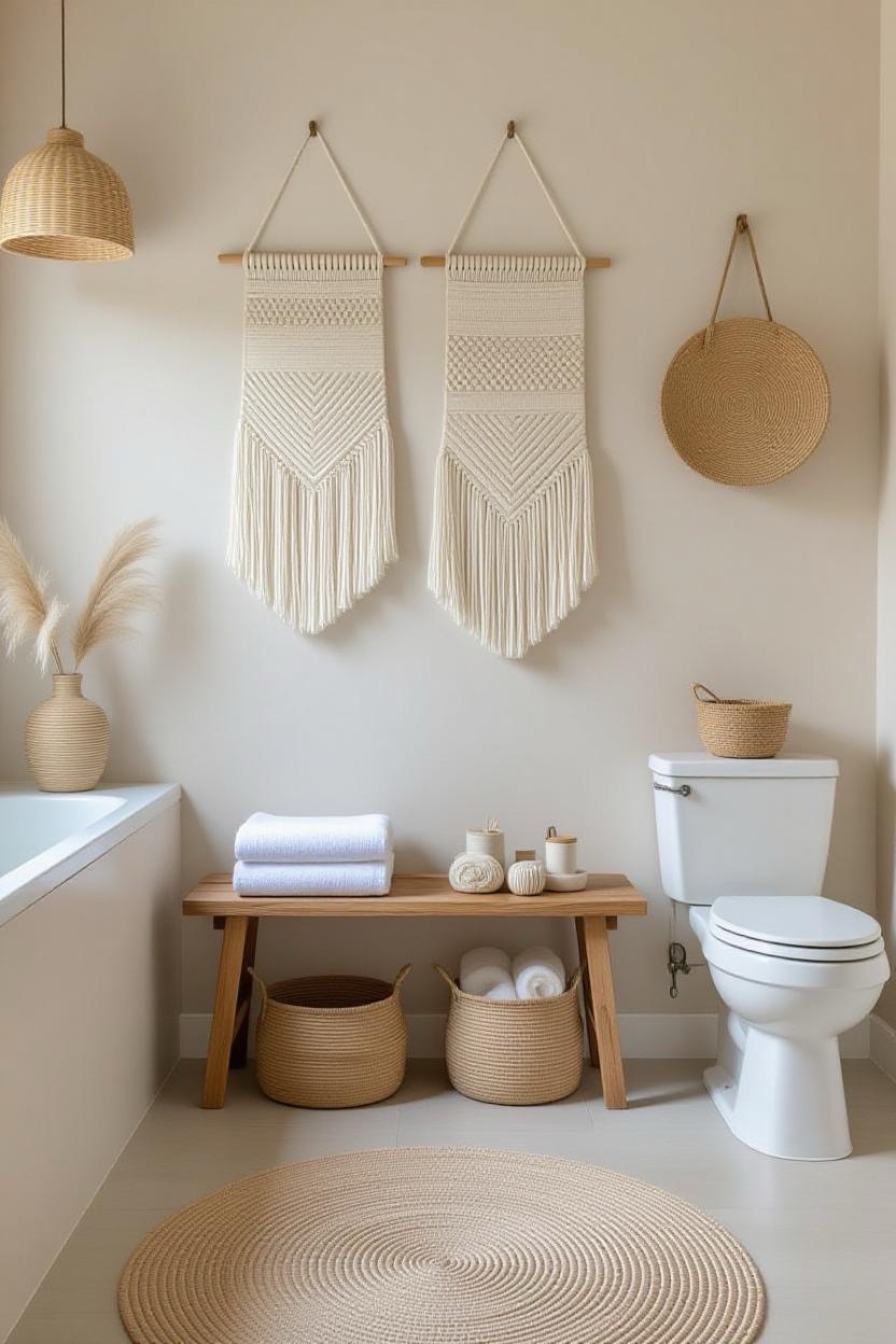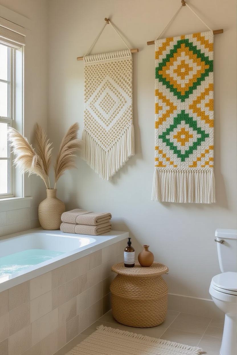 Soft woven wall hangings add warmth and texture, making the space feel inviting. Neutral tones blend seamlessly, while colorful options can make a bold statement.