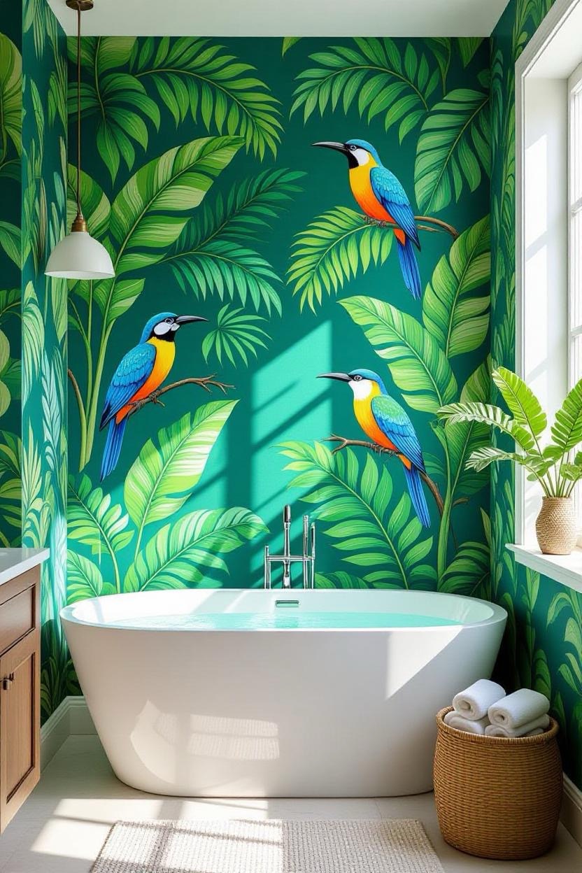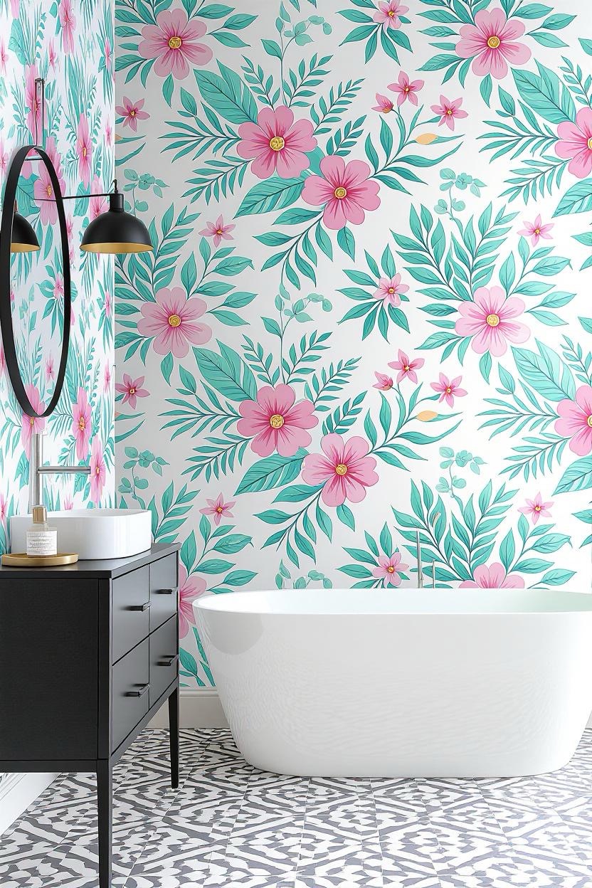 Choose a bold, moisture-resistant wallpaper to make your bathroom pop. Florals, tropical motifs, or abstract prints can completely transform the vibe.