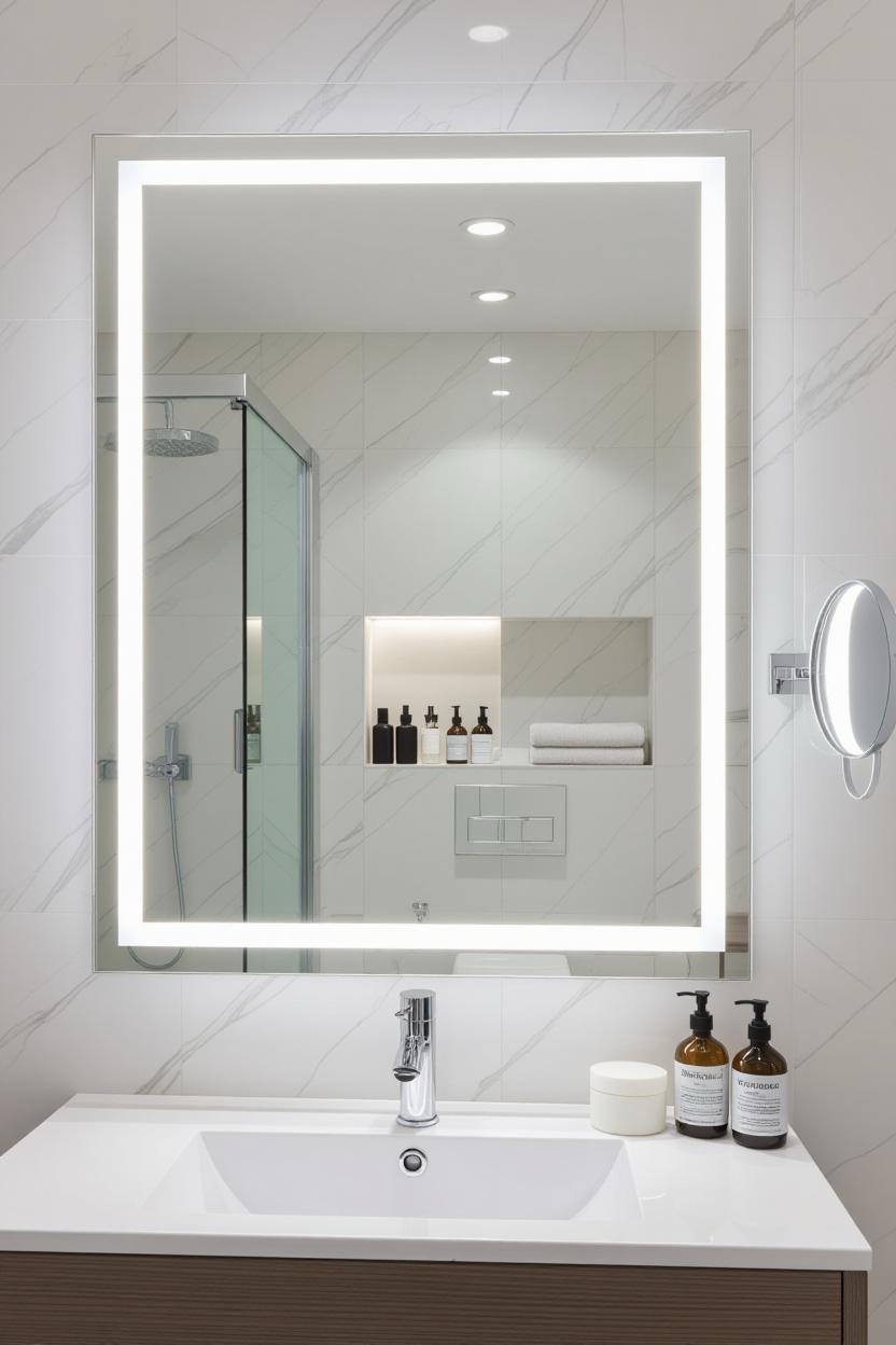 Mirrors with built-in LED lighting offer a modern, sleek look while improving visibility. They’re practical and visually stunning.