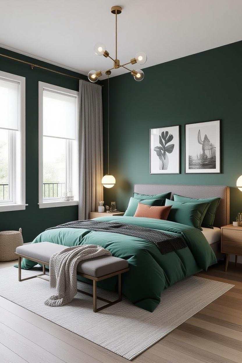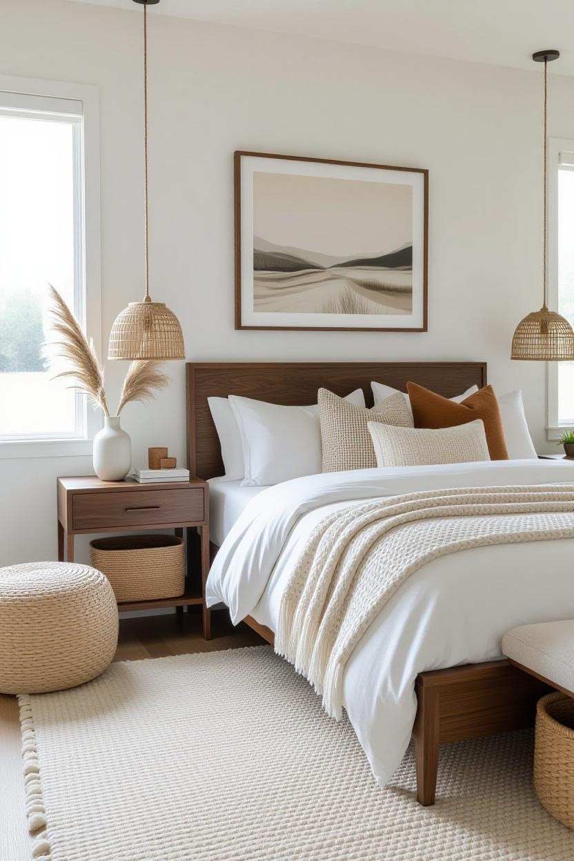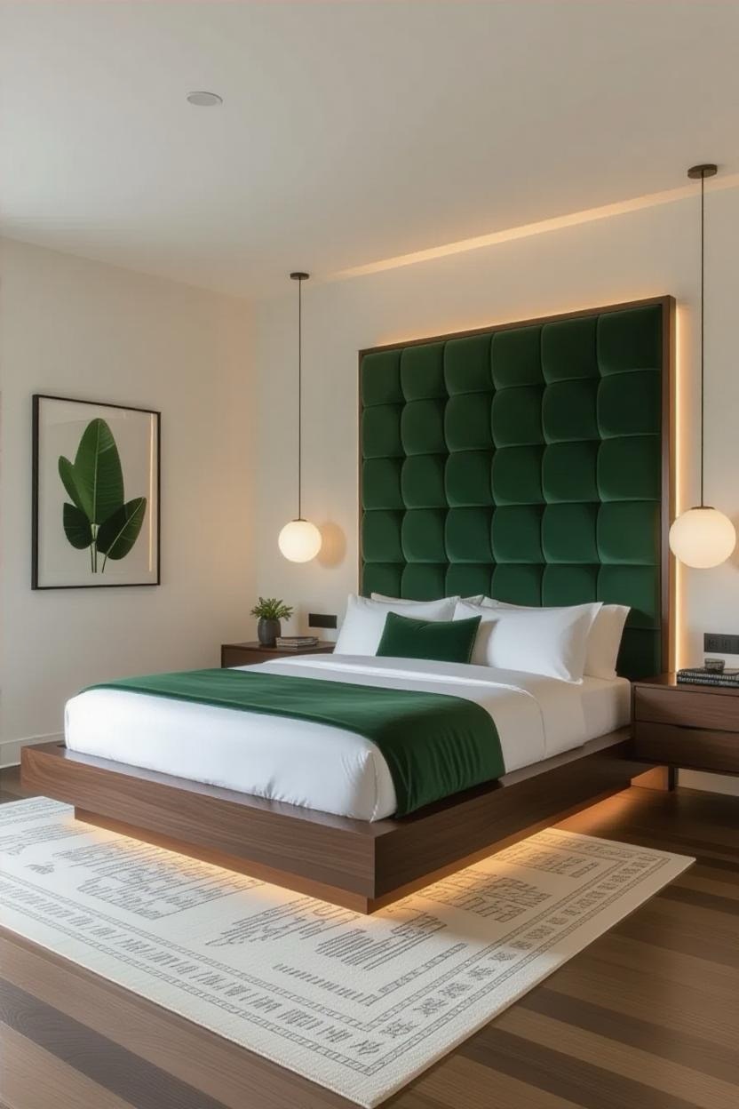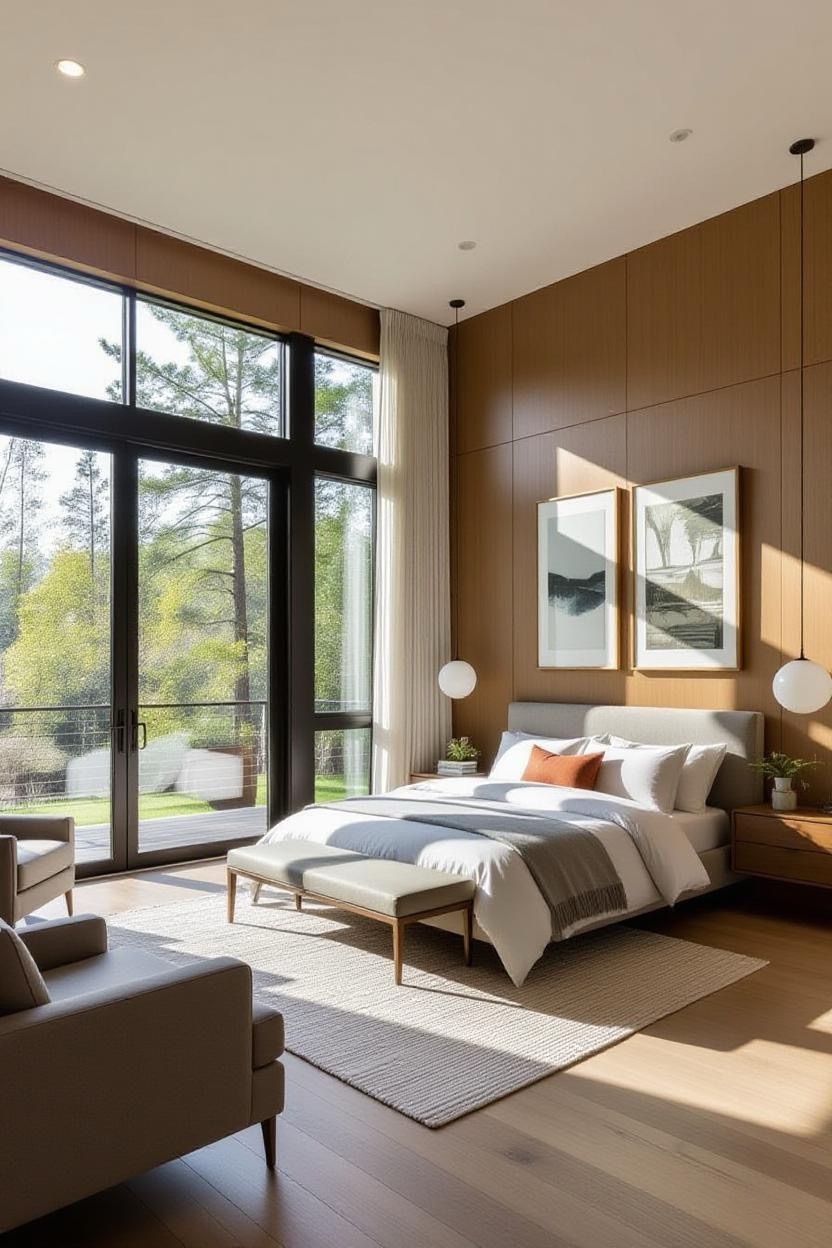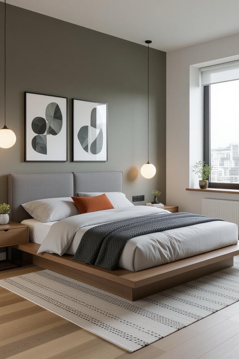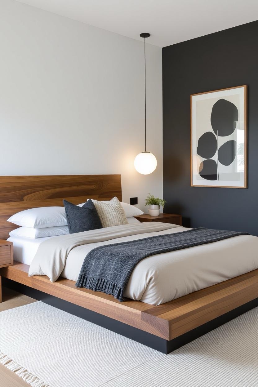 Blend organic elements like wood and stone with modern lines. A wooden headboard paired with geometric lighting fixtures strikes the perfect balance.