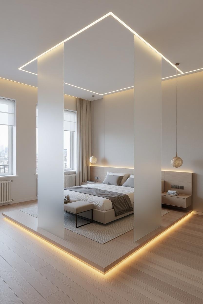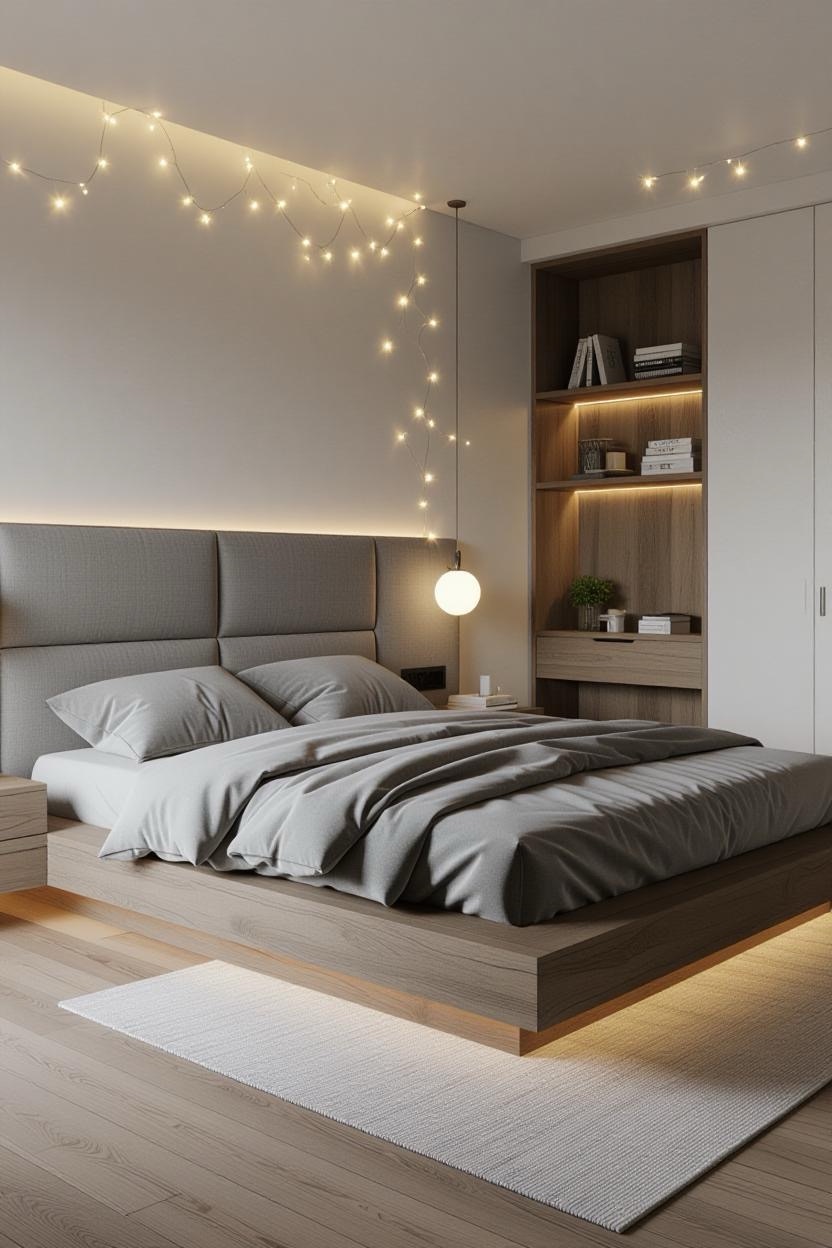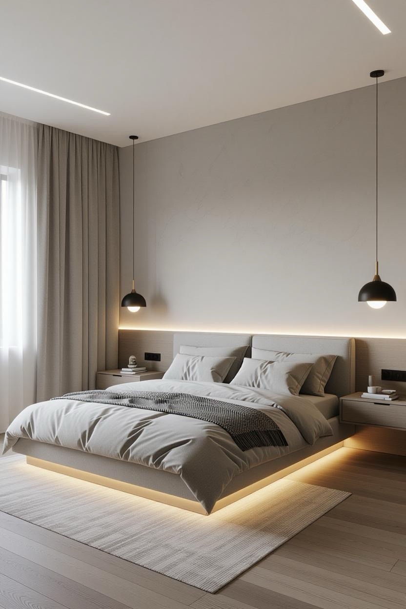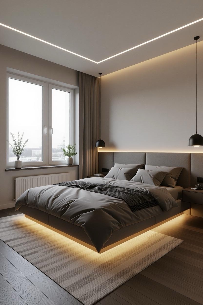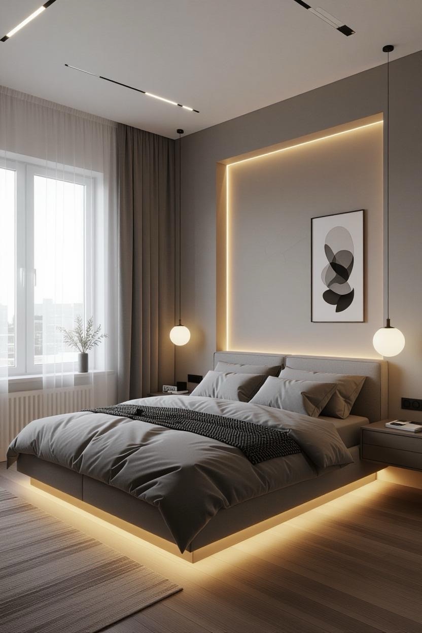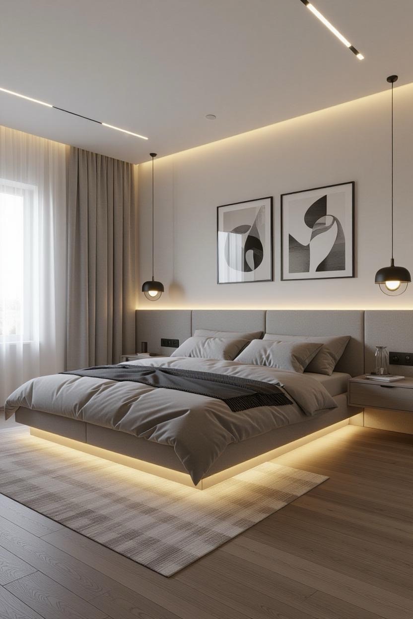 Install dimmable LED strips under beds or behind headboards. Modern lighting not only enhances mood but also highlights design elements in subtle, stylish ways.