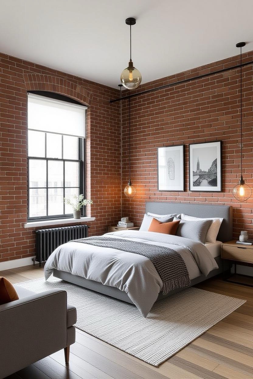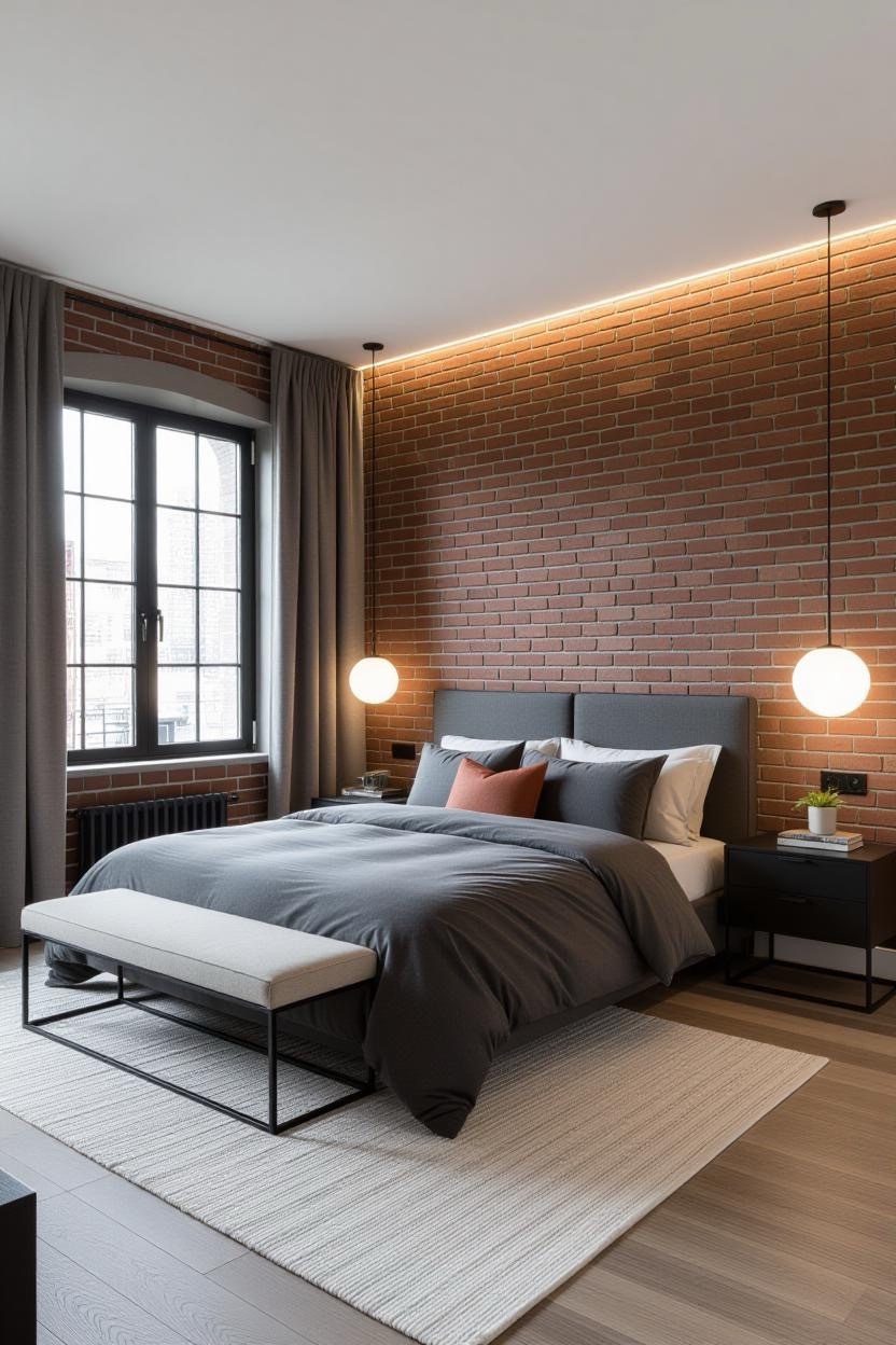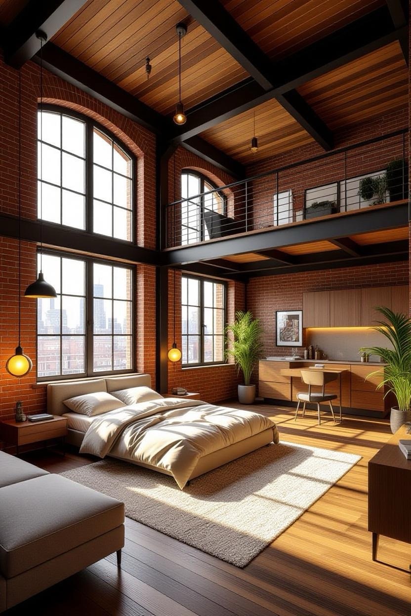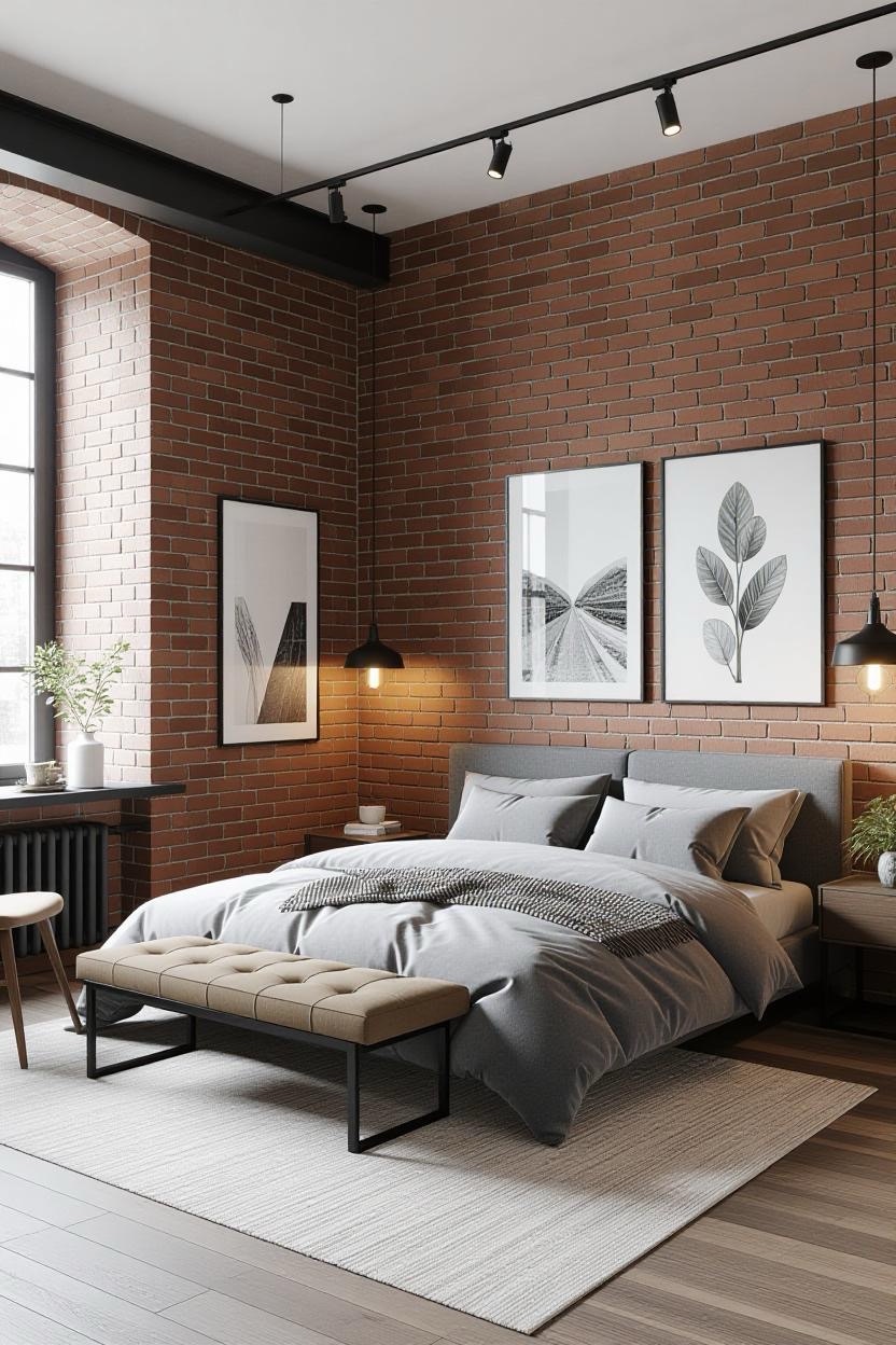 Combine exposed brick, metal frames, and muted tones for an edgy yet refined look. Industrial elements add character while still keeping the space modern.